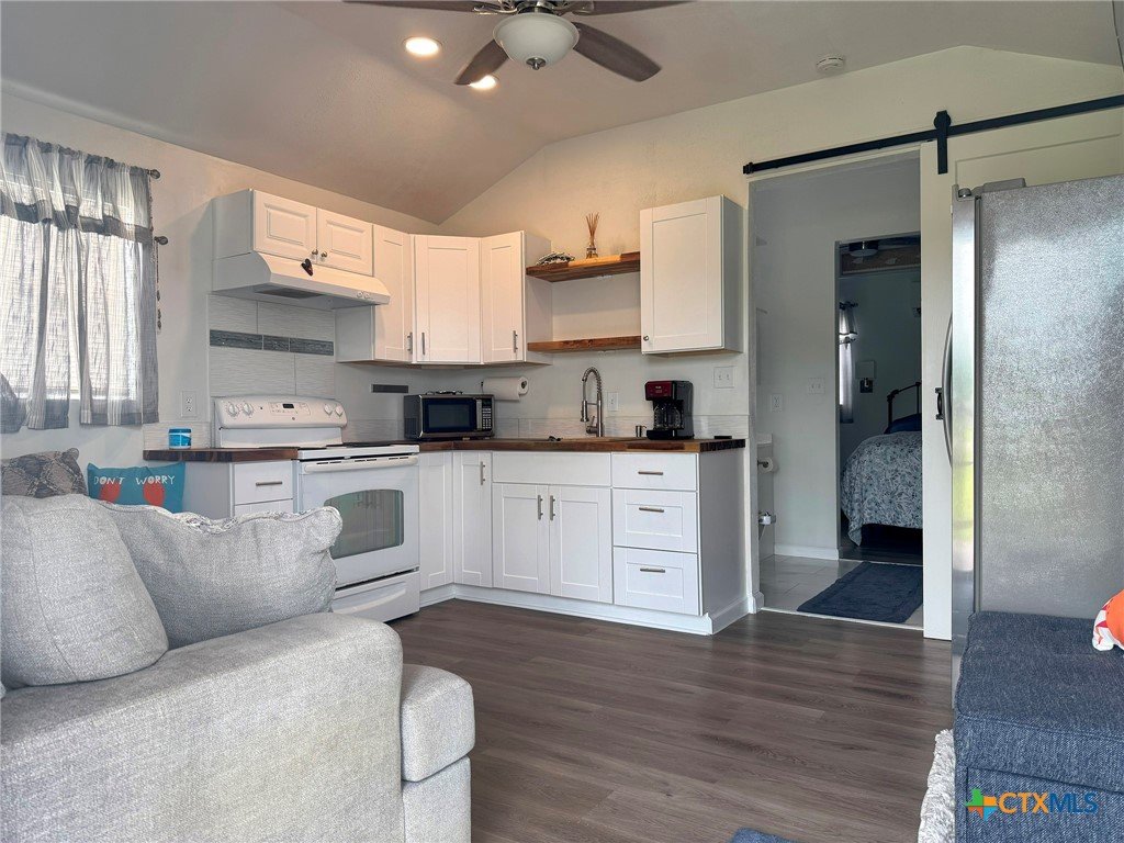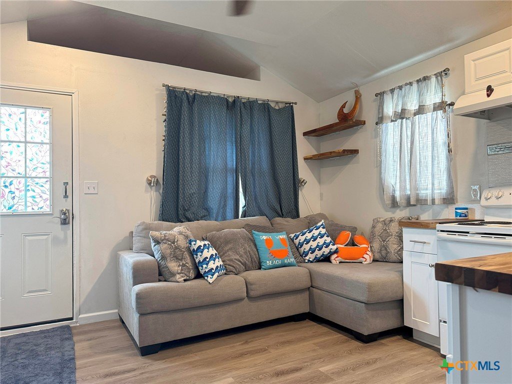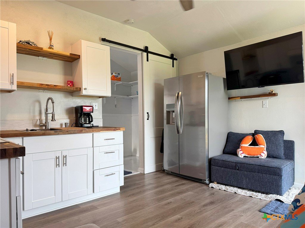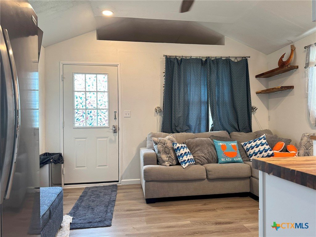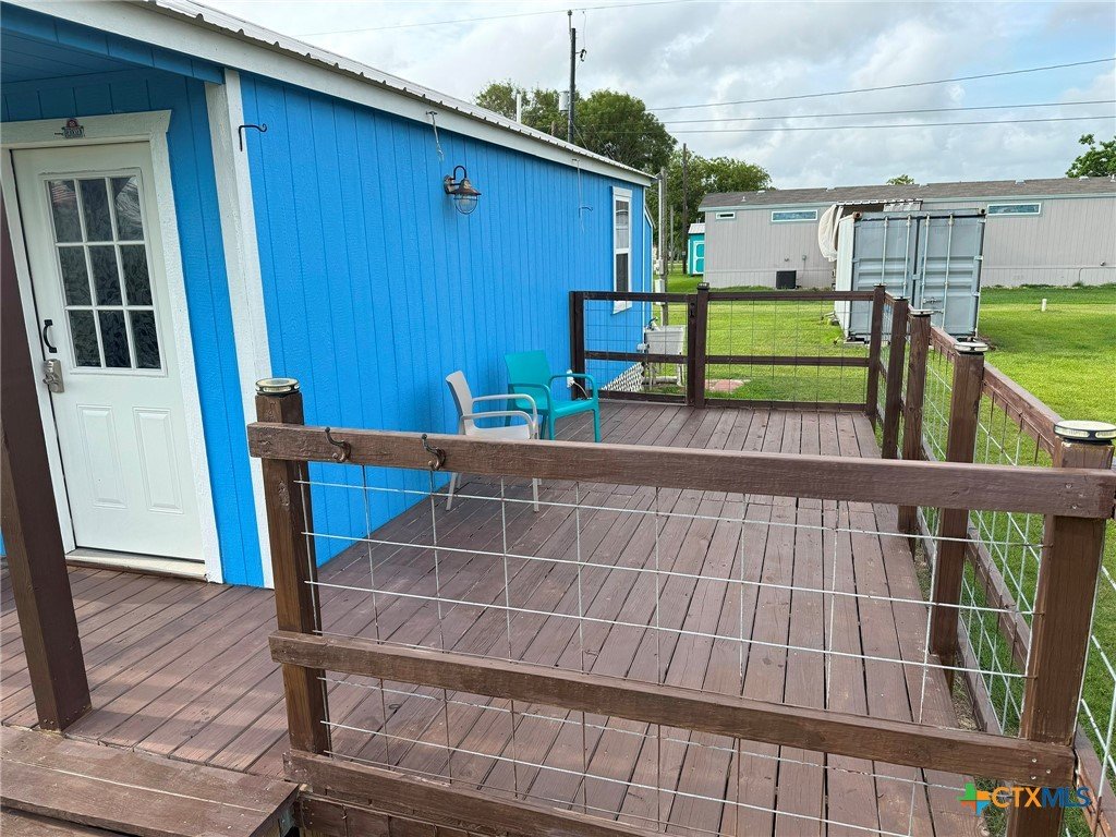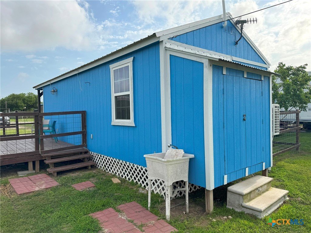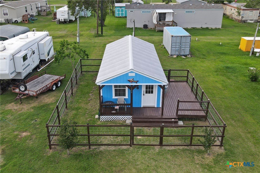 Looking for a clean, modern, weekend coastal affordable property to enjoy? This precious "tiny house" built 2021 is low maintenance yet has so much to offer. Interior features: Metal roof, 1BR, 1 BH with kitchen/living area, indoor laundry connections, higher ceilings, vinyl flooring and whole house water filtration system. Exterior features include; large driveway, 10x20 wood deck (some covered), fenced in yard, outdoor sink needs connection, and has a 160’SF, 20’ shipping container that is being used as a storage shed. To convey: refrigerator, range, microwave, Connex, bed and dresser, couch. Heated and cooled by mini split. Property has room for a boat or RV. Walk to the bay front to fish or just enjoy the views of beautiful sunsets, just 3 blocks from the San Antonio Bay front. Newly renovated Bay front has a new bulkhead, area for kayaking launching and covered entertaining. Fish conveniently the other areas of Port O Connor, Rockport, Indianola, etc. The area is also known for great duck hunting. Per Fema no flood zone.