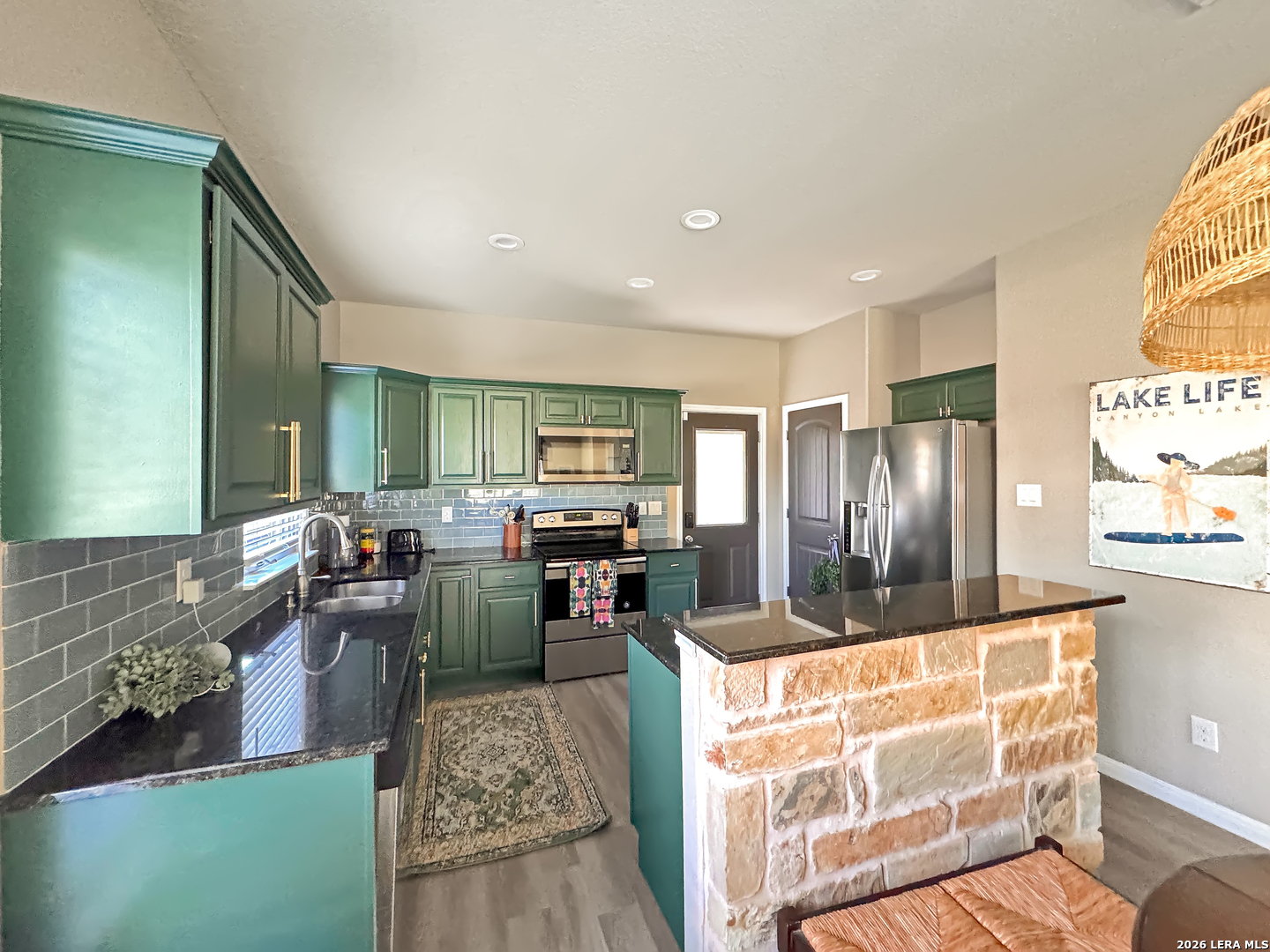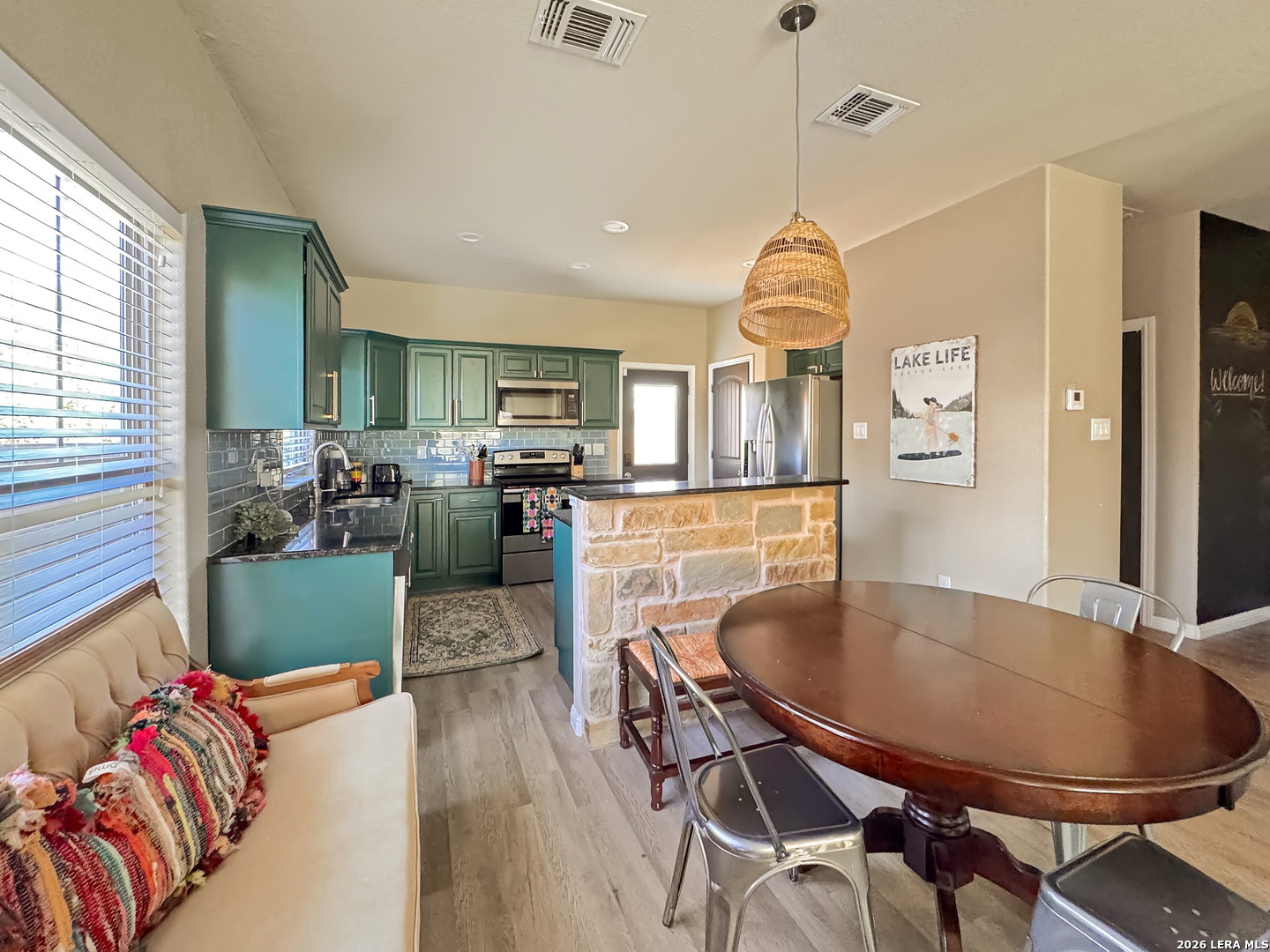 Beautiful 3-bedroom, 2.5-bath home with a 2-car garage situated on a spacious double lot, offering a charming peek of the lake. The open-concept living area provides plenty of room for relaxing and entertaining. Conveniently located just minutes from nearby boat ramps with easy access to San Antonio, New Braunfels, and Austin. Ideal as a full-time residence, vacation getaway, or investment opportunity.