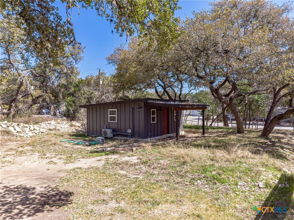 Ready for your weekend getaway or have your own Air B&B with this turnkey cottage including all appliances (washer/dryer/refrigerator) . Queen sized built in bunkbeds that sleeps 4. Outdoor shower surrounded by approx. 14 mature Live Oaks for the beauty, shade & privacy. Walls & ceiling are fully insulated w/foam for efficiency. Currently unrestricted lot with a 300 sq ft cottage that is intended for an Air B&B. Has electric, water, and internet ran underground to 3 additional pad sites for 3 more cottages, which would make for a total of 4 cottages in the lot. The septic system is sized to accommodate the current cottage plus either 2 more cottages or a 2 bedroom house. The currently unrestricted lot can be used for a small business park if so desired. Minutes to Guadalupe River tubing, Whitewater Amphitheater, Canyon Lake, Historic Gruene, New Braunfels & lots of great Restaurants. Property backs to Yogi Bear's Jellystone Park & Resort that offers a water park, mini golf, shuttle service to the river & much more!