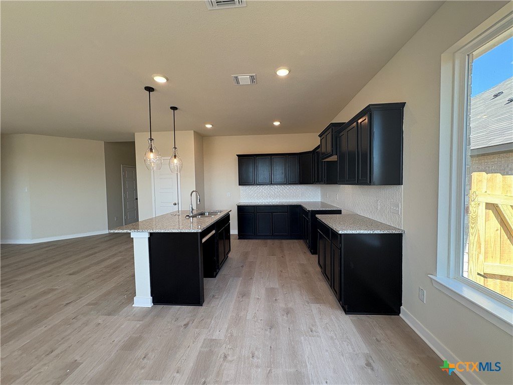 This four-bedroom, two bath home is a great option for those looking for more bedrooms without a second story! You won’t believe your eyes as you walk into the great space that is the open concept living room, dining room, and kitchen. With all of its wonderful features, to include walk-in closets, granite countertops, and corner kitchen with island, you are sure to love this home! Additional upgrades include: stainless steel appliances, tile backsplash, exterior coach lights, pendant lights in the kitchen, and an additional vanity sink in the primary bedroom.