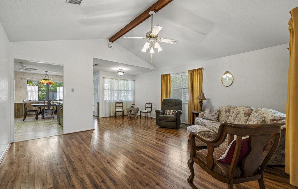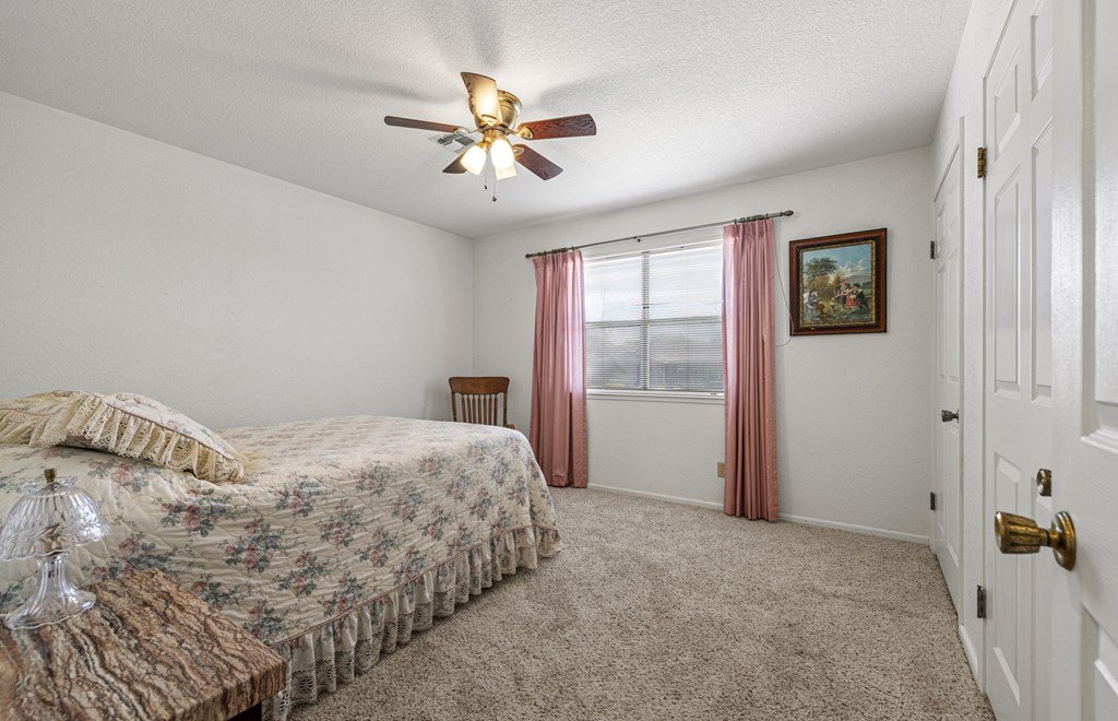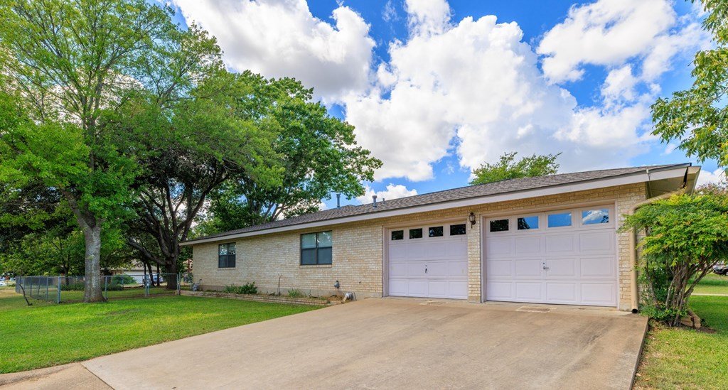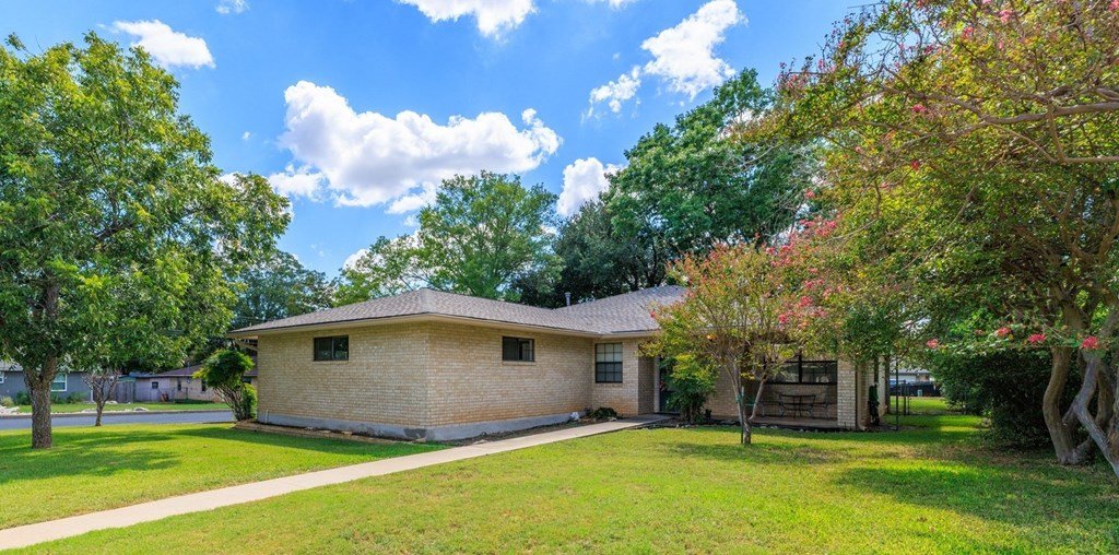 Welcome to this all-brick, ranch-style home located in the desirable Sandcastle neighborhood of Fredericksburg. Offering 3 bedrooms and 2 full baths, this property features a spacious 1,716 sq ft layout (per GCAD) and sits on a rare 0.30-acre two corner lot with street frontage on three sides—Broadmoor Dr., Adams St., and Grothe St. Inside, you'll be greeted by a vaulted ceiling in the living room, creating a bright and airy atmosphere the moment you walk in. The kitchen includes a cozy breakfast area, and there's also a separate dining area for more formal gatherings. The master suite is generously sized and includes two walk-in closets, along with an en-suite bathroom featuring both a tub and separate shower. The home offers ample storage with abundant closets and cabinets throughout. Step outside to enjoy the large, fenced backyard—perfect for pets, gardening, or entertaining. With only a few lots in town offering this kind of triple street frontage, this property provides both privacy and accessibility. Additional features include a two-car attached garage and a convenient location near local elementary schools and care facilities. Built in 1987 (per GCAD), the home has had a pre-listing inspection completed by the seller, giving peace of mind to potential buyers. Don't miss this rare opportunity to own a home with space, character, and a one-of-a-kind lot in one of Fredericksburg's established neighborhoods.