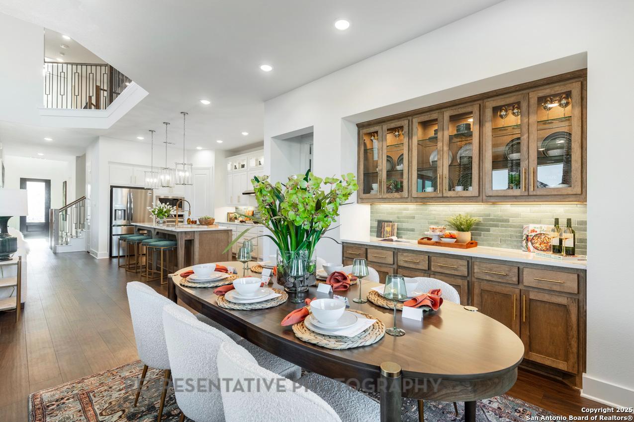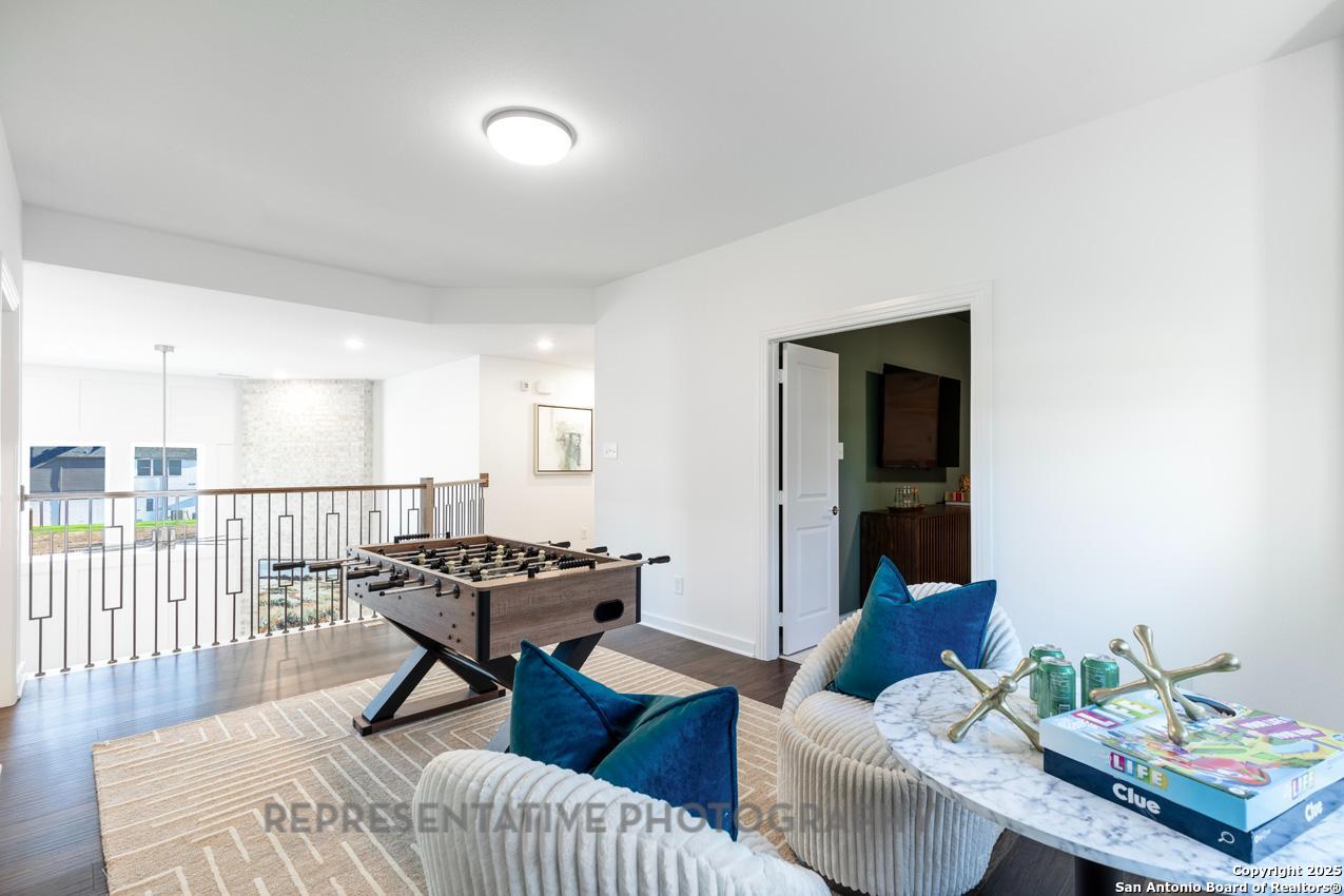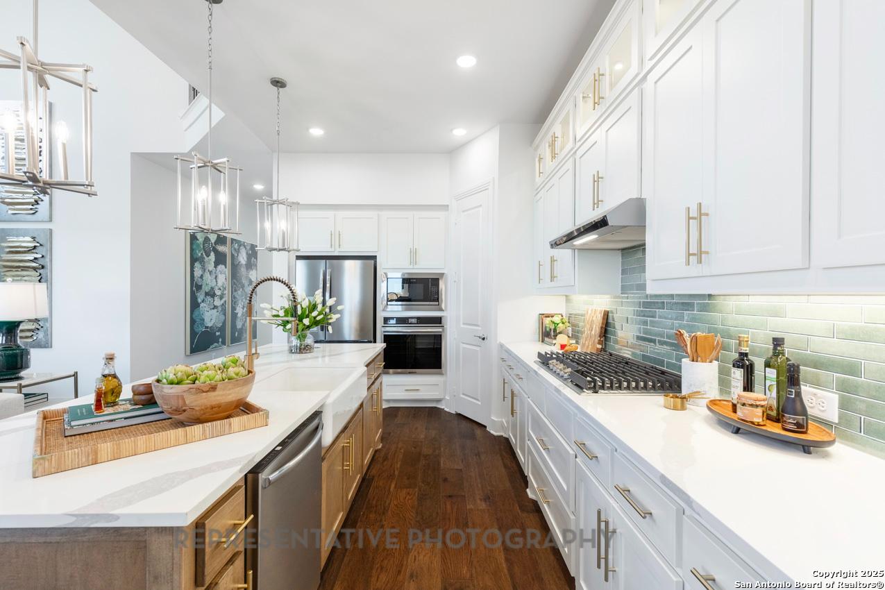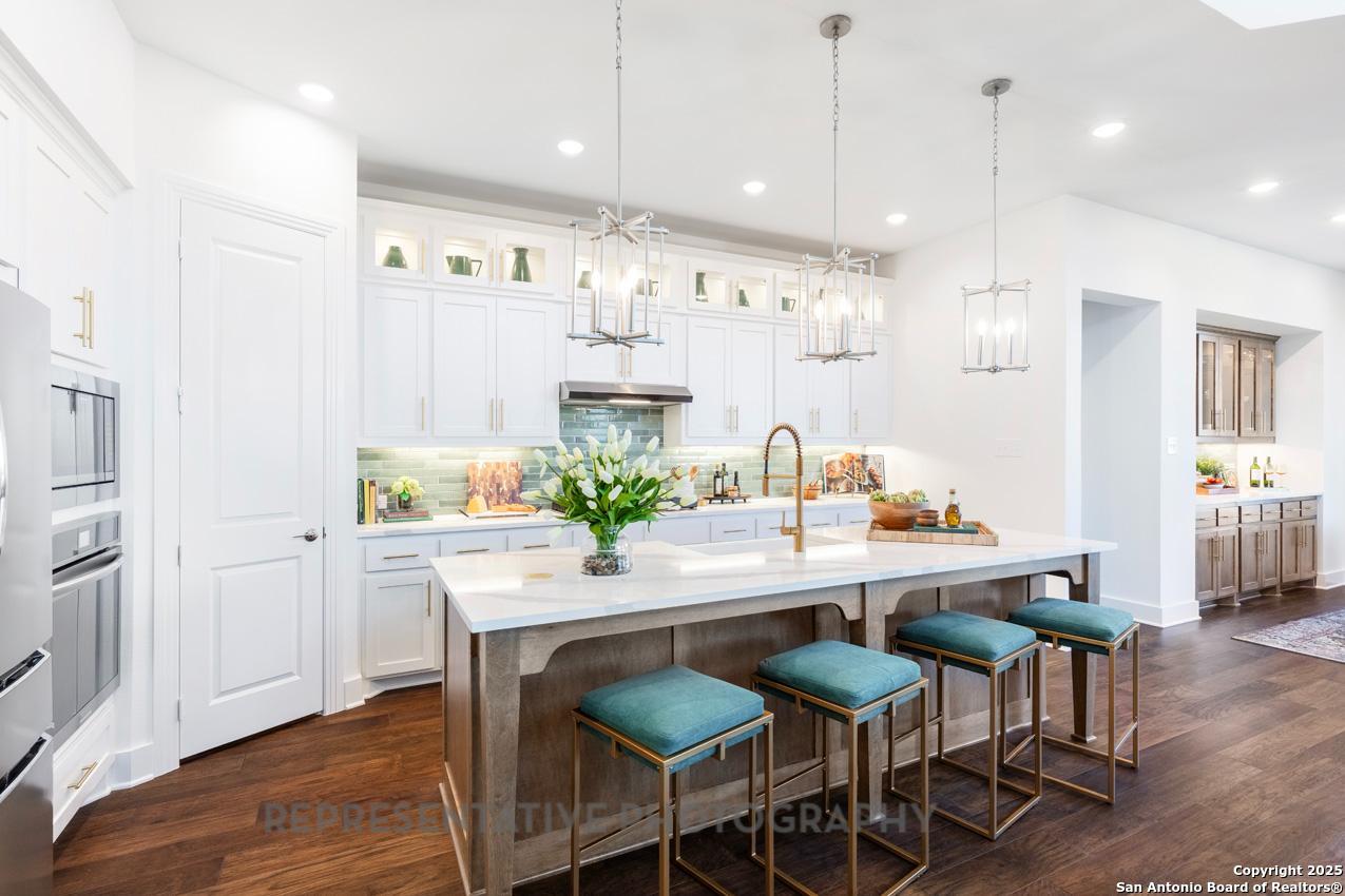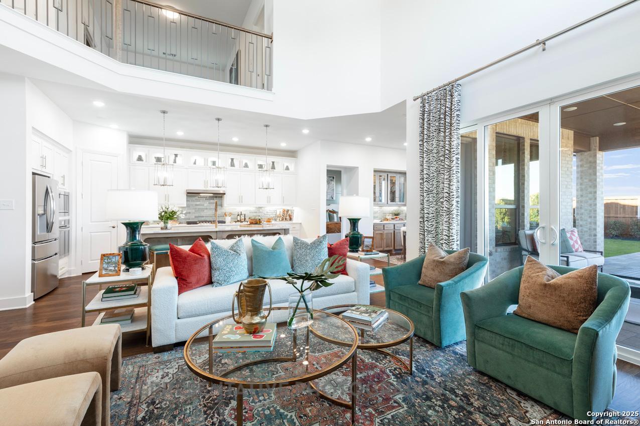 This painted white brick two story home sits on a larger corner lot with views from the rear patio of the Hill Country. The home features wood floors, free standing tub in primary bath, double ovens, white cabinets, bronze window frames and a Sliding glass door to rear patio, white painted brick fireplace, built in hutch in breakfast/dining area and home office. Home under construction with estimated December completion.