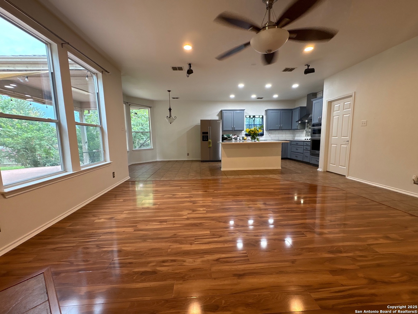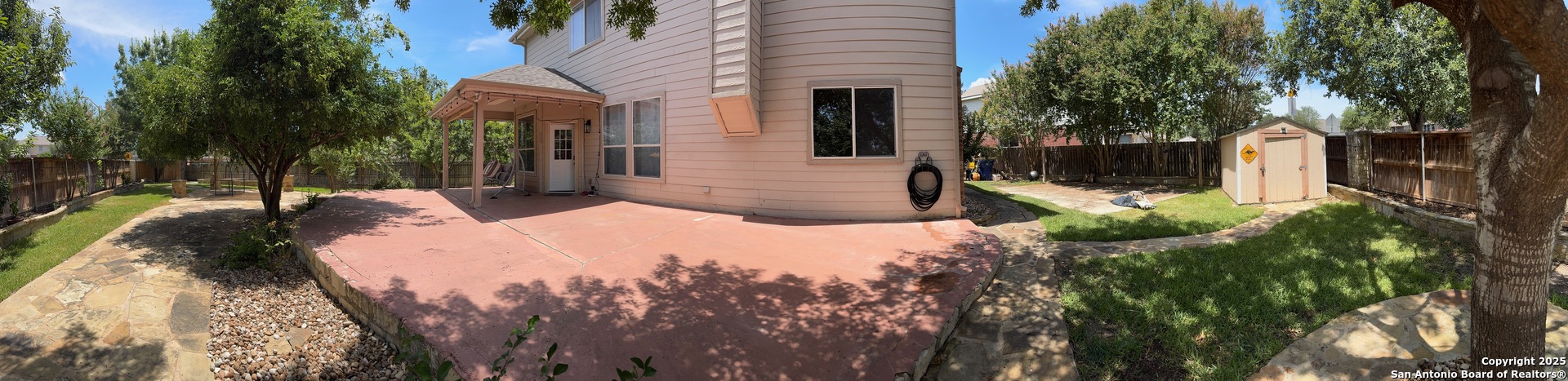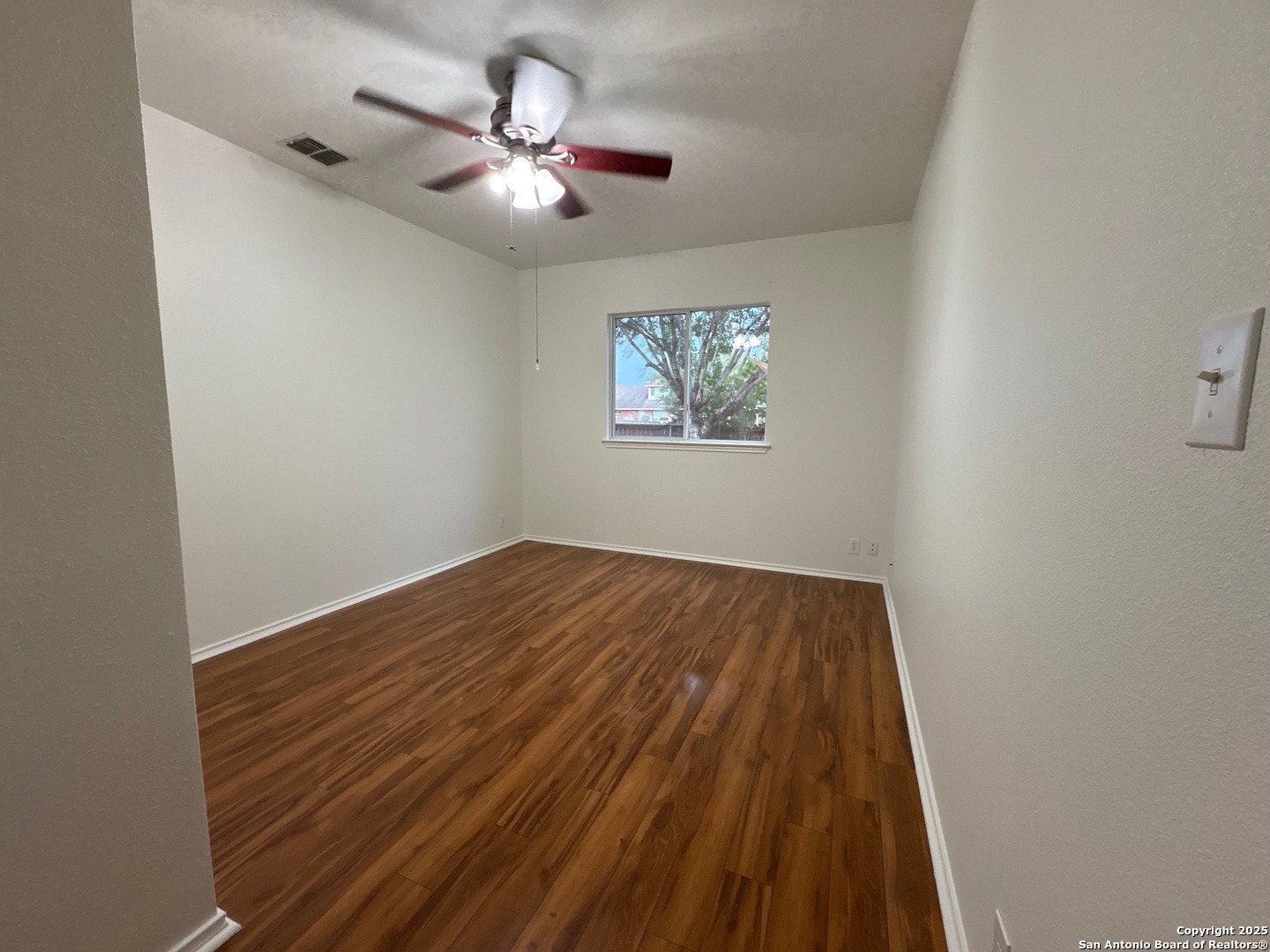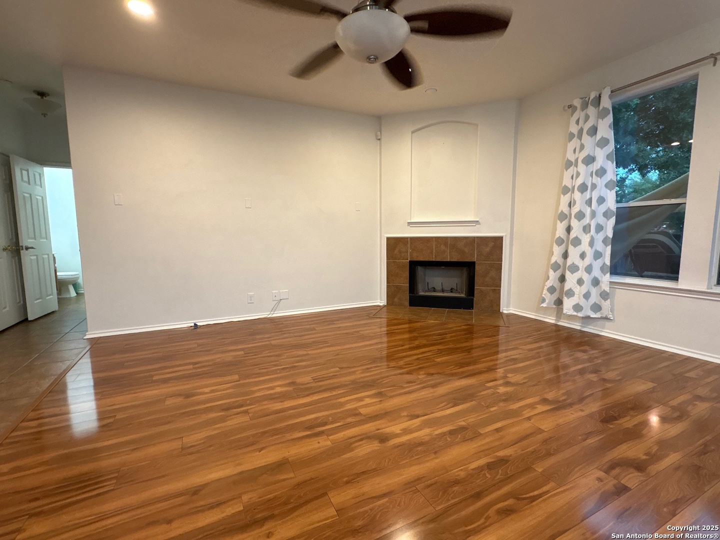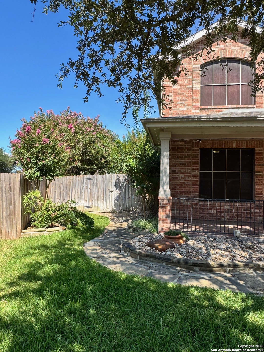 MUST SEE! First-time rental - stunning and spacious 4-bedroom, 3 full bath, two-story home with a fireplace, located in the highly desirable Falcon Ridge subdivision. The main level features an open floor plan with NO carpet, laminate wood-like flooring downstairs, hardwood upstairs, and tile in the kitchen and wet areas. Fresh interior paint throughout adds a bright and modern feel. A downstairs office with an adjacent full bath makes the perfect guest suite or home workspace. All bedrooms include ceiling fans, while the spacious primary suite offers a garden tub and separate shower. The updated kitchen boasts an open-concept design with a center island, quartz countertops, tile backsplash, and stainless steel appliances - ideal for cooking and entertaining. Included: refrigerator, washer & dryer, water softener, and reverse osmosis system. Solar panels provide substantial energy savings each month. Outside, enjoy a large backyard with fruit trees in both the back and side yards, plus a patio perfect for BBQs and gatherings. Convenient location: Quick access to IH-35 and Loop 1604, just 15 minutes to The Forum and 20 minutes to JBSA-Randolph AFB. Pet policy: One dog under 25 lbs allowed with prior photo and owner approval. This home is immaculate, move-in ready, and easy to show - schedule your private tour today!
