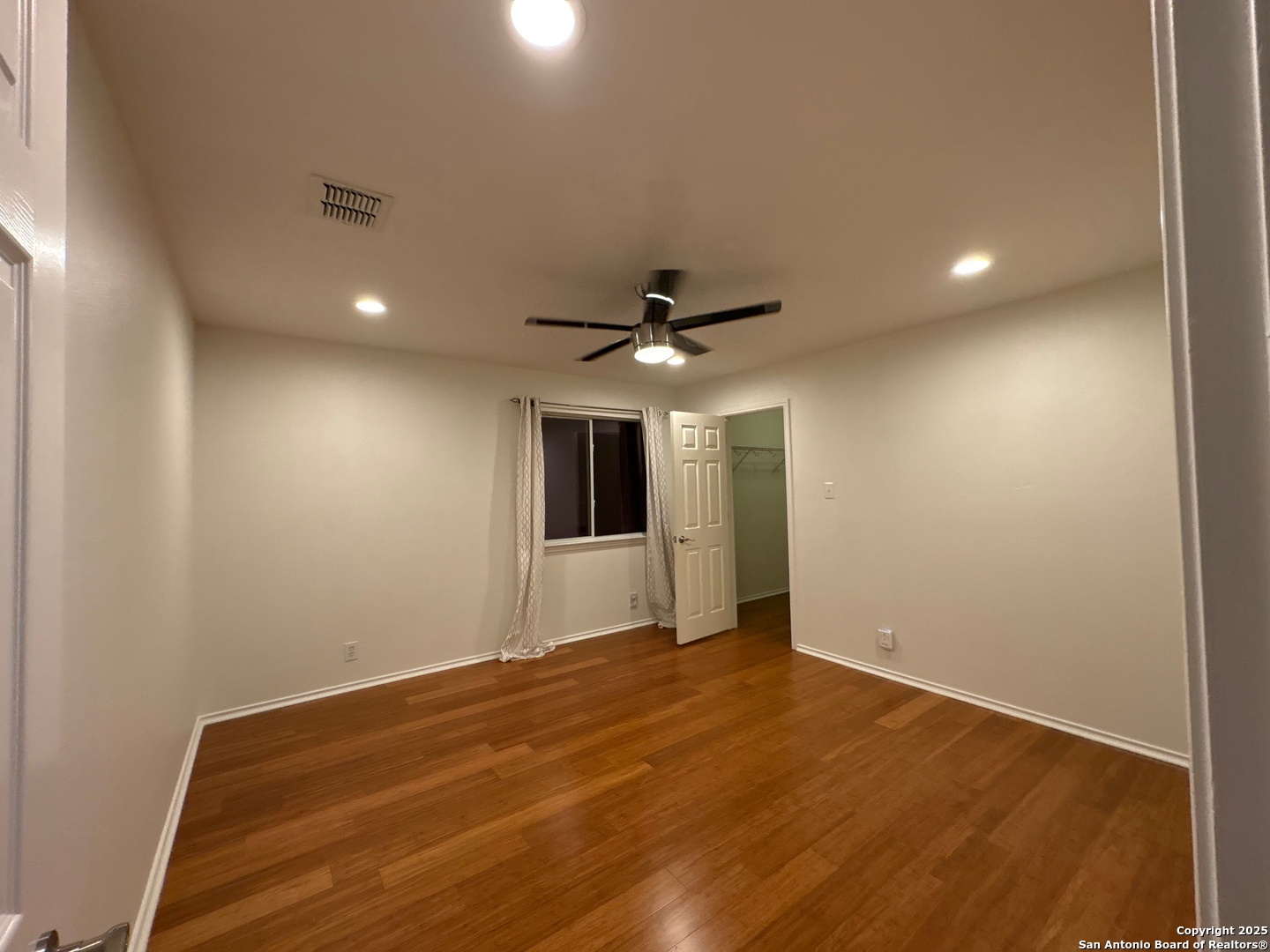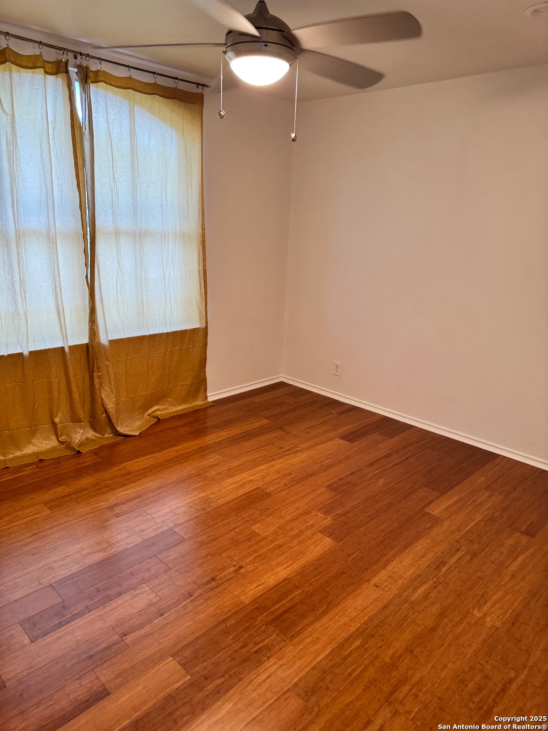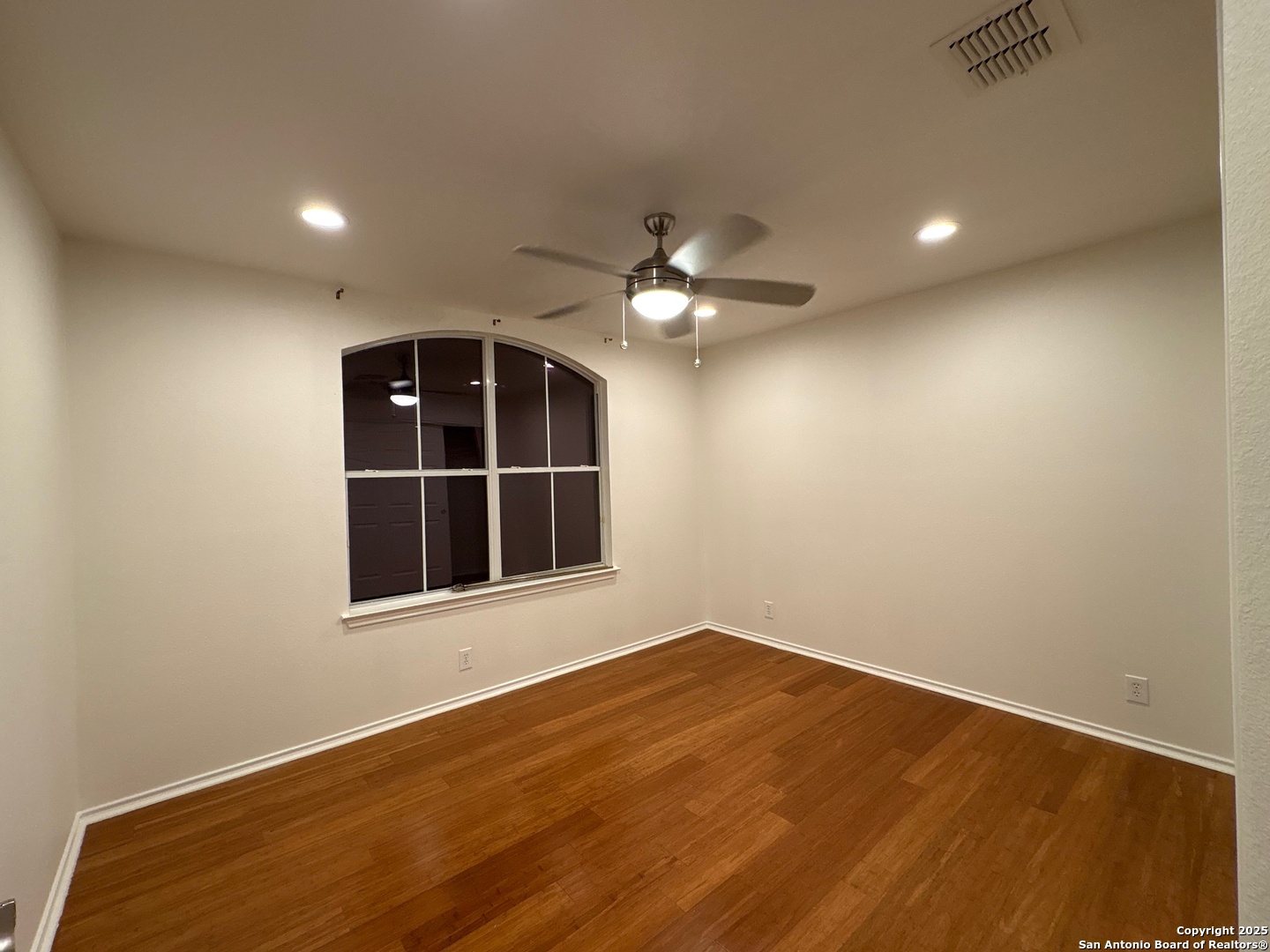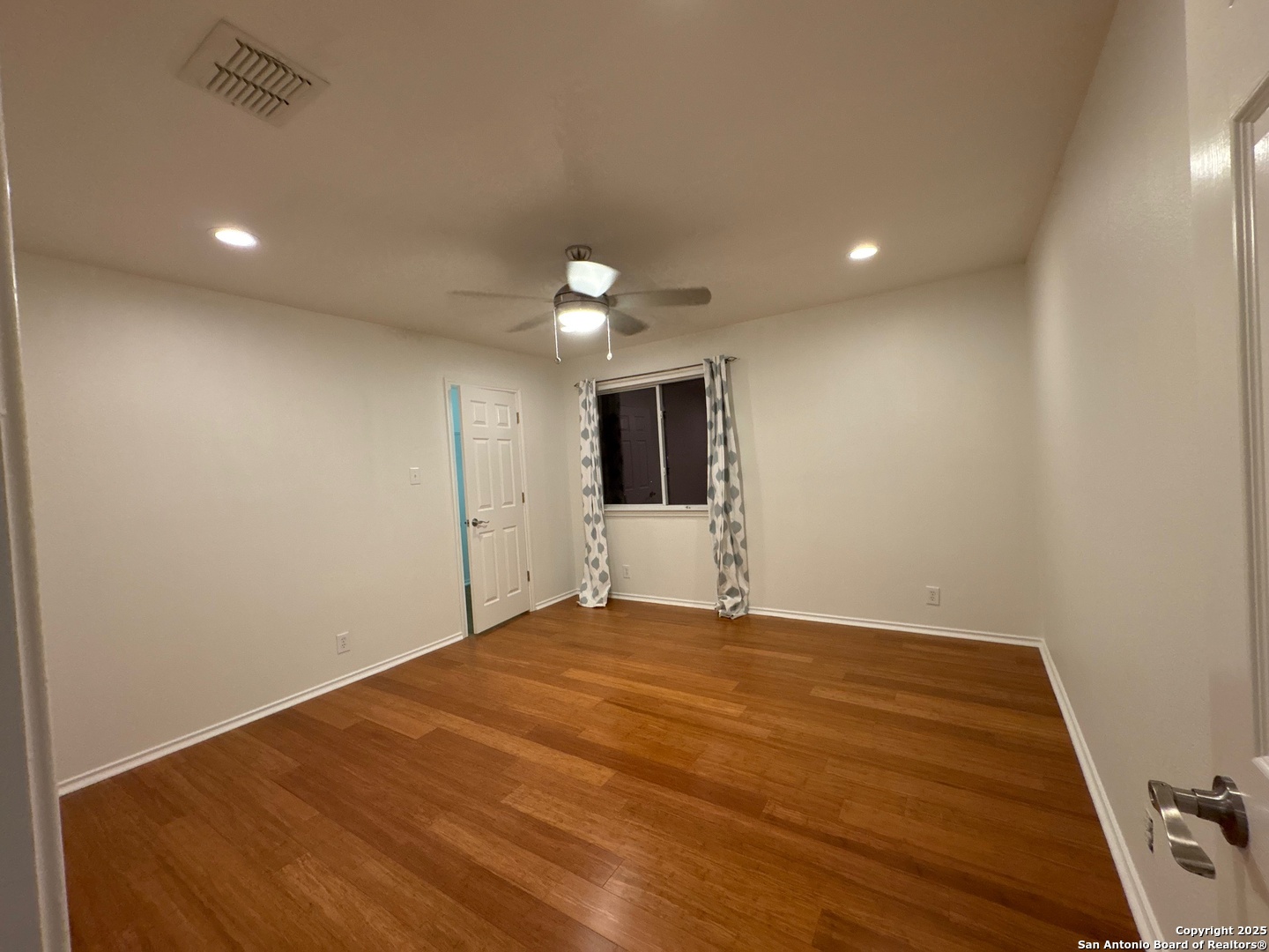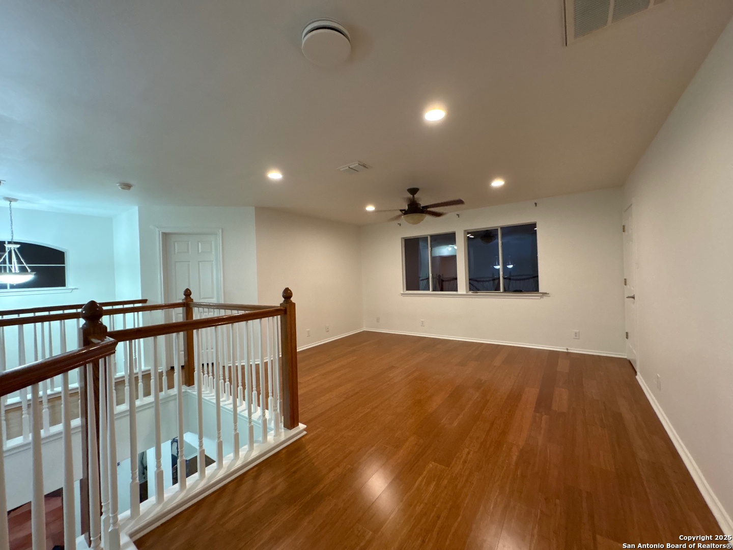 MUST SEE! First-time rental - stunning and spacious 4-bedroom, 3 full bath, two-story home with a fireplace, located in the highly desirable Falcon Ridge subdivision. The main level features an open floor plan with NO carpet, laminate wood-like flooring downstairs, hardwood upstairs, and tile in the kitchen and wet areas. Fresh interior paint throughout adds a bright and modern feel. A downstairs office with an adjacent full bath makes the perfect guest suite or home workspace. All bedrooms include ceiling fans, while the spacious primary suite offers a garden tub and separate shower. The updated kitchen boasts an open-concept design with a center island, quartz countertops, tile backsplash, and stainless steel appliances - ideal for cooking and entertaining. Included: refrigerator, washer & dryer, water softener, and reverse osmosis system. Solar panels provide substantial energy savings each month. Outside, enjoy a large backyard with fruit trees in both the back and side yards, plus a patio perfect for BBQs and gatherings. Convenient location: Quick access to IH-35 and Loop 1604, just 15 minutes to The Forum and 20 minutes to JBSA-Randolph AFB. Pet policy: One dog under 25 lbs allowed with prior photo and owner approval. This home is immaculate, move-in ready, and easy to show - schedule your private tour today!