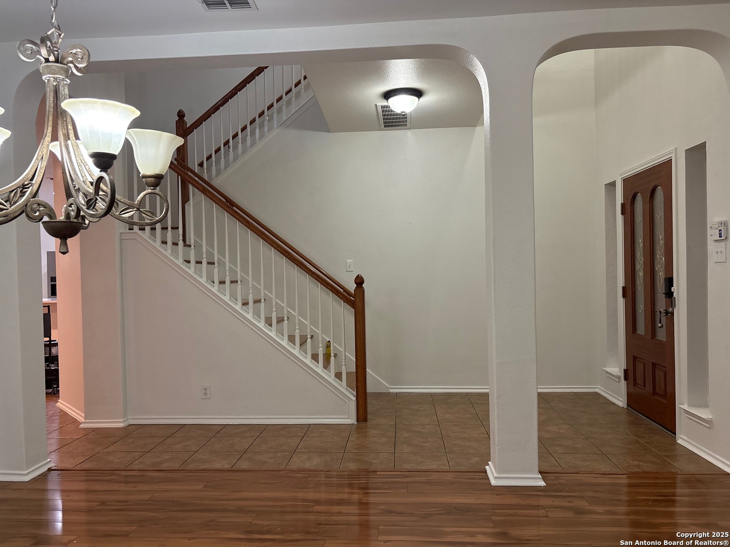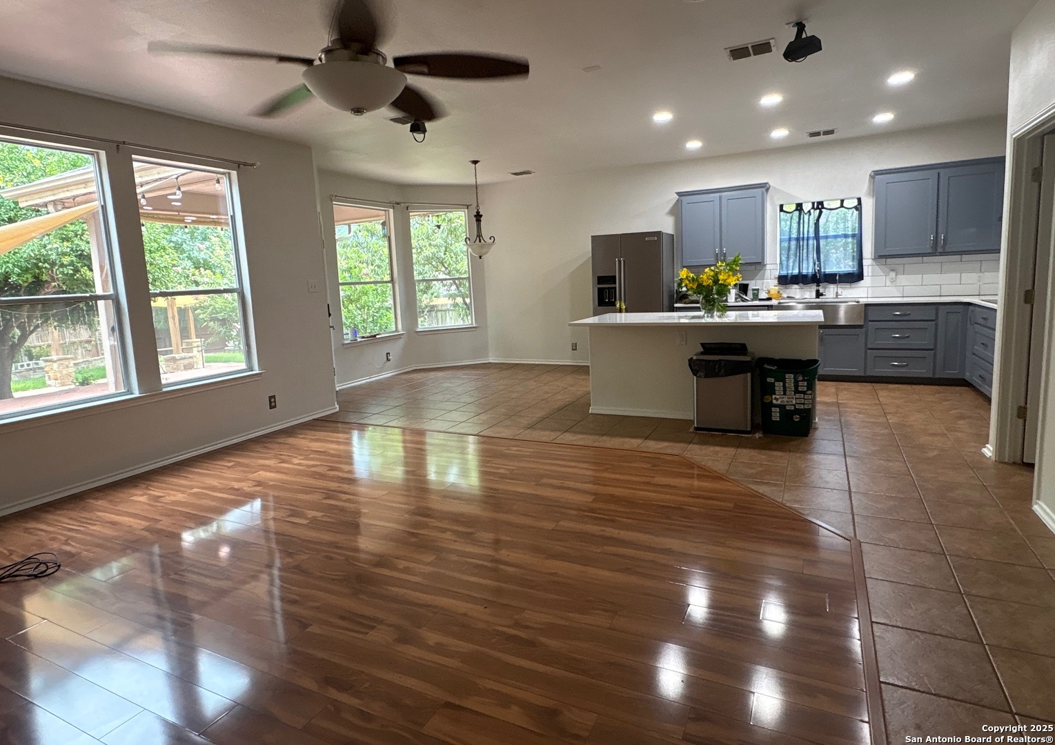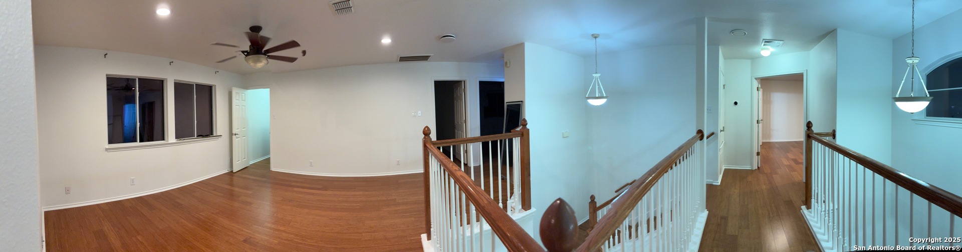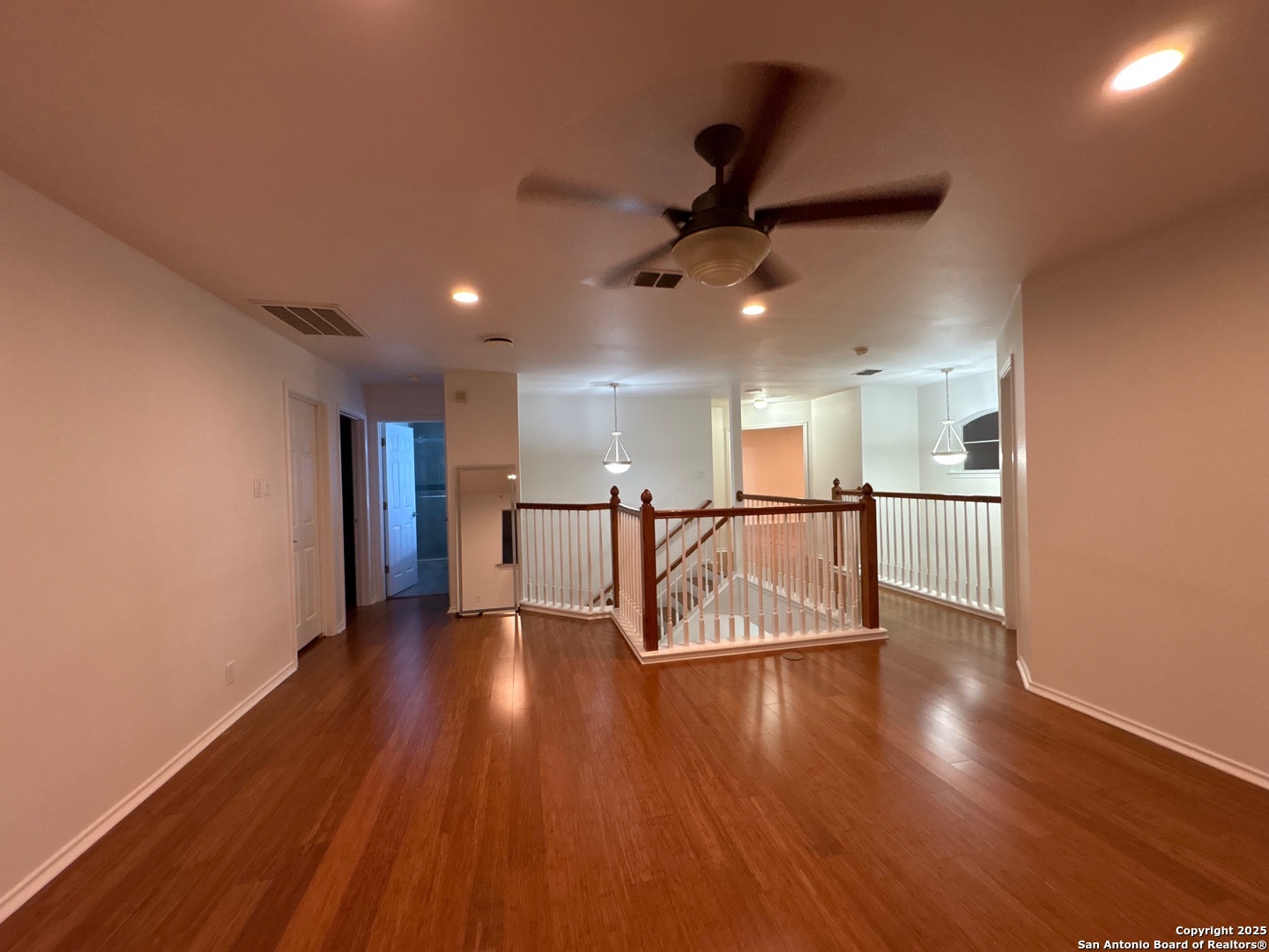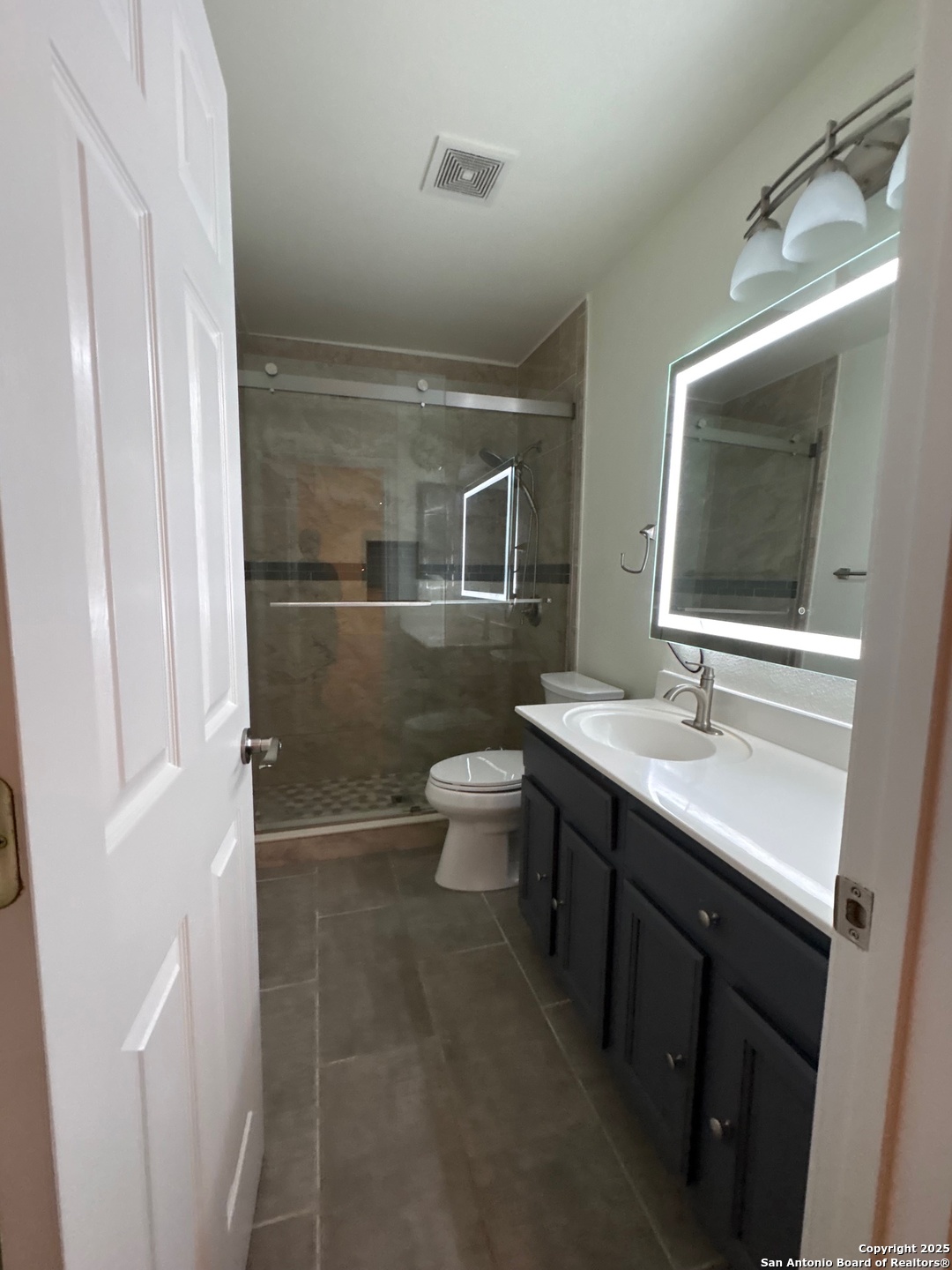 MUST SEE! First-time rental - stunning and spacious 4-bedroom, 3 full bath, two-story home with a fireplace, located in the highly desirable Falcon Ridge subdivision. The main level features an open floor plan with NO carpet, laminate wood-like flooring downstairs, hardwood upstairs, and tile in the kitchen and wet areas. Fresh interior paint throughout adds a bright and modern feel. A downstairs office with an adjacent full bath makes the perfect guest suite or home workspace. All bedrooms include ceiling fans, while the spacious primary suite offers a garden tub and separate shower. The updated kitchen boasts an open-concept design with a center island, quartz countertops, tile backsplash, and stainless steel appliances - ideal for cooking and entertaining. Included: refrigerator, washer & dryer, water softener, and reverse osmosis system. Solar panels provide substantial energy savings each month. Outside, enjoy a large backyard with fruit trees in both the back and side yards, plus a patio perfect for BBQs and gatherings. Convenient location: Quick access to IH-35 and Loop 1604, just 15 minutes to The Forum and 20 minutes to JBSA-Randolph AFB. Pet policy: One dog under 25 lbs allowed with prior photo and owner approval. This home is immaculate, move-in ready, and easy to show - schedule your private tour today!
