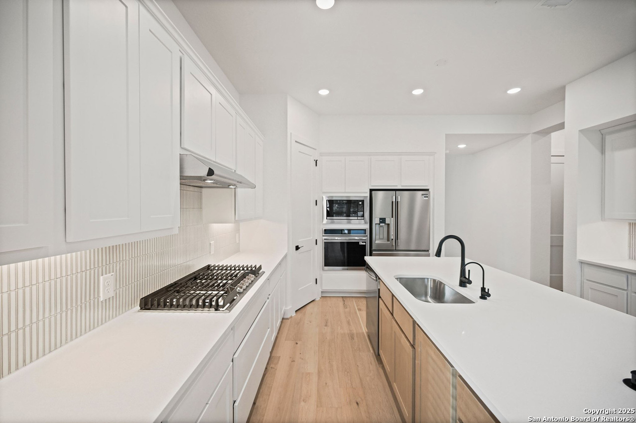 Last Opportunities at Weston Oaks! Great Incentives Available! True 3 car garage with a driveway 3 cars wide and an oversized flat backyard and side yard! Built with the quality and craftmanship you expect only in a Highland Home! Stunning 2 story built for entertainment. Love your outdoor living space? You definitely are going to enjoy this one. Perhaps one of the best features in the home is the amount of NATURAL LIGHT it attracts through the 2 story ceiling windows. But that's not all, wait until you see these CURVED STAIRS. A second bedroom is already downstairs so anyone visiting can stay on the 1st floor. Entertainment room upstairs flows very well with the play area. FULL Sprinkler system - 8FT DOORS down - TANKLESS water heater - just to mention few upgrades you will see throughout. A rare gem for sure!