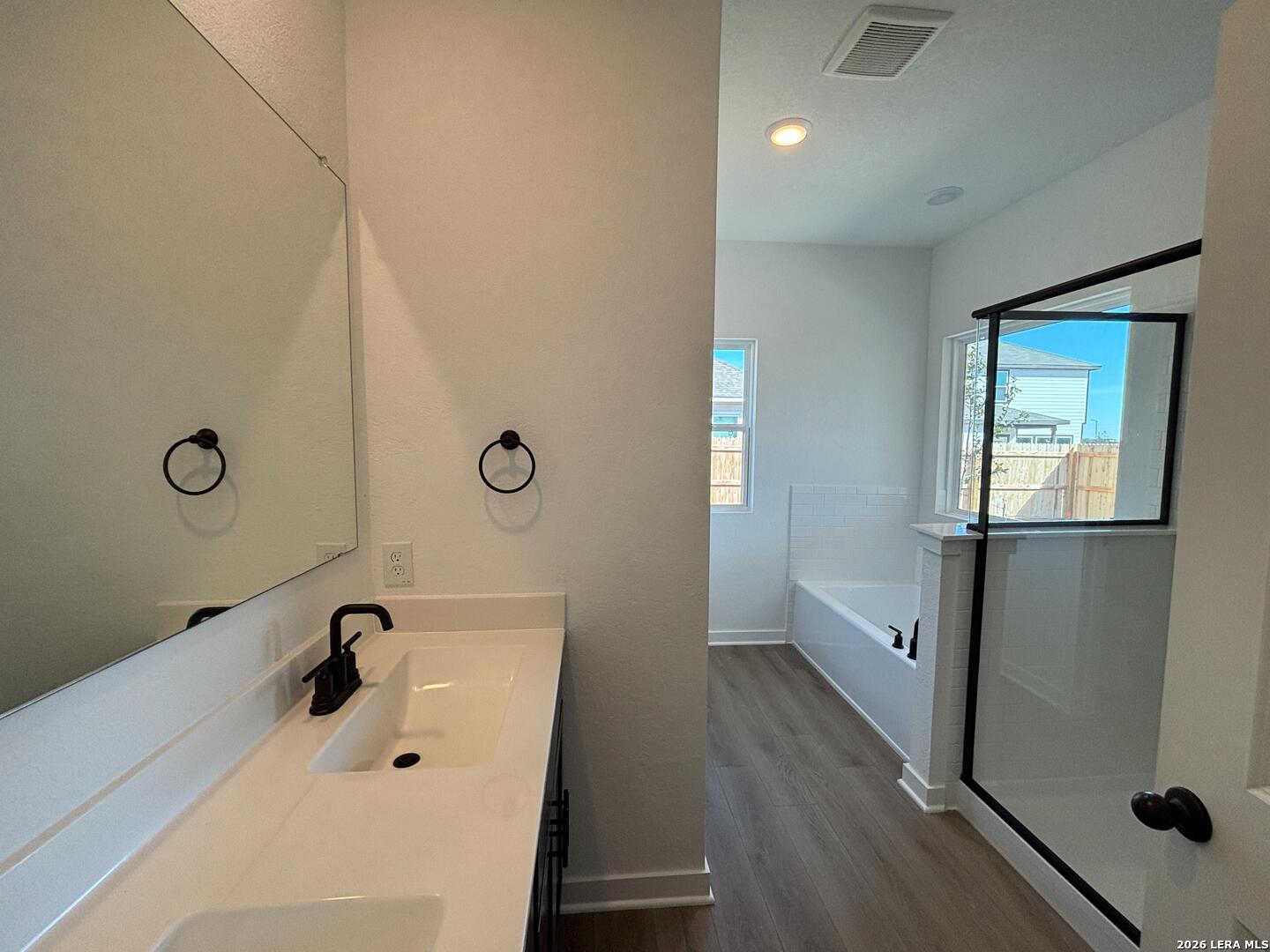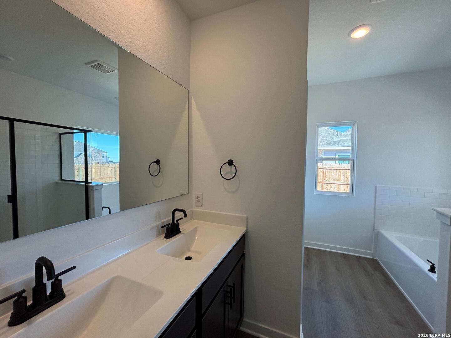 Charming one story home with gourmet kitchen featuring quartz countertops, upgraded cabinets, and a pantry. Open and spacious family room with large windows that look out onto the backyard. No direct back neighbors. Secluded primary suite features a private bath with an oversized shower, garden tub, double vanities, and a walk-in closet. Three secondary bedrooms, a separate sitting room, and two additional bathrooms. Covered patio ideal for outdoor relaxation. Full landscaping package with a sprinkler system. This home is part of our Oxford Collection - where timeless finishes and rich cabinets meet bright floors and balanced lines. Oxford blends relaxed elegance with enduring style, creating a space for laughter, traditions, and meaningful moments from day one. This home is in Saddlebrook Ranch, a master-planned community in Schertz, offering easy access to I-35, shopping, dining, Randolph AFB, a pool, playground, and top-rated schools.
