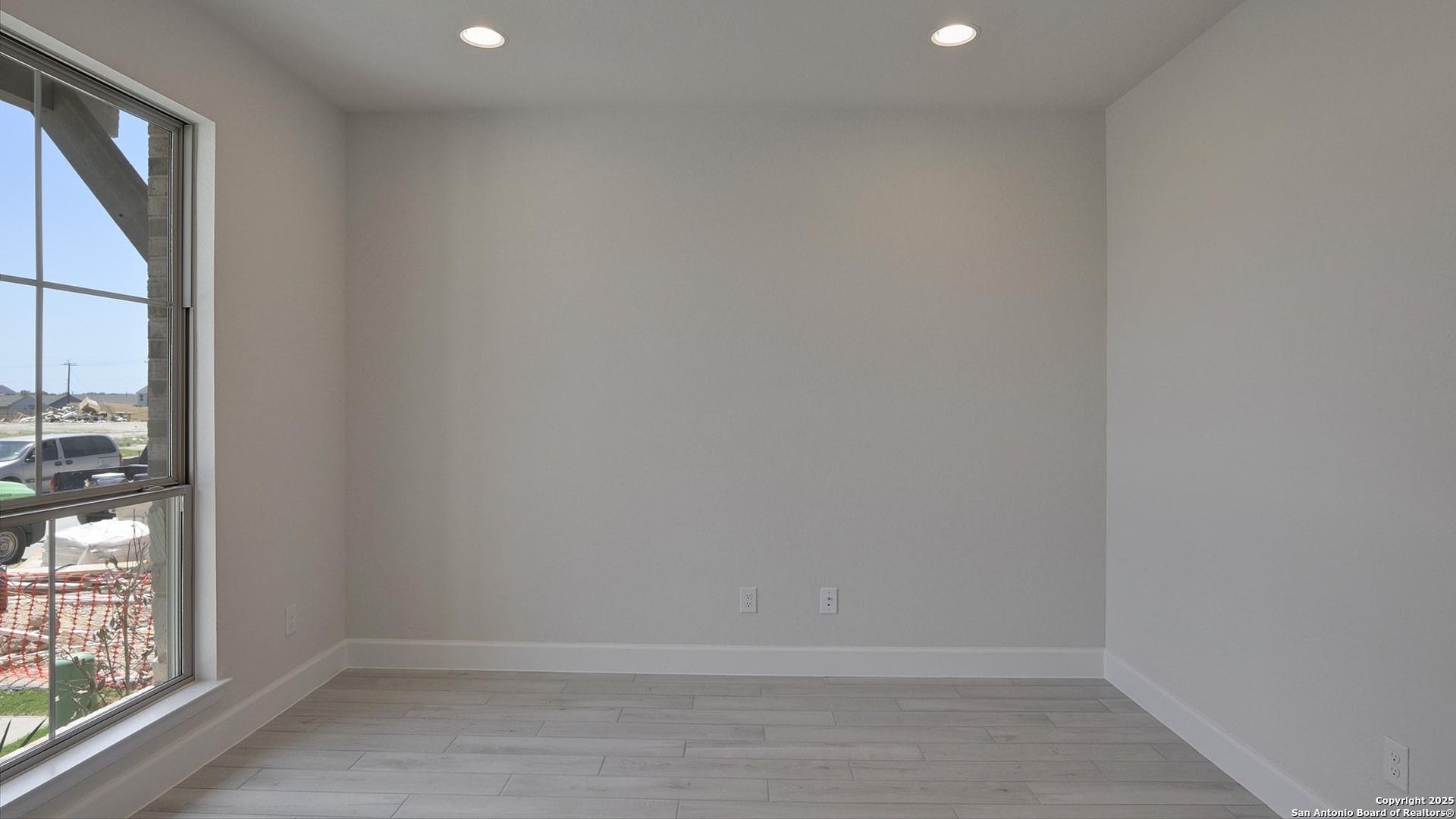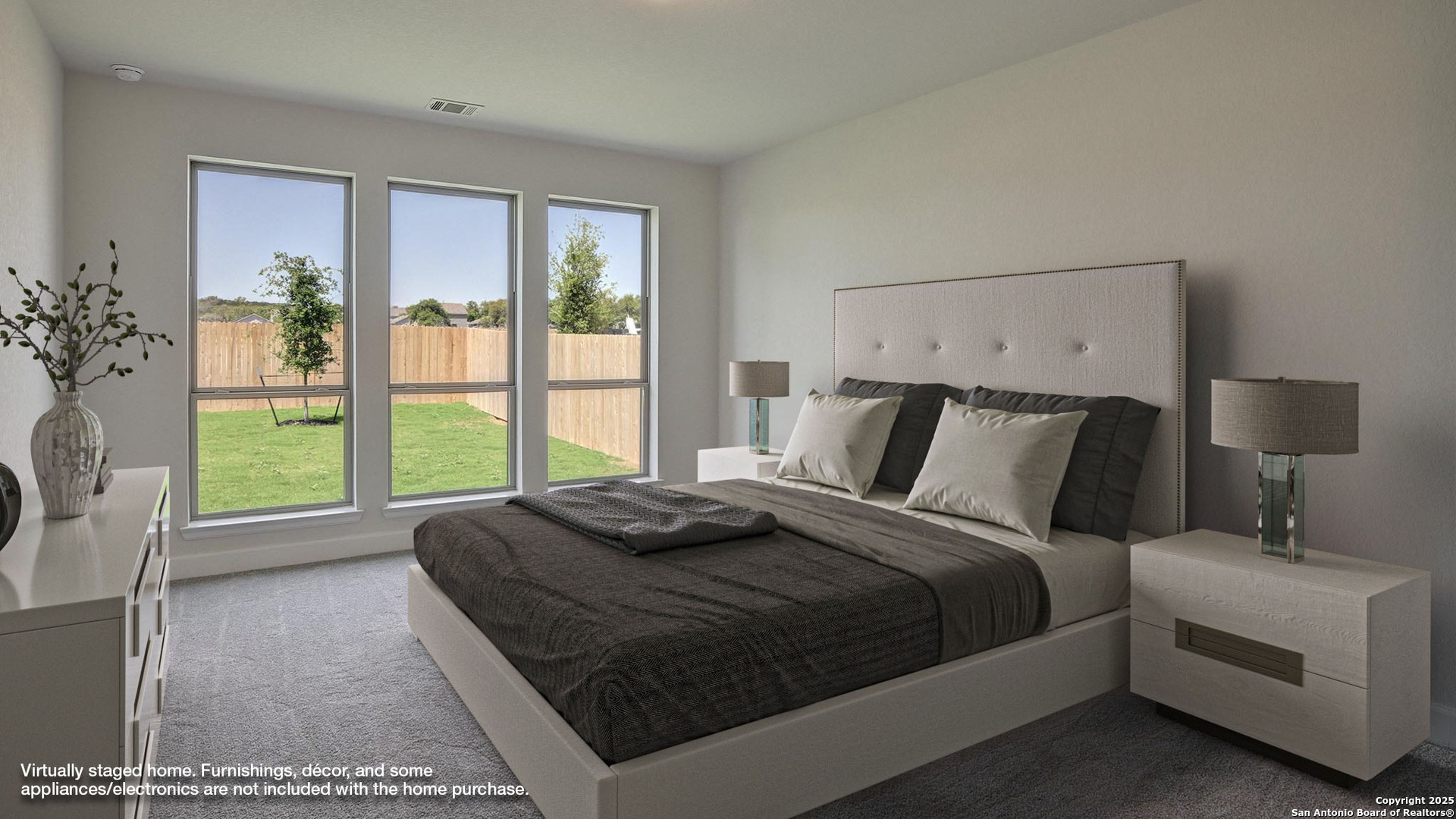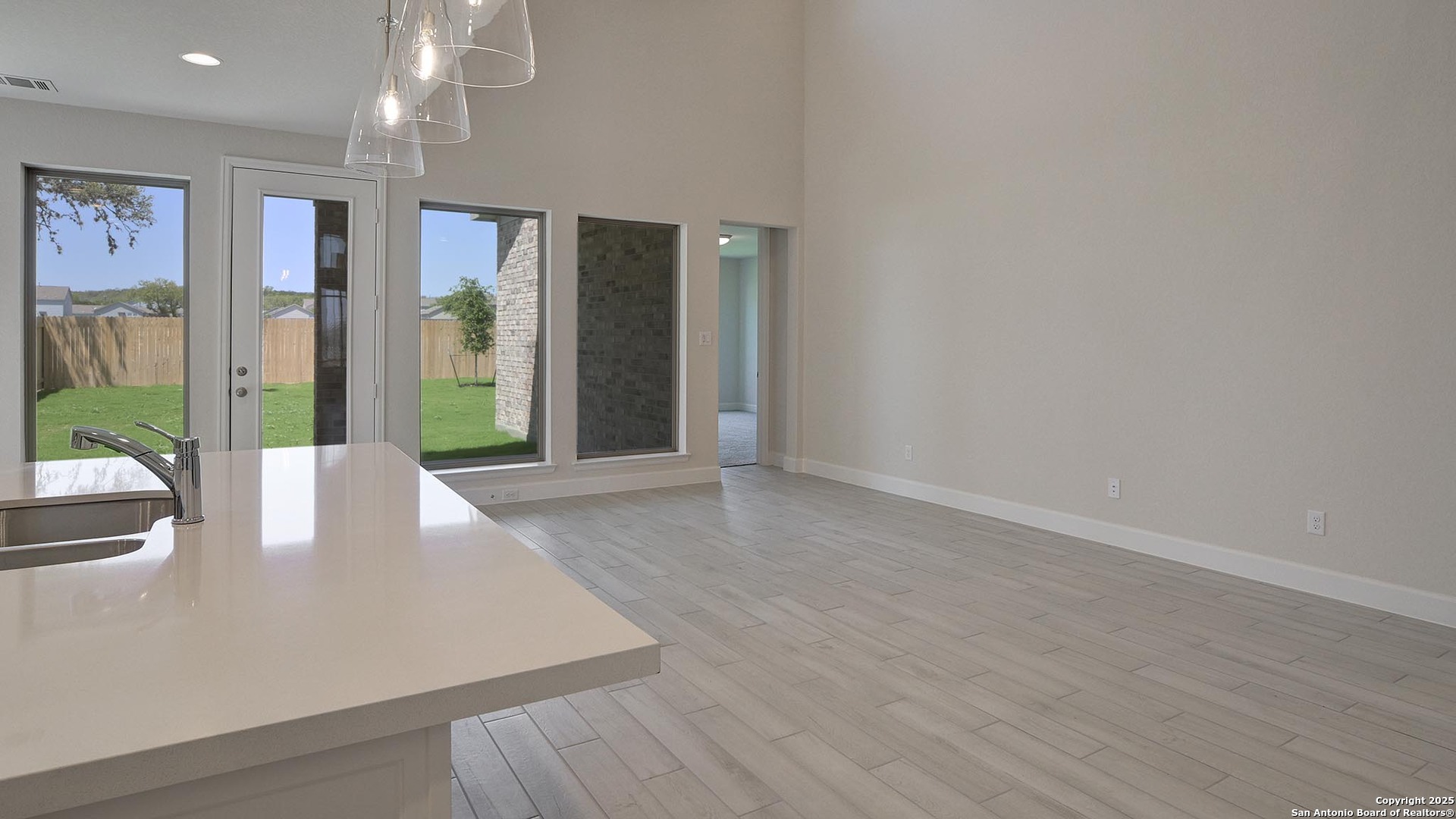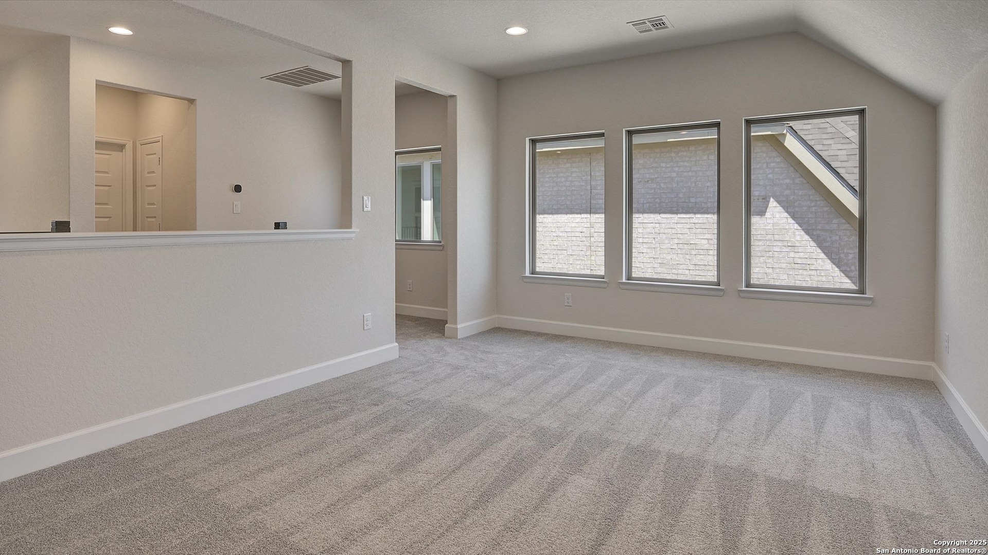 Home office with French doors set at two-story entry. Two-story family room opens to kitchen and morning area. Kitchen features large walk-in pantry and generous island with built-in seating space. Family room features wall of windows. First-floor primary suite includes bedroom with wall of windows. Dual sinks, garden tub, separate glass-enclosed shower and large walk-in closet in primary bath. Game room and all secondary bedrooms are upstairs. Extended covered backyard patio and 5-zone sprinkler system. Two-car garage.
