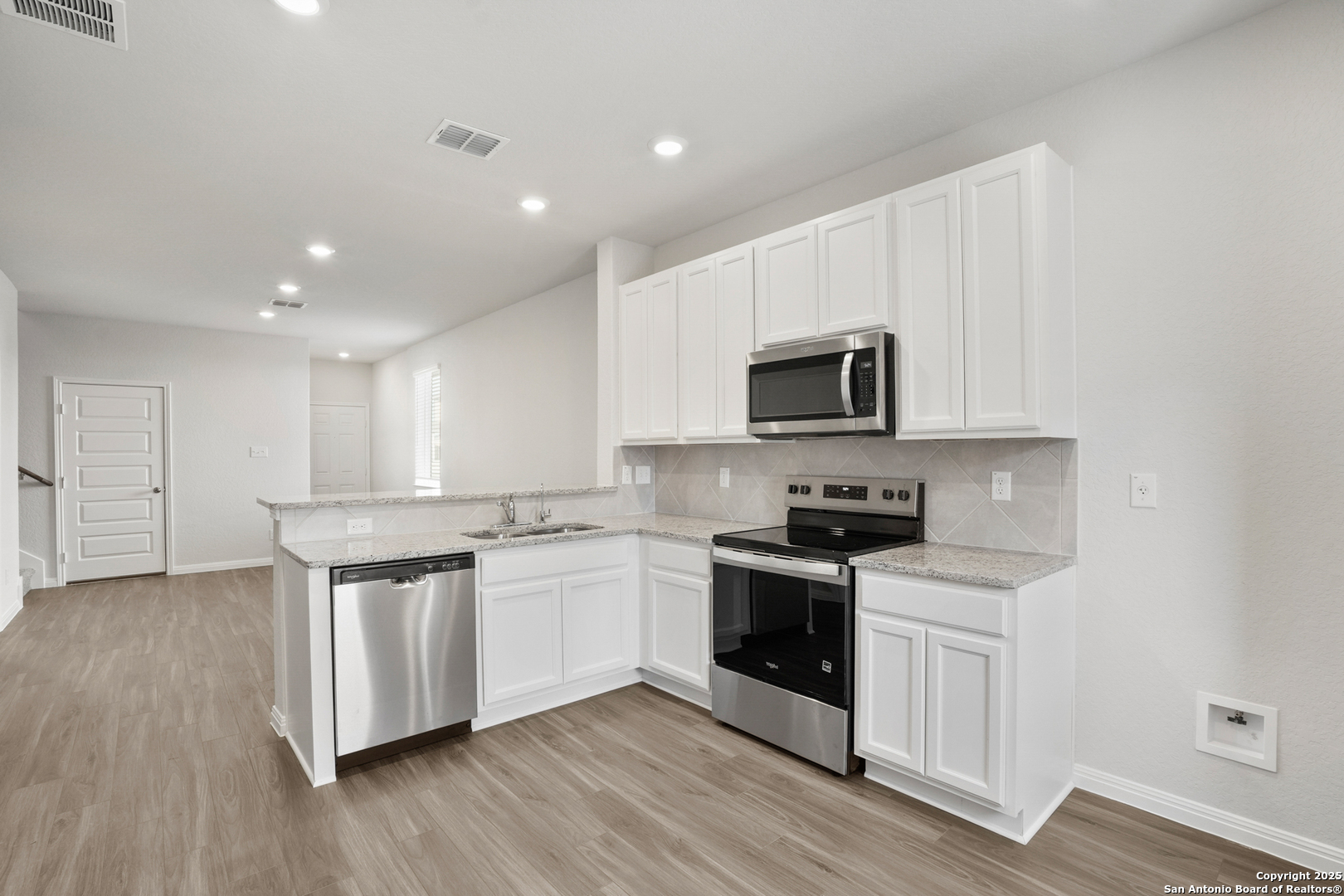 Love where you live in Melissa Ranch in San Antonio, TX! The Queensland floor plan is a spacious 2-story home with 4 bedrooms, 2.5 baths, game room, and 2-car garage. The first floor offers the perfect space for entertaining with vinyl plank flooring throughout the common areas! The gourmet kitchen is sure to please with 42-inch cabinets, granite countertops, and a bar top kitchen open to the family room! Retreat to the first-floor Owner's Suite featuring double sinks with granite countertops, a sizable shower, and a spacious walk-in closet! Enjoy the great outdoors with a patio! Don't miss your opportunity to call Melissa Ranch home, schedule a visit today!