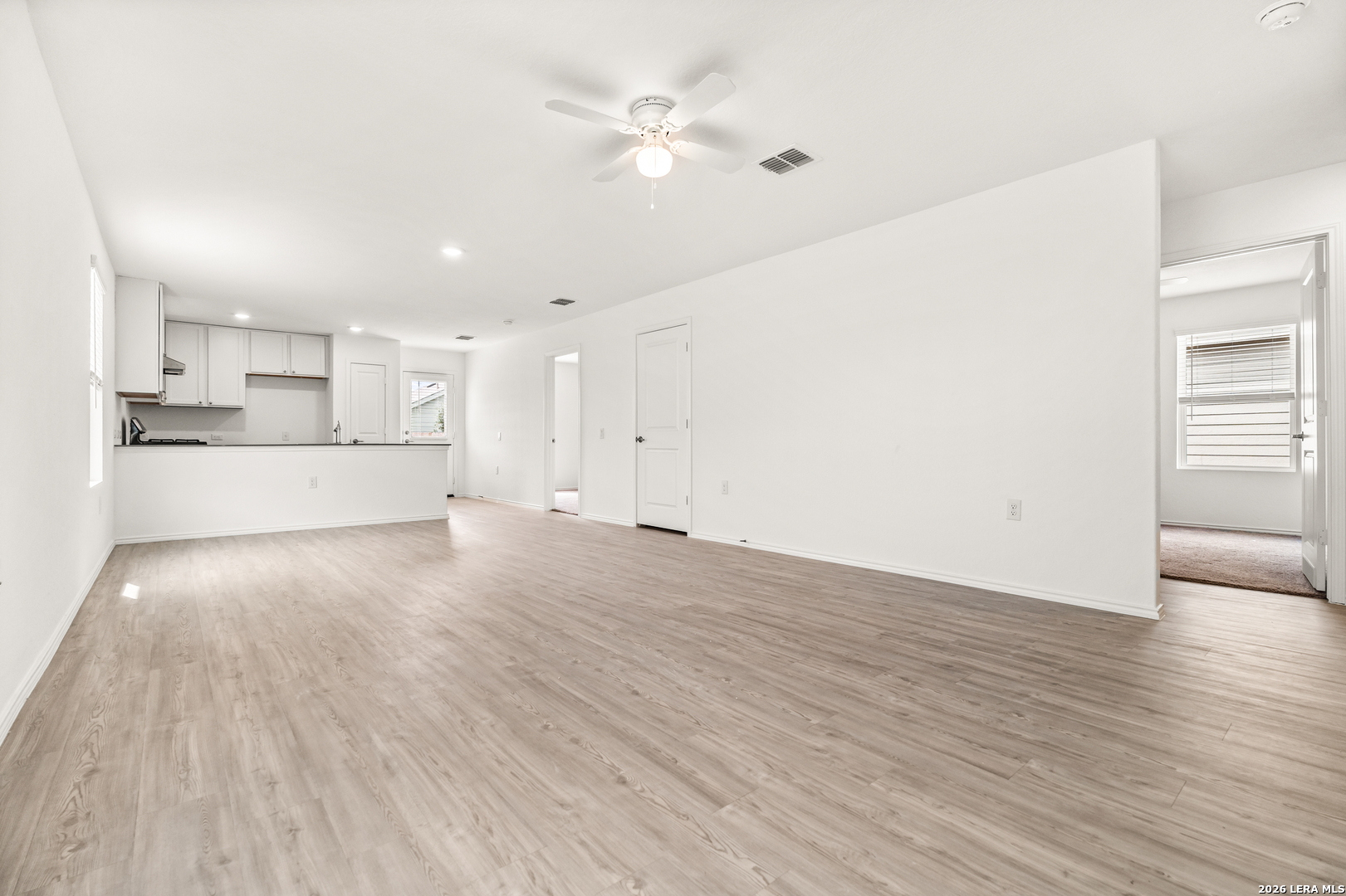 Step into this move-in ready 3 bedroom, 2 bath home designed with an open-concept layout perfect for modern living. The spacious living and dining area flows seamlessly into the kitchen, which features granite countertops, stainless steel appliances, and a clear view of the main living space. The split floor plan offers privacy with the primary suite separated from the secondary bedrooms. Outside, enjoy a generously sized backyard complete with a privacy fence-ideal for relaxing or entertaining.