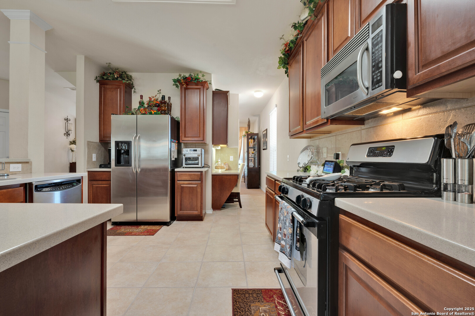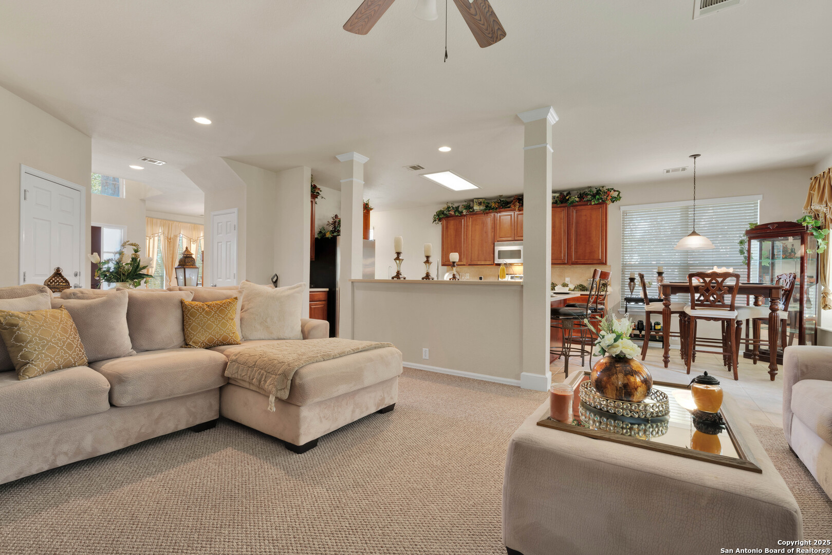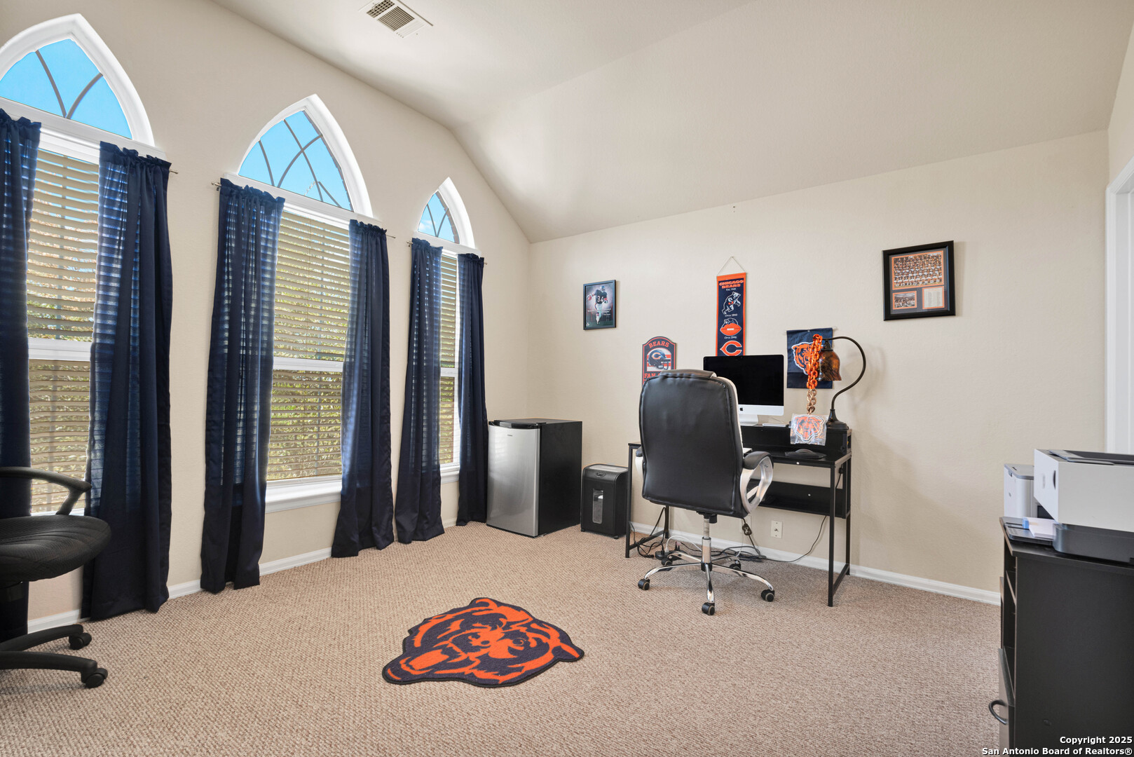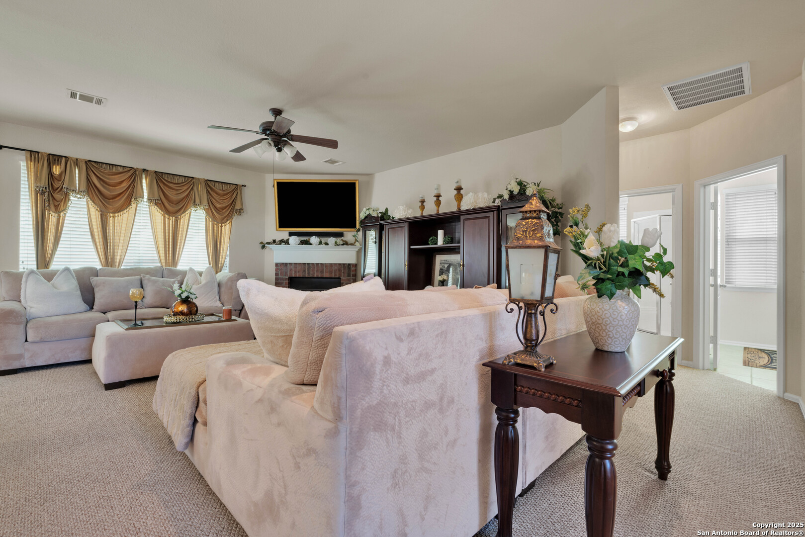 Welcome to this beautiful 4-bedroom, 3-bath home in the highly sought-after Stonegate Hill subdivision! Nestled on a spacious 0.26-acre lot, the home features an office space facing the park and greenbelt, offering peaceful views of mature Live Oak trees and stunning sunsets. The open floor plan is filled with natural light and showcases dramatic gothic-style windows, a cozy fireplace, and inviting spaces perfect for family gatherings. Meticulously maintained by its owners, the home also includes an attached 2-car garage and generous outdoor living space. Stonegate Hill is a gated community offering top-notch amenities such as playgrounds, tennis courts, and a refreshing pool. Conveniently located near shopping, dining, and major roadways, this property perfectly blends comfort, style, and accessibility-an opportunity you won't want to miss!