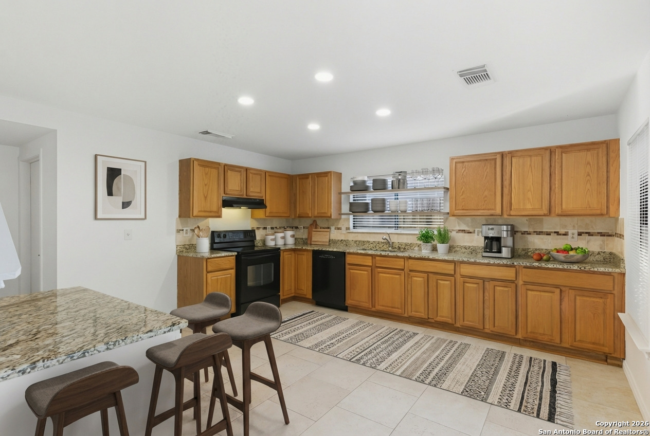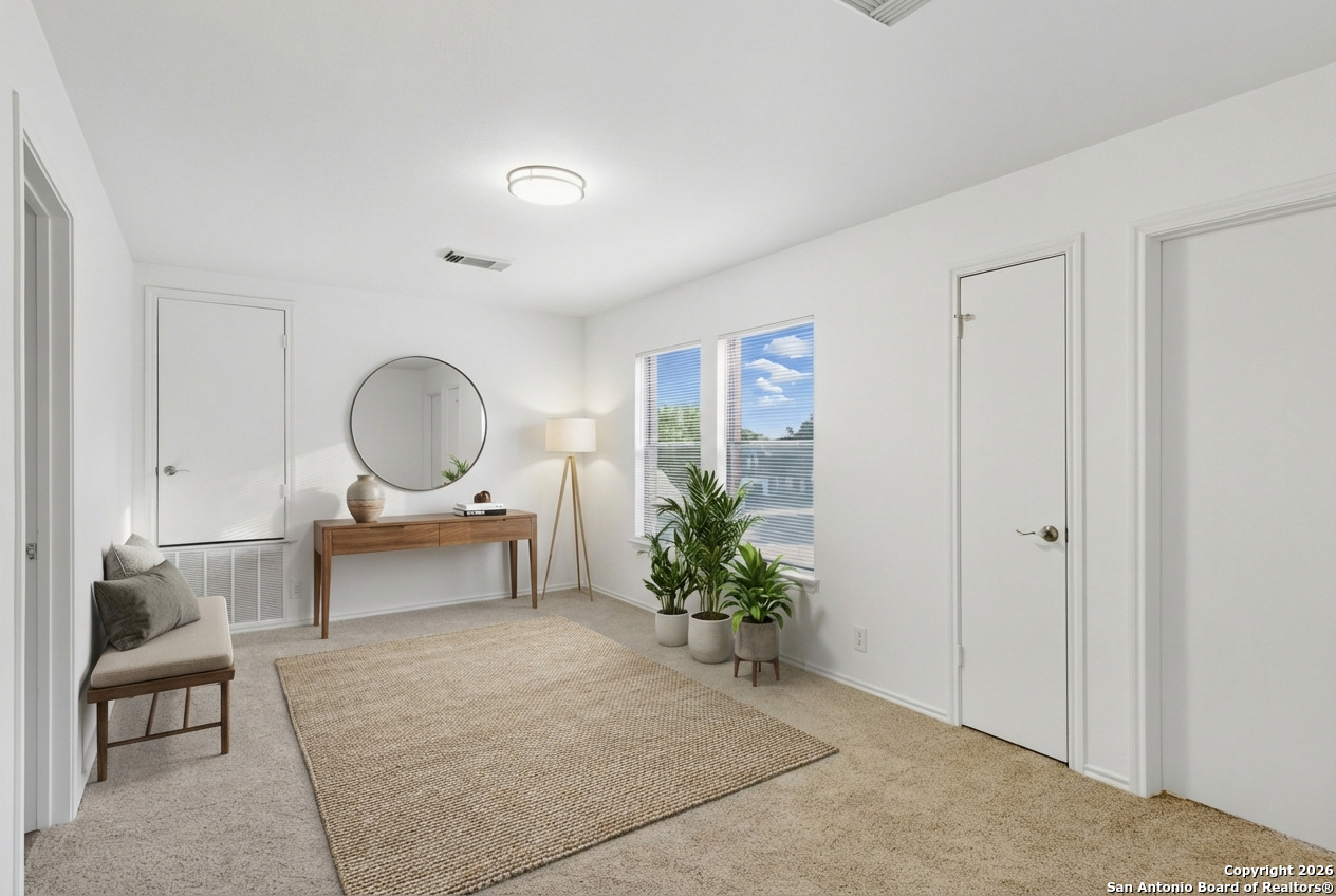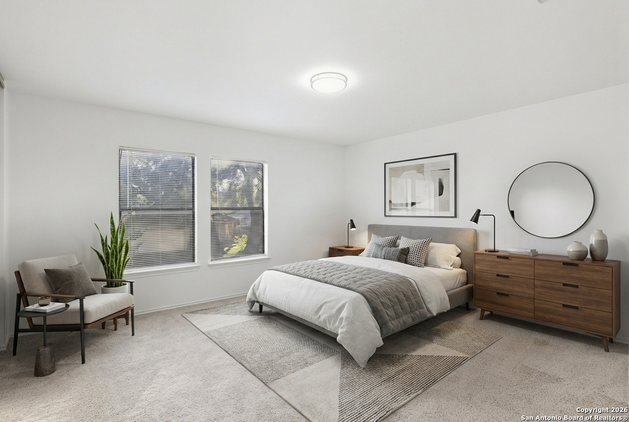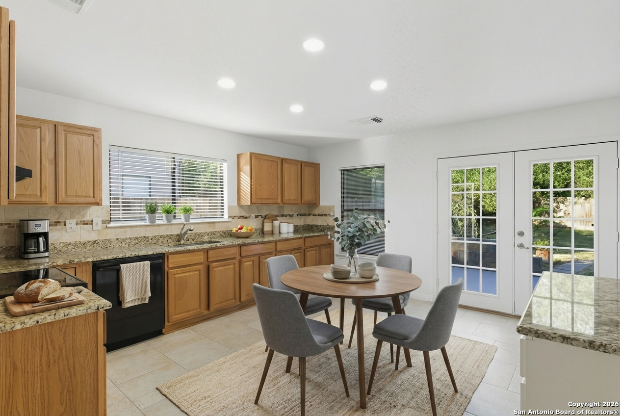 Welcome to this beautifully refreshed home located in the desirable Silverbrook neighborhood in Northwest San Antonio. Nestled among mature trees and backing up to a green space, this property offers privacy and a serene setting. The interior has been updated with fresh paint throughout, new hardware, new light fixtures, and new flooring, including luxury vinyl plank in the primary suite and brand-new carpet upstairs. The downstairs features no carpet, granite kitchen countertops, a large walk-in pantry, an