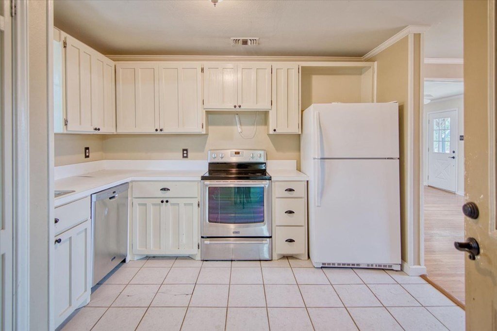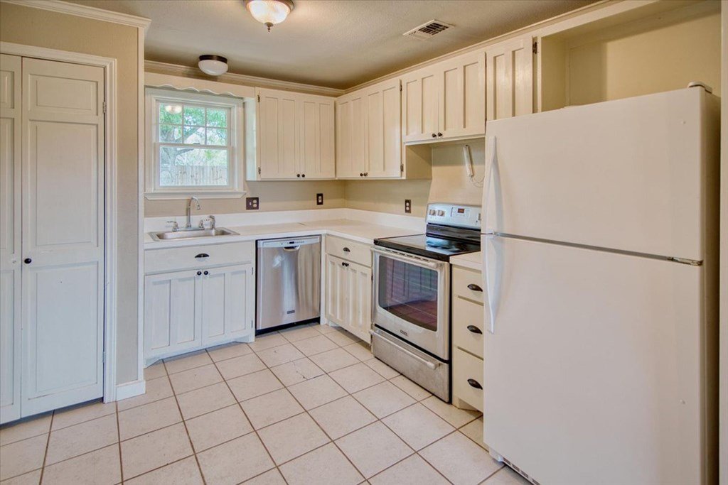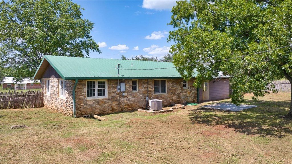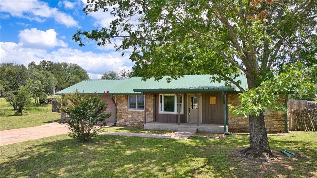 This 3-bedroom, 1.5-bath home at 1013 Church Street is in a quiet Mason neighborhood and is full of charm. The stone and wood exterior, metal roof, and original hardwood floors give it a warm, inviting feel. Inside, the layout is simple and practical. The kitchen is functional with plenty of cabinet space, and it opens to a formal dining room. The living area is free flowing and bright, with a big bay window that lets in plenty of natural light. Outside, you will find large trees in both the front and back yards—one in the front yard with a swing, creating a picturesque and playful environment. The large fenced backyard, highlighted by another huge oak tree, offers ample space for outdoor activities, gardening, or relaxation. An attached one-car garage includes a washer and dryer, adding convenience for laundry and storage. At 1,050 sq. ft., this home is clean, comfortable, and full of potential, either as an investment property or a great home for a growing family.