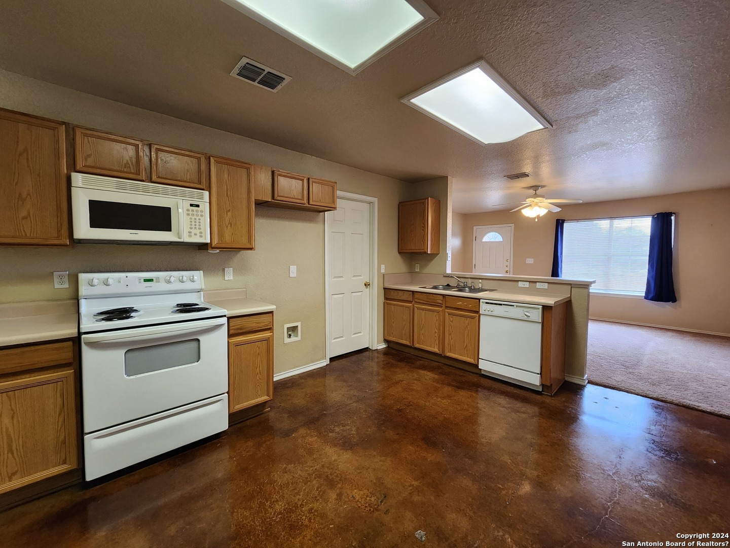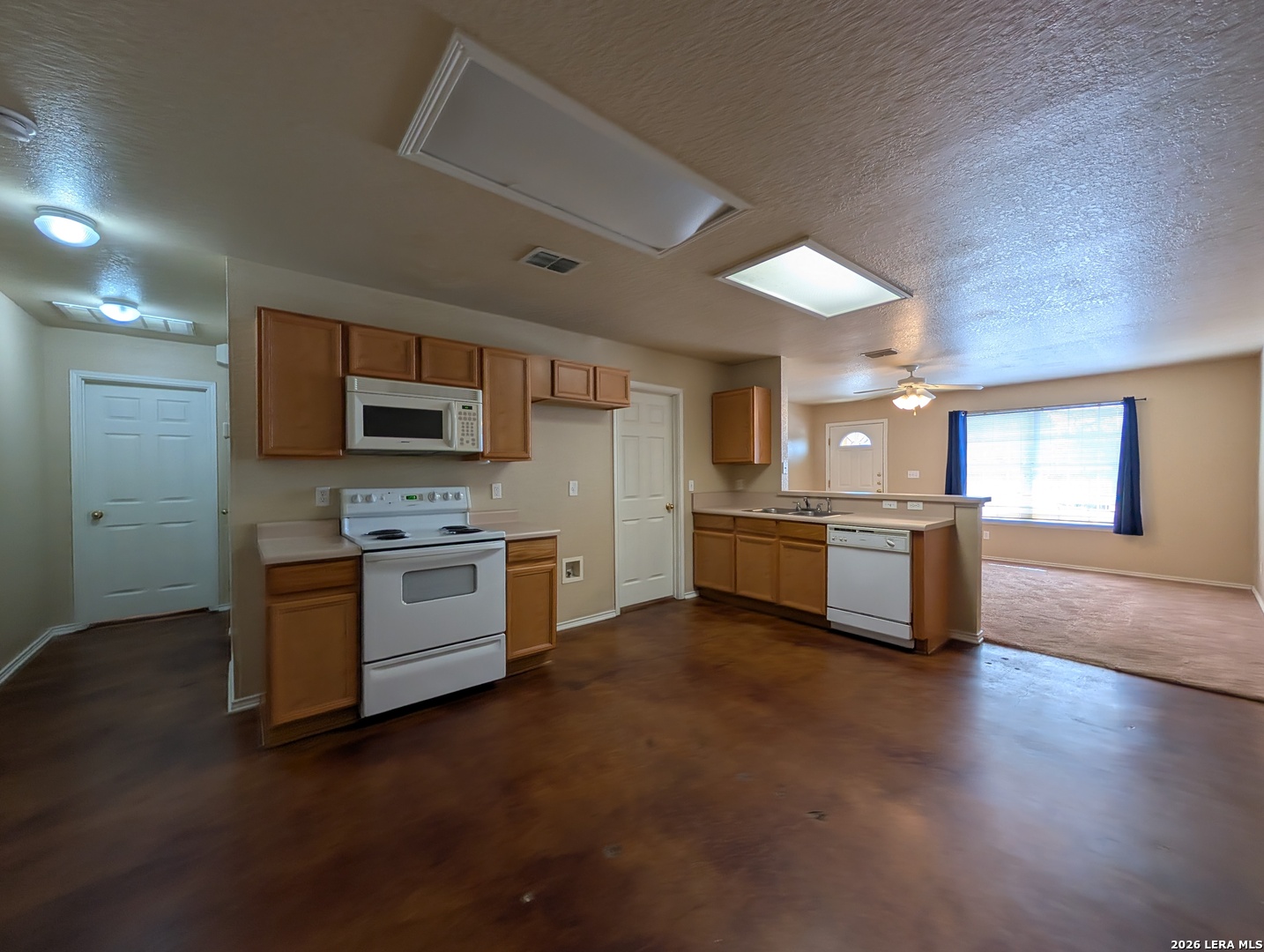 3/2/1 on Misty Acres! Close to IH 35 -perfect for commuters. Flooring is a mix of carpet & stained concrete. Kitchen Includes: dishwasher, oven/stove range electric, built in microwave, eat in kitchen & a breakfast bar. Other features include: ceiling fans, interior washer/dryer connections, garden tub, walk in closet, garage door opener, deck in backyard, & large fenced in backyard. Pets ok / 2 Max / 50lb max. Cats - Proof of Spay/Neuter. CISD