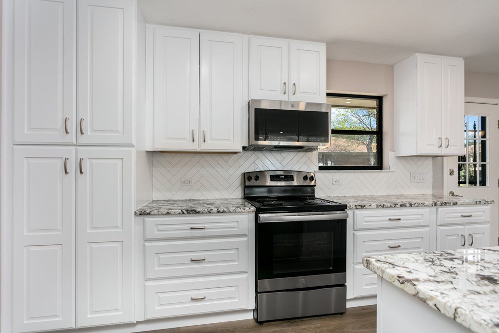 The interior remodel on this home just four years ago brought so many updates to this 3 bedroom, 2 bath home. Arched doorways, fresh paint, new light fixtures, and new flooring are just a few of the upgrades. The updated kitchen includes a large island, stainless steel appliances, granite counter tops, and a stylish herringbone backsplash. The bathrooms include quartz and counter tops and one has a walk in shower with glass doors and river rock floor and the other has a new tub shower combination with glass doors. 2 car garage and a spacious yard. EXCELLENT price on this fresh and clean, move in ready home! See the 3D virtual walk through Matterport tour.