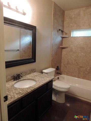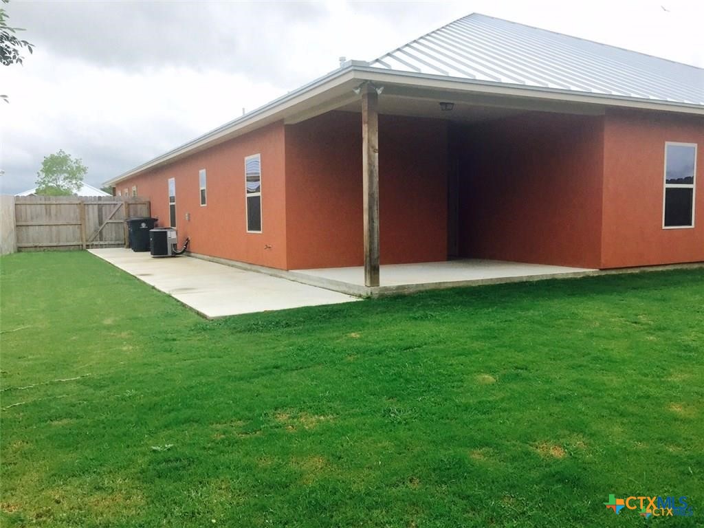 Custom 1,500 sqft single-story home for lease, built by a local (Bar J) builder, located on a quiet cul-de-sac just one mile from IH-35, Creekside shopping, and the hospital. This beautiful home offers an open floor plan with granite countertops, crown molding, high ceilings, and ceiling fans throughout. The kitchen is equipped with oak cabinets, a built-in microwave, stainless steel appliances, and a pantry, with the fridge included. The master suite features a walk-in shower and closet. Gorgeous wood and concrete floors add charm and style. Outside, relax on the large covered back porch, enjoy the privacy-fenced backyard, and appreciate the landscaped yard with mature trees. The oversized driveway and sprinkler system make upkeep easy, and front yard maintenance is included. Tenant occupied on a month-to-month basis. Pet-friendly on a case-by-case basis, with a limited number/weight. With a durable standing seam metal roof and this prime location, this home won’t last long. Schedule your showing today!