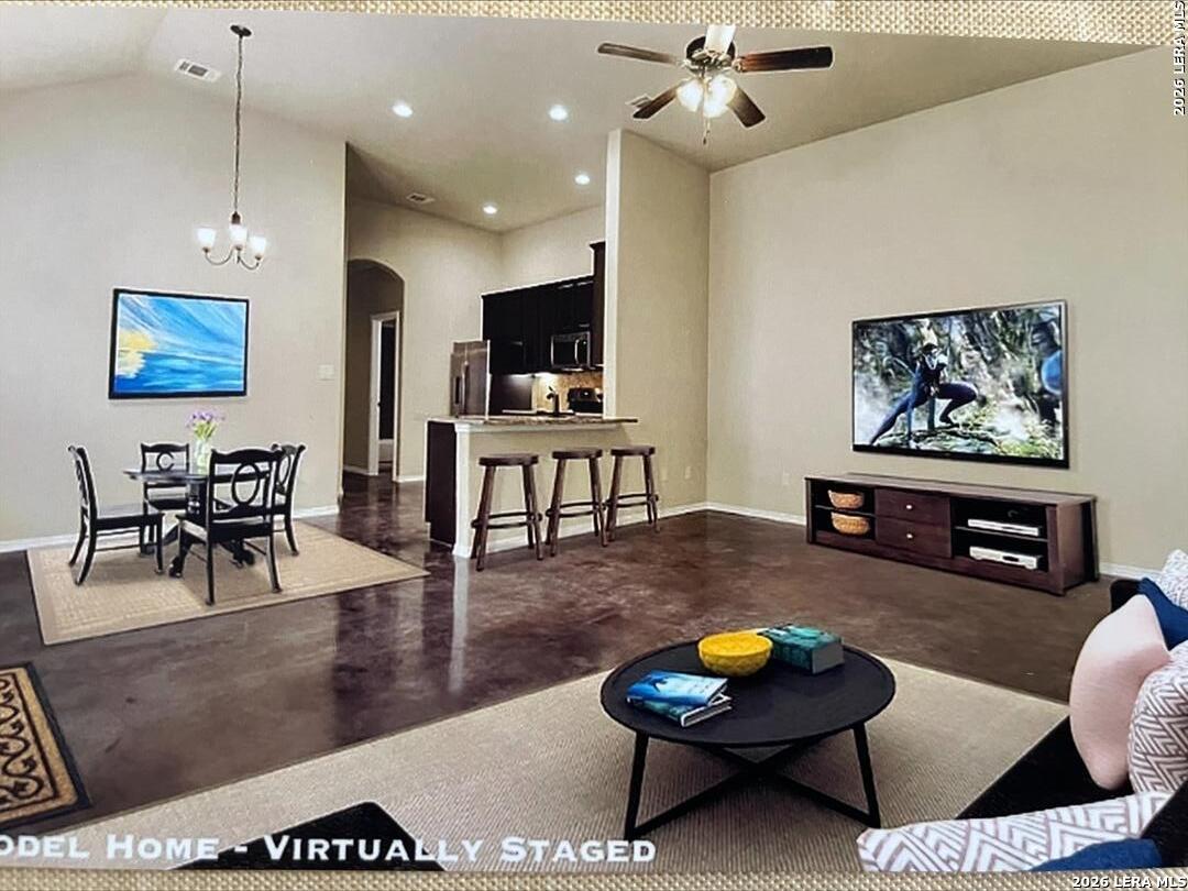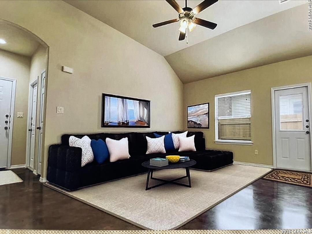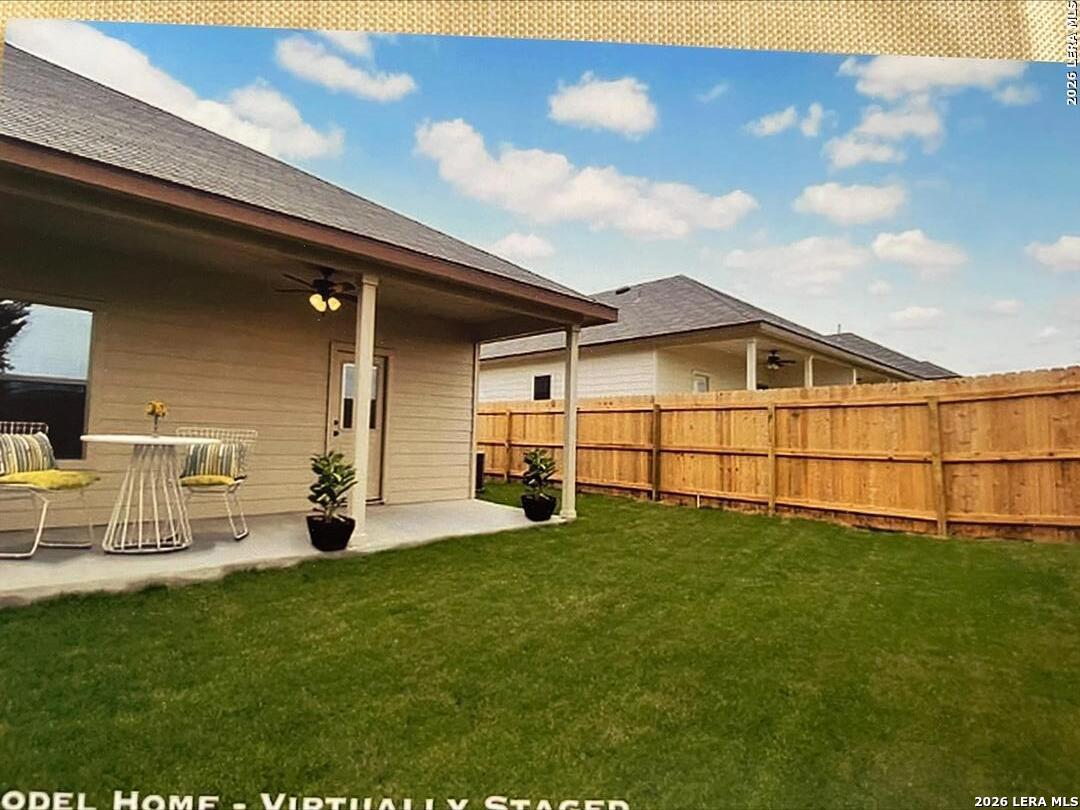 This one is clean and ready for move in. 11-foot ceilings in living room, 10-foot ceilings in master bed, stained concrete flooring, granite counter-tops, Stainless Steel appliances, 42" upper kitchen cabinets, 21x9 patio, full sod & sprinkler system, ceiling fans (living room, bedrooms & porch), window blinds, awesome back yard and extended deck. Easy access to shopping and military bases. This is a must see