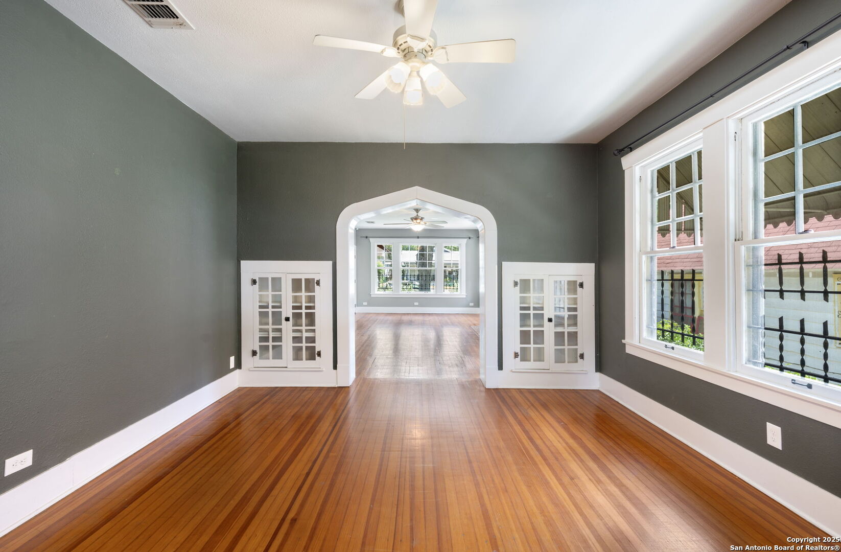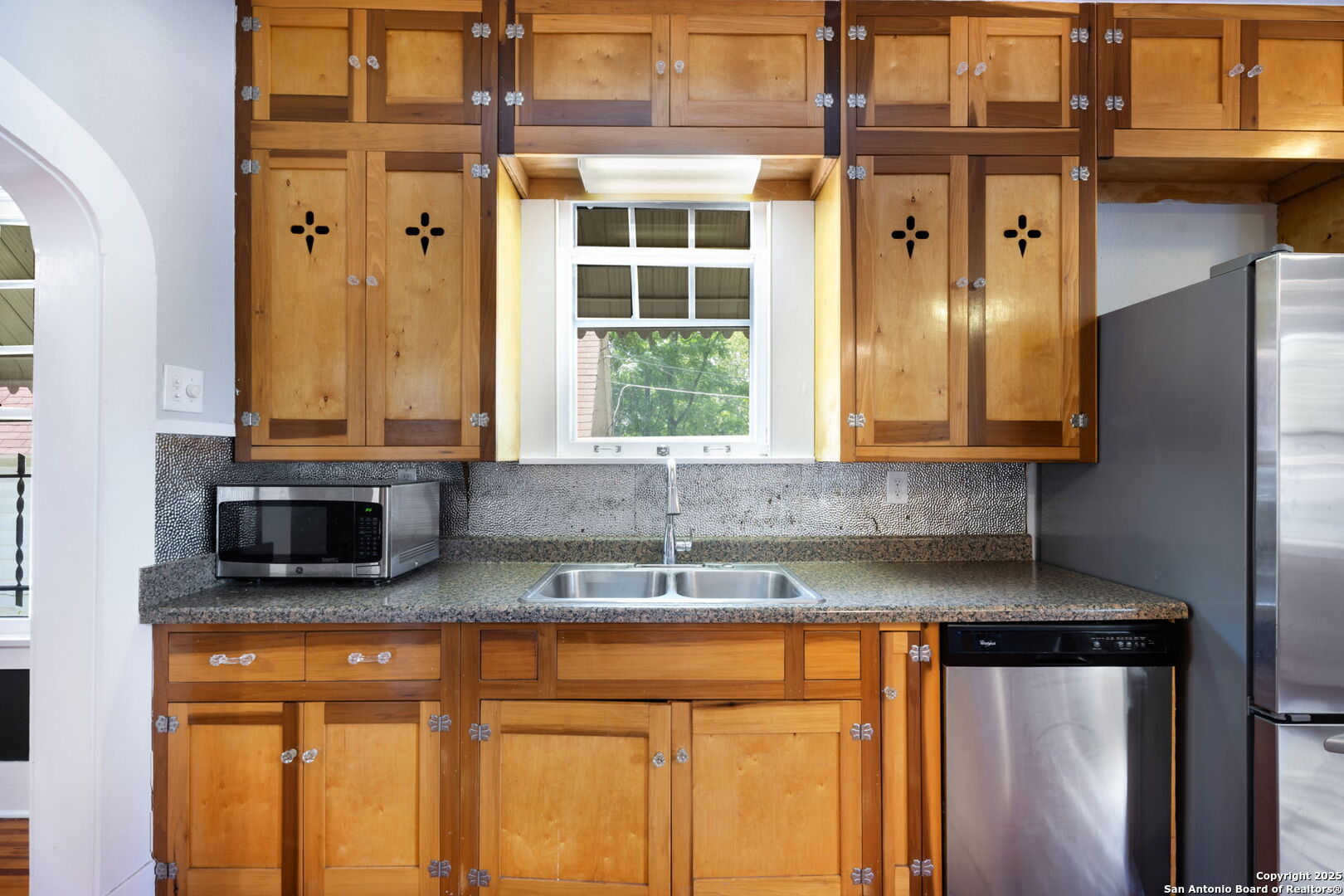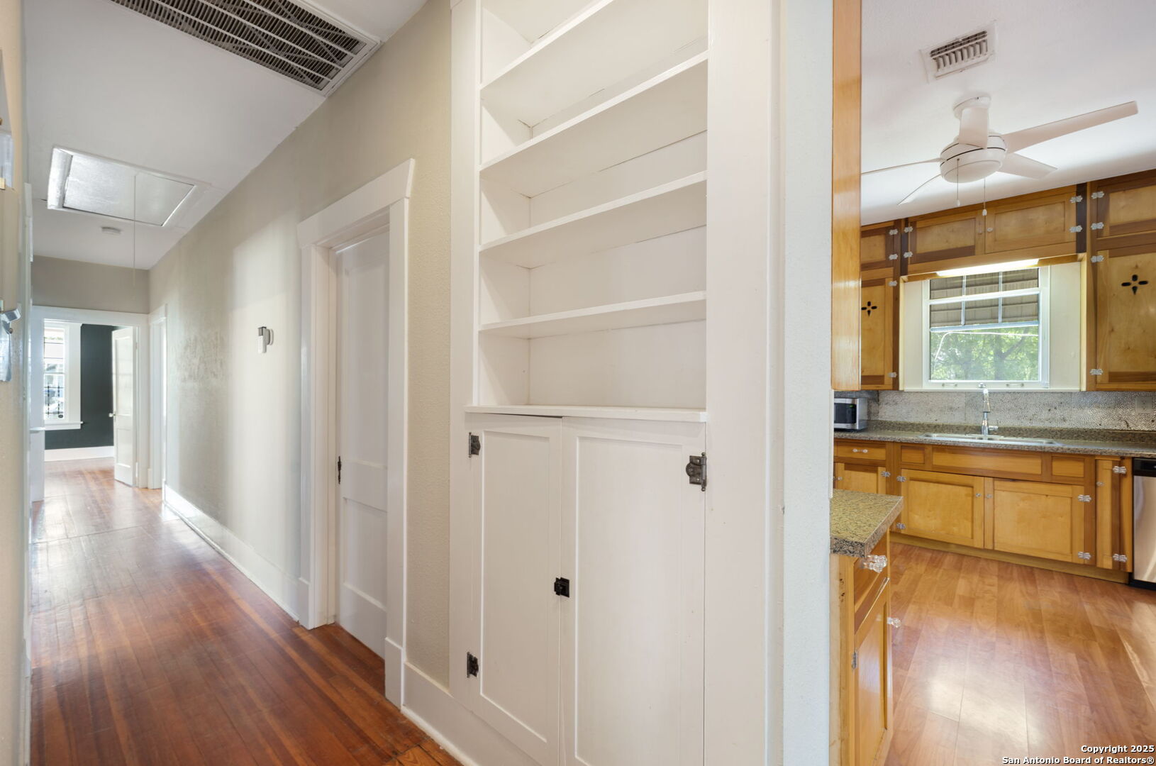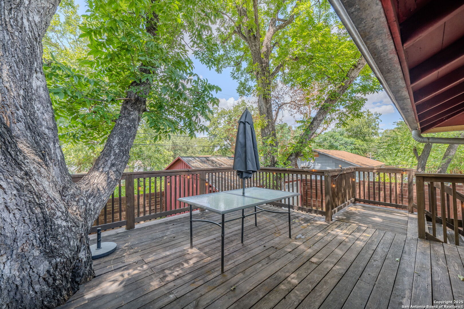 Historic Craftsman in the Heart of Beacon Hill! Step into timeless elegance and original charm with this beautifully preserved home in one of San Antonio's most beloved historic neighborhoods. Featuring 3 bedrooms, 2 bathrooms, and a detached two-car garage with workshop, this residence blends period craftsmanship with thoughtful modern updates. The inviting wrap-around front porch and expansive back deck create picture-perfect spaces for entertaining or unwinding, while mature trees provide a canopy of shade year-round. Inside, you'll discover original woodwork, gleaming hardwood floors, mosaic tile, and built-in china cabinets in the dining room, each detail carefully maintained to honor the home's heritage. A remarkable full-footprint cellar offers endless possibilities for storage, expansion, or creative use. Additional highlights include a durable metal roof, stone-paved backyard, and a full-yard sprinkler system for easy maintenance. Ideally located just two blocks west of Blanco Road, this home offers classic style, walkable convenience, and the enduring beauty of Beacon Hill living.
