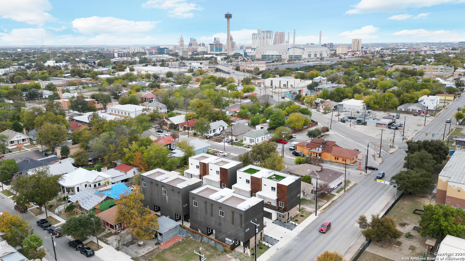 Step into the future of upscale urban living at San Antonio's newest luxury townhome community, perfectly positioned just two blocks from the soon-to-break-ground $4 billion marble projects. Each meticulously designed residence boasts three spacious bedrooms, 3.5 elegant bathrooms, and three distinct outdoor living spaces-topped off with one of the largest rooftop decks in the city. Add in your own private, two-car garage and revel in the unparalleled convenience of secure parking in a fully gated neighborhood. Inside, high-end finishes abound: LVP flooring for modern durability, stunning quartz waterfall countertops, and finely crafted fixtures throughout. When you're ready to explore, you'll be within walking distance of the Alamodome, Hemisfair Park, and the Tower of the Americas, with The Pearl and River Walk a mere five-minute drive away. Perfect for families, professionals, and savvy investors eyeing lucrative short-term rentals, these residences pair sophisticated style with a prime location. From your rooftop perch, enjoy unobstructed views of downtown's shimmering skyline-take hold of this rare opportunity to own not just a property, but a thriving lifestyle. **HOA is currently being set up by a RE Attorney, and will allow STR within the community, this community will also be a FULLY GATED community in the near future**
