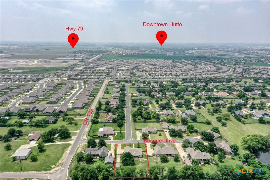Welcome to 102 Bosque Drive, located in the highly desirable Rivers Crossing neighborhood featuring half-acre homesites just minutes from downtown Hutto and SH 130 Toll. This meticulously maintained home offers a very low Property tax rate of 1.76, covered front and back porches—perfect for rocking chairs and enjoying a relaxed country lifestyle. Inside, you’ll find a welcoming tiled grand entryway, beautiful luxury vinyl plank flooring, and a spacious kitchen at the heart of the home. The fourth bedroom is conveniently located off the entry and would make an ideal home office or flex space. Recent updates include new roof shingles (2023) and a water softener system. 2025 upgrades include: kitchen updates, lighting and ceiling fans throughout, quartz countertops in baths/kitchen/laundry, deep sink, stainless steel appliances, a remodeled primary walk-in glass enclosed shower with dual shower heads, jacuzzi tub, added counter/cabinets in Laundry room and fresh interior paint, luxury vinyl plank and carpets and upgraded RV pad 50-amp service—making this home truly move-in ready. Step outside to a generous backyard featuring an RV parking pad with electrical hookup and a 12x16 storage shed, perfect for a workshop or lawn equipment storage. Don’t miss your opportunity to make this wonderful home your own—come see why 102 Bosque Drive is the perfect place to call HOME.