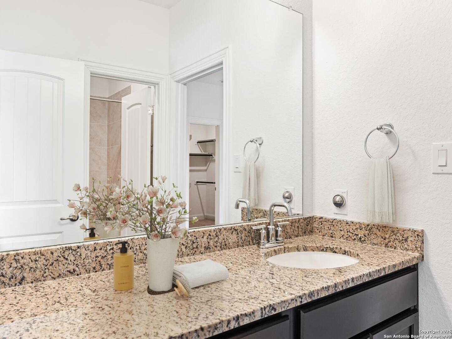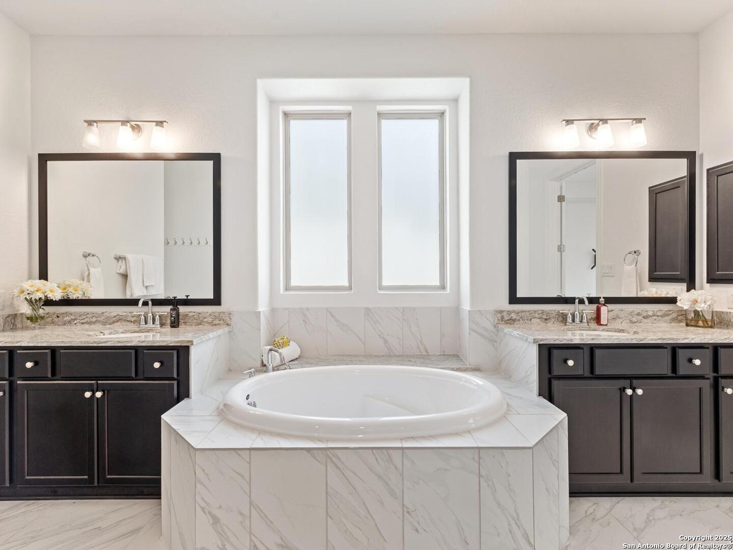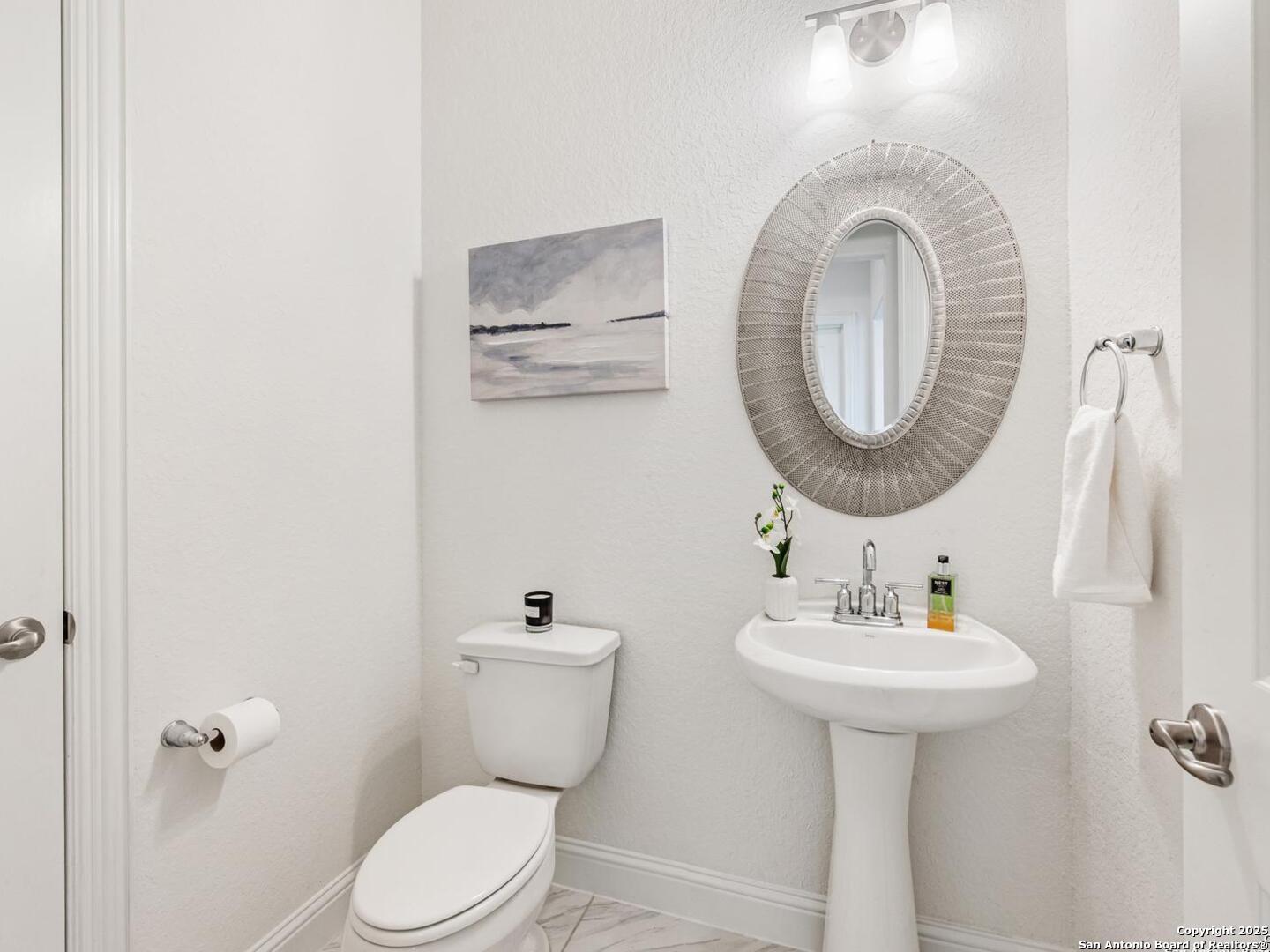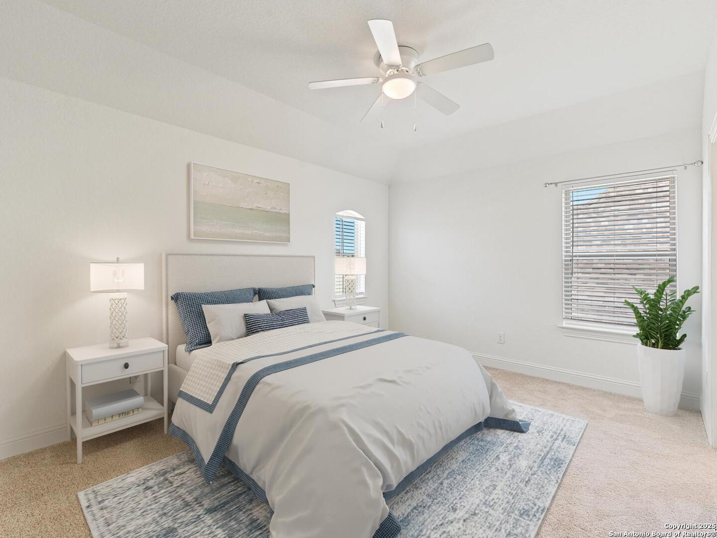 Enjoy an easy commute to San Antonio or the Medical Center while living just minutes from La Cantera, The Rim, downtown Boerne, and top-rated schools. This elegant 5-bedroom, 3.5-bath home sits on a quiet greenbelt in coveted Regent Park-and because it was occupied only briefly during a corporate relocation, it feels truly like new. A charming front porch and 8' solid wood door open to a bright foyer with wide plank floors. The main level offers a private study, formal dining, and a spacious living room with dramatic ceiling and stone fireplace. The gourmet kitchen features a large quartz island, upgraded marble backsplash, gas cooktop, stainless appliances, walk-in pantry, and casual dining overlooking the backyard. The first-floor primary suite provides a spa-like retreat with dual vanities, soaking tub, walk-in shower, and a generous closet. Upstairs, a large game room anchors four bedrooms-all with walk-in closets-and two full baths. A mudroom with built-ins and a spacious laundry room add everyday convenience. Outside, enjoy a covered patio, professional landscaping, a 6' privacy fence, and a full sprinkler system. Regent Park offers resort-style amenities including a sparkling pool, clubhouse with gym and event space, playground, and wide sidewalks. Move-in ready, lightly lived-in, and impeccably maintained, this nearly new home is a rare opportunity-and just in time for the holidays. Move in before the end of the year and make this exceptional property your best holiday gift yet.