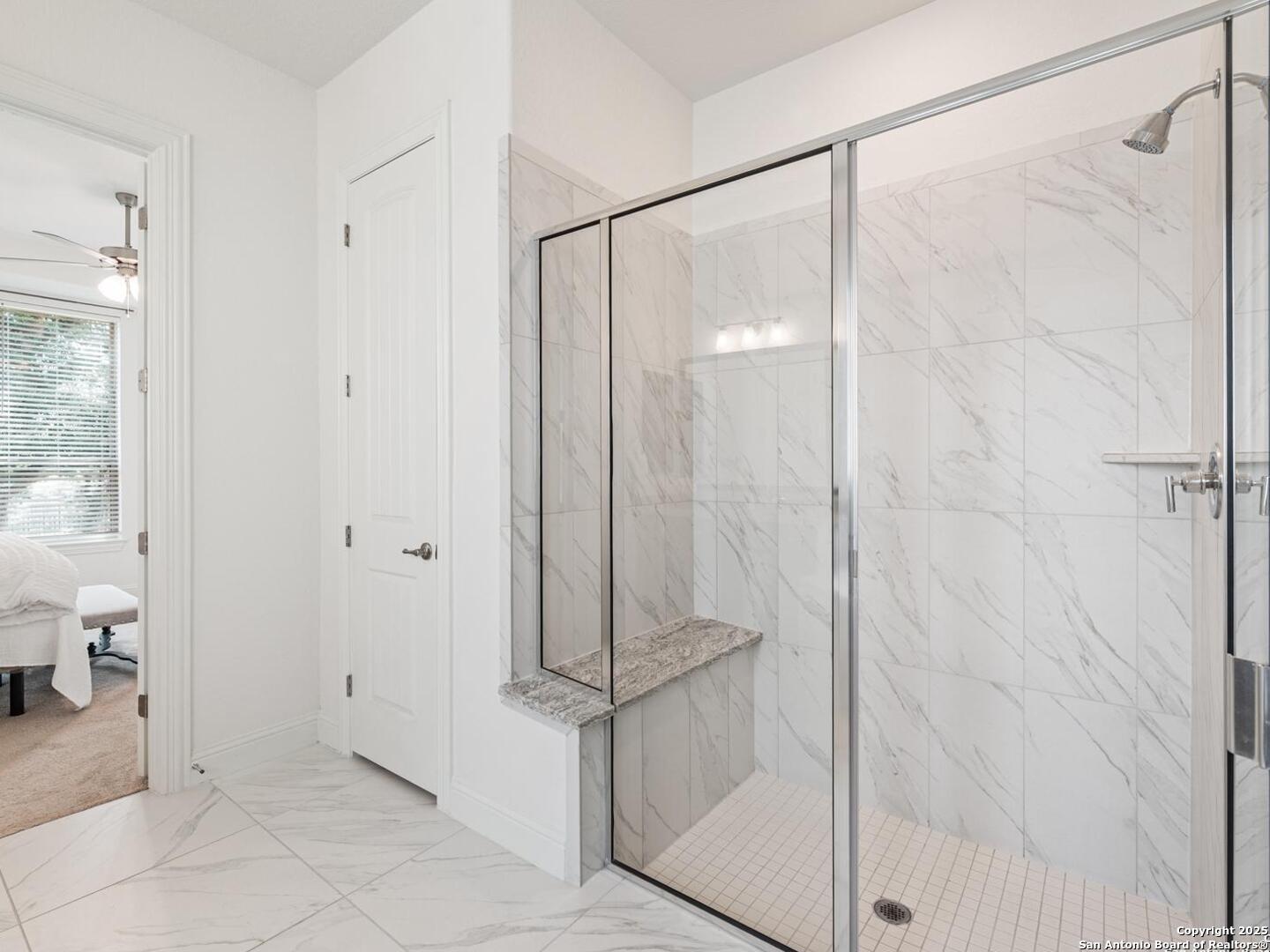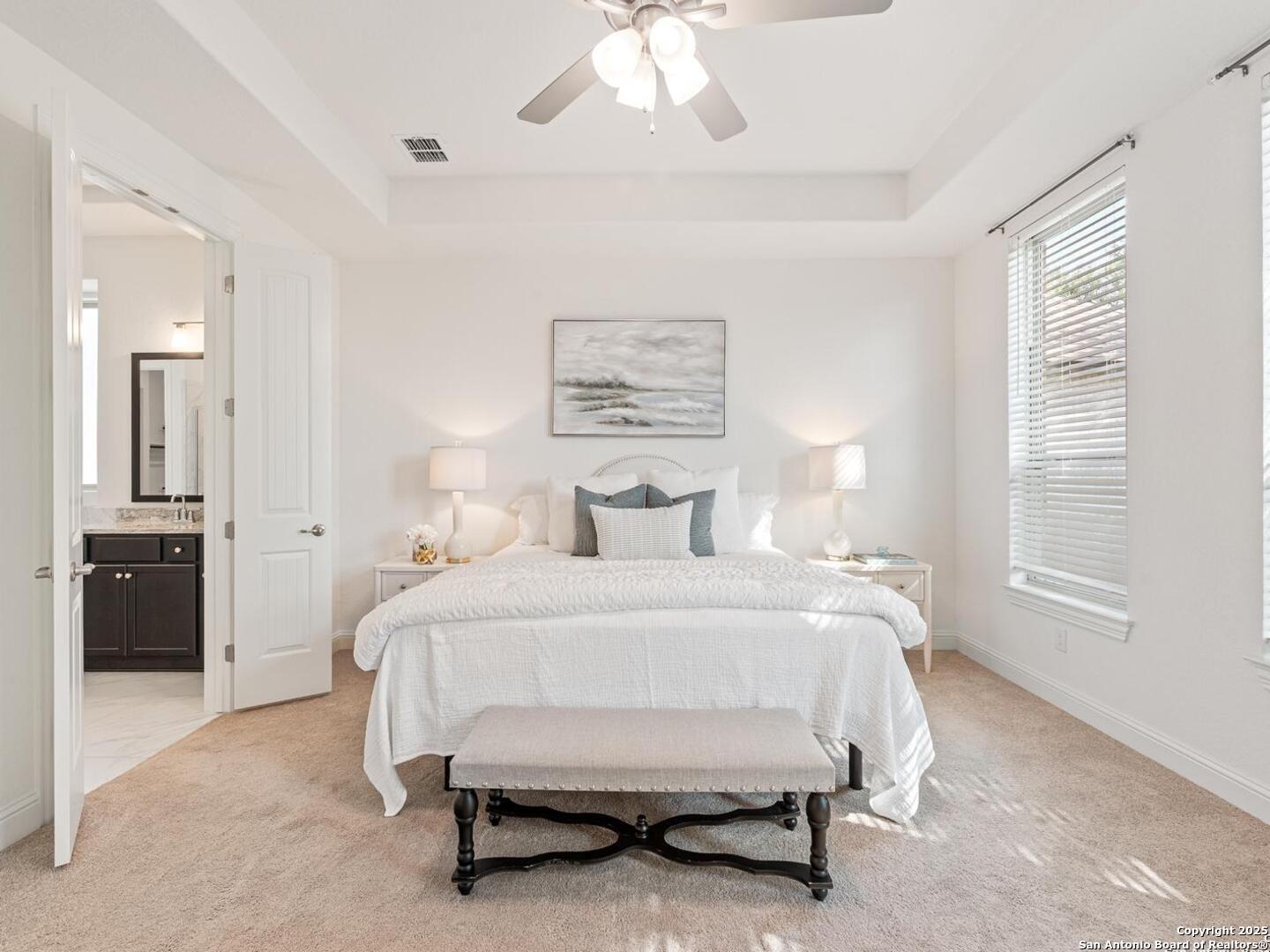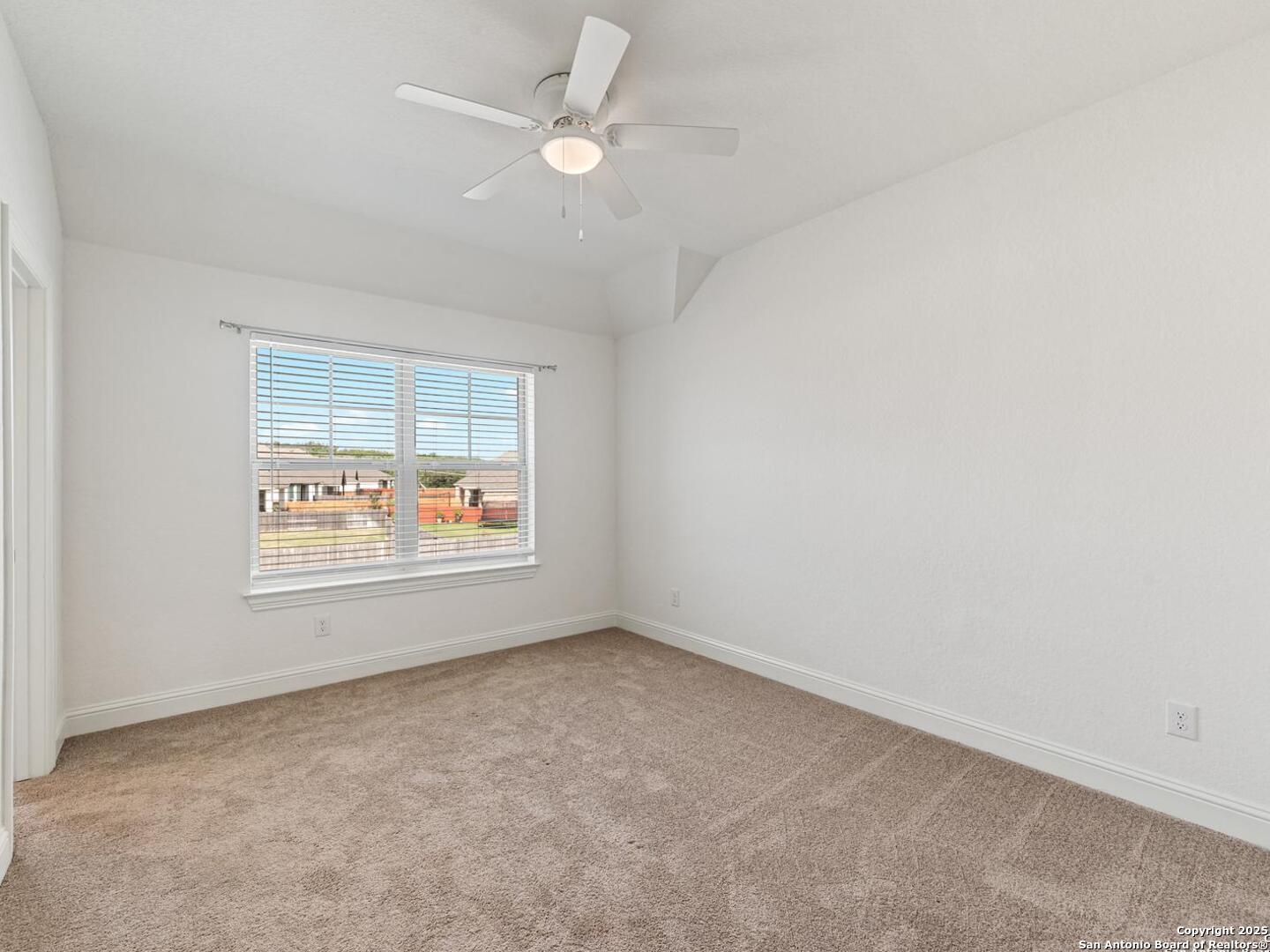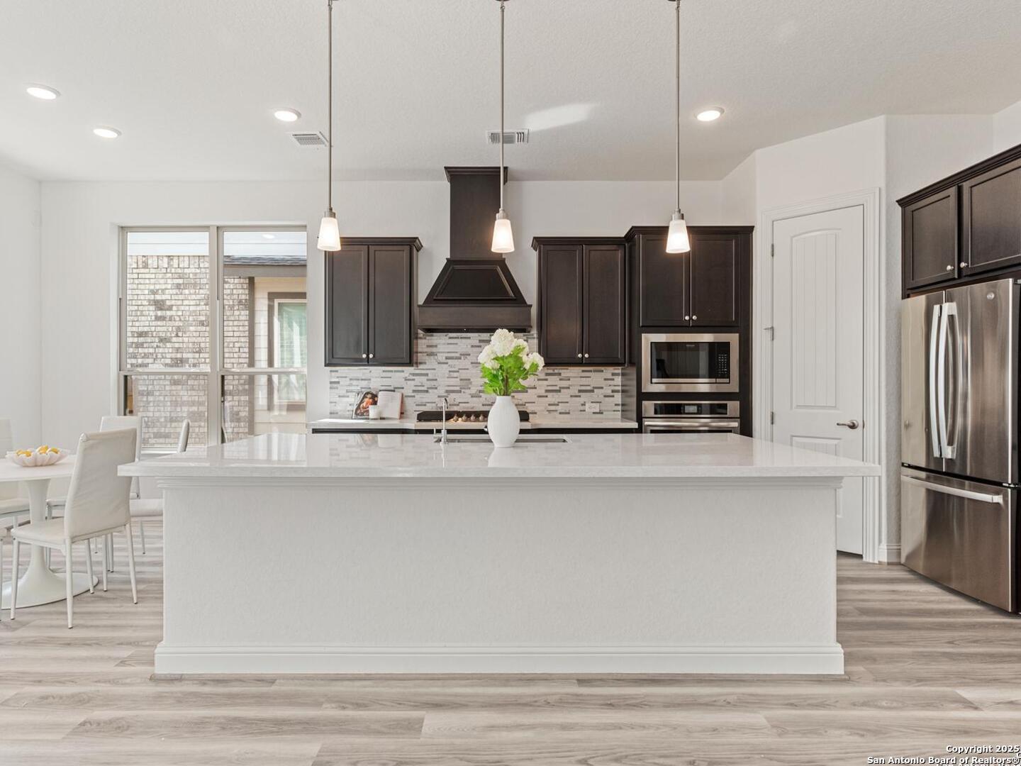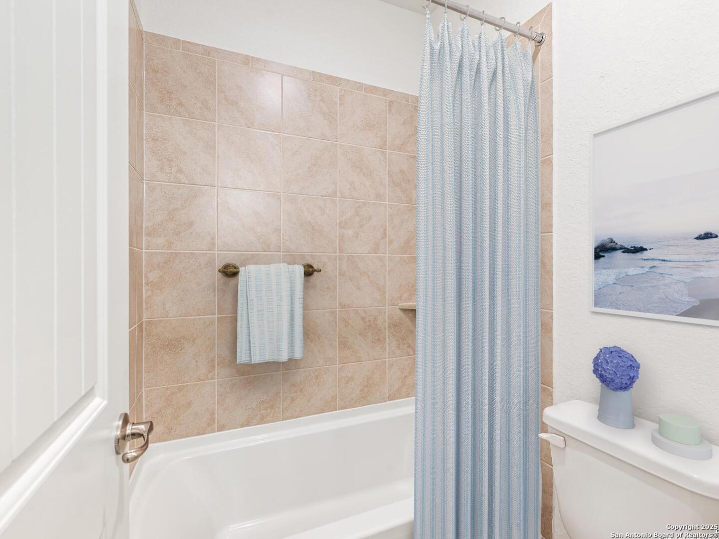 Enjoy an easy commute to San Antonio or the Medical Center while living just minutes from La Cantera, The Rim, downtown Boerne, and top-rated schools. This elegant 5-bedroom, 3.5-bath home sits on a quiet greenbelt in coveted Regent Park-and because it was occupied only briefly during a corporate relocation, it feels truly like new. A charming front porch and 8' solid wood door open to a bright foyer with wide plank floors. The main level offers a private study, formal dining, and a spacious living room with dramatic ceiling and stone fireplace. The gourmet kitchen features a large quartz island, upgraded marble backsplash, gas cooktop, stainless appliances, walk-in pantry, and casual dining overlooking the backyard. The first-floor primary suite provides a spa-like retreat with dual vanities, soaking tub, walk-in shower, and a generous closet. Upstairs, a large game room anchors four bedrooms-all with walk-in closets-and two full baths. A mudroom with built-ins and a spacious laundry room add everyday convenience. Outside, enjoy a covered patio, professional landscaping, a 6' privacy fence, and a full sprinkler system. Regent Park offers resort-style amenities including a sparkling pool, clubhouse with gym and event space, playground, and wide sidewalks. Move-in ready, lightly lived-in, and impeccably maintained, this nearly new home is a rare opportunity-and just in time for the holidays. Move in before the end of the year and make this exceptional property your best holiday gift yet.