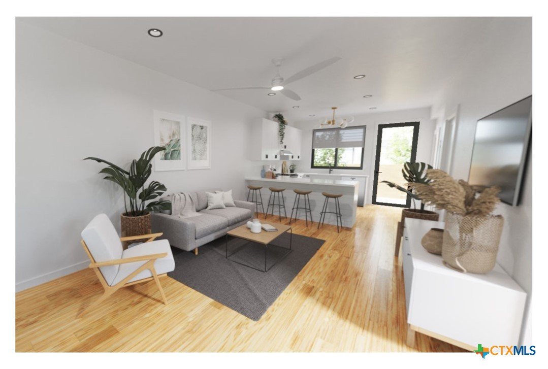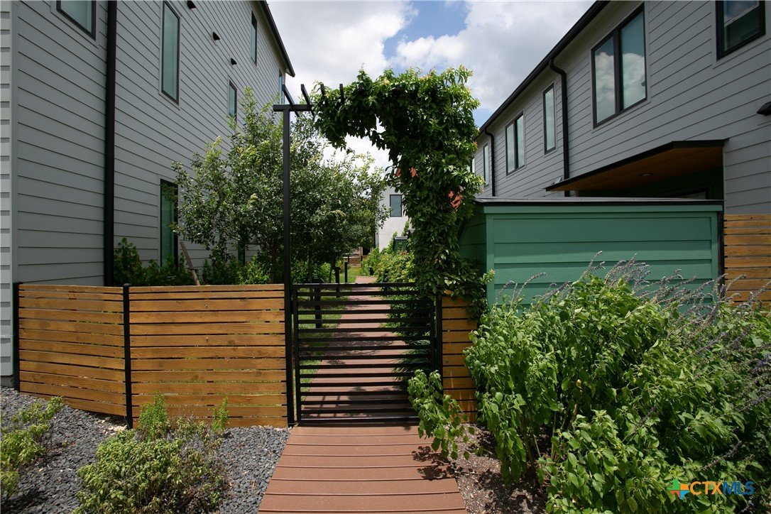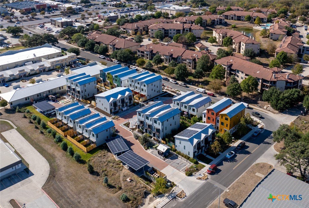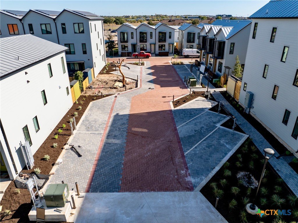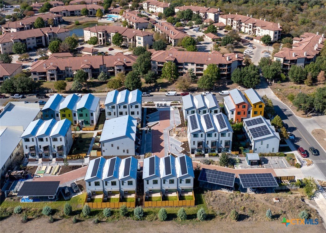 Lively Lane is a pocket neighborhood of contemporary townhomes located in the heart of San Marcos. Its convenient location makes it possible to own a new home in town and not miles away from the city center. High quality standard specifications and professionally managed condominium association support lock-and-leave convenience for a modern lifestyle. New homes completed in 2025 at Lively Lane are Energy Star®, EPA Indoor AirPlus, and Department of Energy Zero Energy Home Ready (ZERH) rated. The neighborhood is near a multitude of walkable services and even more essential destinations by bike. That means that sustainability comes standard, and - for those that want to do more - add-ons are available including solar packages, solar carport, and electric vehicle chargers. Other standard features include interior finishes like hardwood flooring, quartz kitchen and bath countertops, vaulted top floor ceilings, Daikin Smart Thermostats, GE and GE Profile appliances with induction range included, heat-pump air conditioning and water heaters, Pella casement windows, advanced framing techniques, native landscaping, a permeable paver system, and so much more. Lively Lane has also partnered with a neighborhood exclusive carshare service, available to residents and guests. The Clever Townhome is a sensible home designed to provide for daily necessities in a cozy two-floor layout suitable for an individual, couple, or small family. Living and kitchen activities situate downstairs away from the quiet of the bedrooms above. Vaulted ceilings and a main bedroom balcony open up the second floor; and a full bath maximizes functionality with a separate toilet closet and integrated washer/dryer. A welcoming entry planter and rear patio create opportunities to test your green thumb and relax outdoors. 102 and 104 Lively Lane models include a larger private, fenced rear garden. Dreaming of this townhome? Aren’t you Clever.