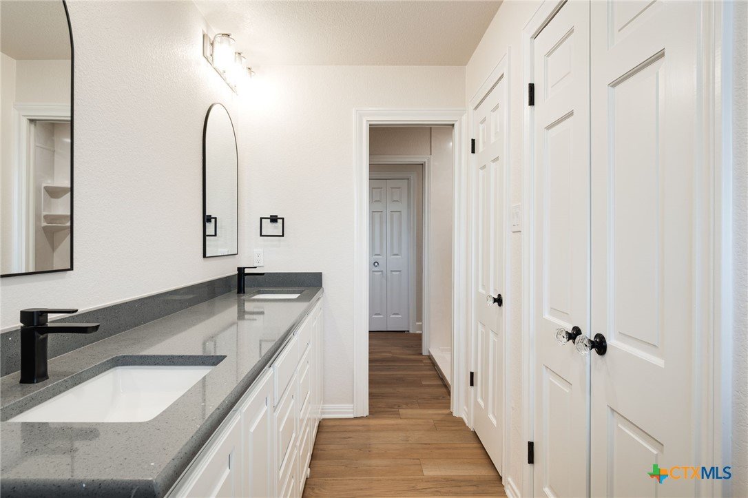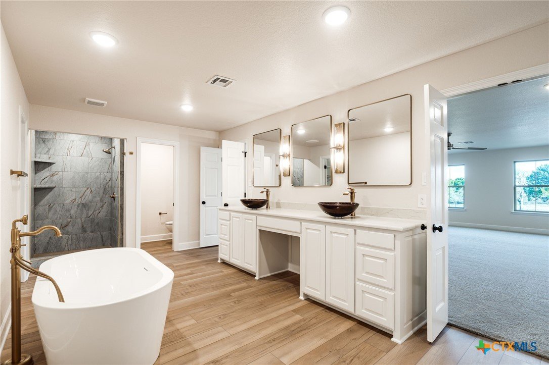 Exquisite Estate on Over 5 Acres where Modern Luxury Meets Stately Elegance. Step into timeless sophistication in this stunning home, perfectly blending modern updates with classic elegance. Situated on more than 5 acres, this 6,000+ sf home exudes character and luxury at every turn. The main level features formal living and dining rooms, a large family room/den with fireplace, and a modern kitchen with breakfast area designed for both function and style. A full bath and powder room are also on the main floor, alongside a spacious full-sized laundry room with sink and ample cabinetry. The home boasts two primary suites, including a grand downstairs primary with separate dressing areas, closets and vanities, shower and tub/shower, private access to both front and back yards, coffered wall accents and an adjoining game room/office. Upstairs, the second primary suite impresses with dual closets, separate tub and shower, dual vanities, and balcony access. A main guest suite with full bath and two additional guest rooms sharing a full bath ensure comfort for family and visitors alike. Throughout the home, enjoy luxury vinyl plank and plush carpet flooring, fresh paint, updated lighting, modern fixtures, and stainless appliances. Car enthusiasts and hobbyists will appreciate the 3-car attached garage with storage and exterior access, plus a detached 2-door garage offering additional storage. Outdoors, the property is fully fenced, including a cross-fenced area in back. Don’t miss this rare opportunity to own a piece of Gatesville history while enjoying all the modern comforts of a meticulously updated luxury estate. Located just 30 minutes from the I35 corridor, this is a must see home!