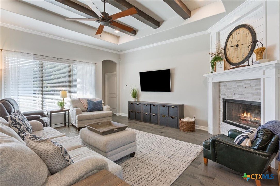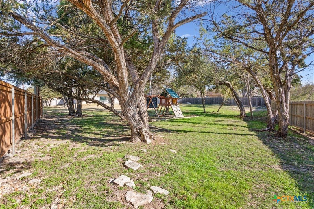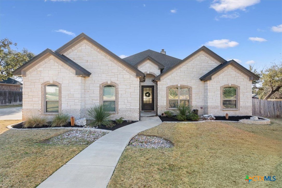 Beautifully maintained 4-bedroom, 2.5-bath home with a 3-car garage located in the desirable Rancho Del Lago subdivision near Lake Belton and within Lake Belton ISD. Situated on a spacious 0.60-acre oversized lot, this home offers 2,246 square feet of thoughtfully designed living space with a stunning stone and brick exterior and mature landscaping. Inside, the inviting living area features beamed ceilings, abundant natural light, and a wood-burning fireplace, creating a warm and welcoming centerpiece for everyday living and entertaining. The spacious kitchen provides ample cabinetry, generous counter space, and an open layout that flows seamlessly into the dining and living areas. The private primary suite offers a relaxing retreat, while the functional split-bedroom floorplan provides comfort and privacy for family and guests. Additional highlights include the large backyard, covered patio, and plenty of space for outdoor entertaining or a future pool. Located just minutes from Lake Belton, Belton, and Temple with convenient access to I-35, this property offers the perfect balance of quiet neighborhood living with close proximity to shopping, dining, and recreation. Schedule your private showing today.