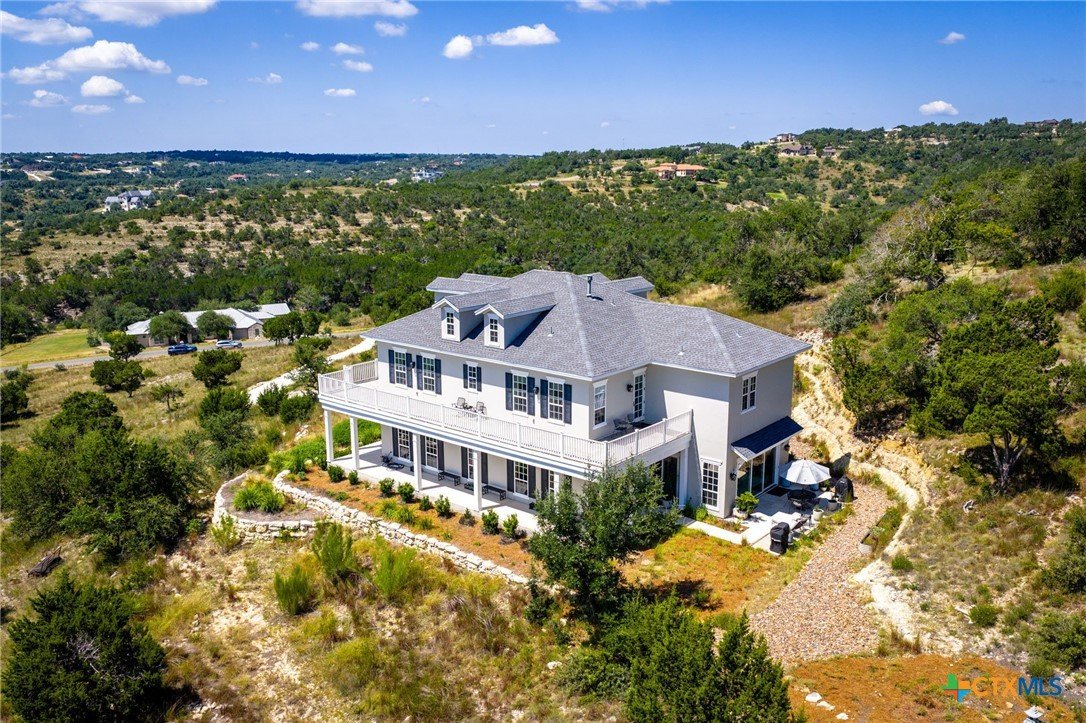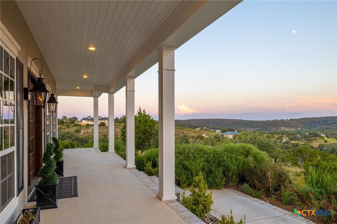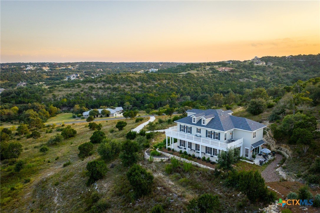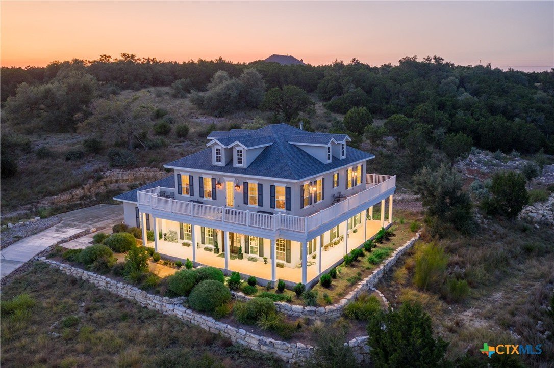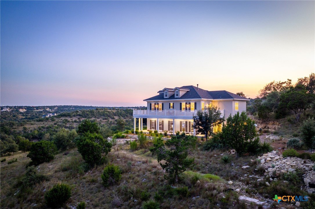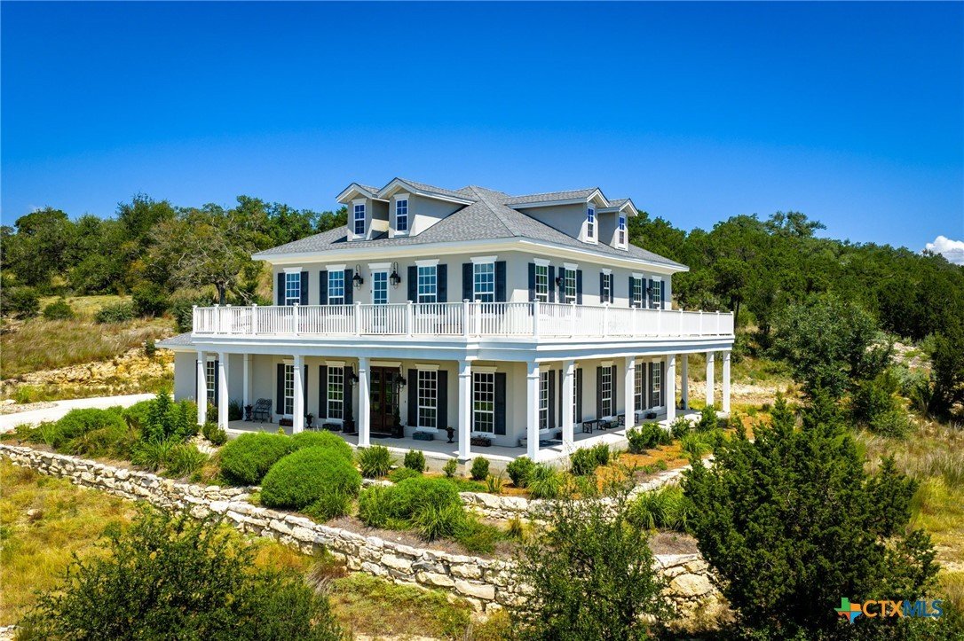 Southern Charm Meets Hill Country Luxury Privately nestled at the end of a cul-de-sac on approximately 11 acres in the exclusive gated community of Waggener Ranch—home to roaming exotic wildlife—this Southern Traditional estate captures the elegance of New Orleans architecture with a backdrop of breathtaking Hill Country views. Mahogany French doors, gas lanterns, and wraparound porches on both levels create an inviting first impression. Inside, soaring ceilings, rich hardwood floors, and custom craftsmanship set the stage for refined everyday living and effortless entertaining. The thoughtfully designed floor plan includes a gourmet kitchen with granite countertops and high-end appliances, a cozy den with a hand-carved mantel, a stunning sunroom, and a brick-accented wine room. The hall closet is pre-wired for a future elevator installation, offering the option to easily add an elevator if desired. The spacious primary suite boasts dual bathrooms, expansive closets, a coffee bar, and private balcony access. Two additional guest suites each feature en-suite baths and walk-in closets. The surrounding grounds are beautifully landscaped for both style and simplicity, with an automated irrigation system and native plantings that offer beauty without the burden—making outdoor upkeep refreshingly low-maintenance. Energy-efficient construction, custom audio system throughout the home, and smart storage solutions round out this one-of-a-kind property—where charm, comfort, and natural beauty come together seamlessly.