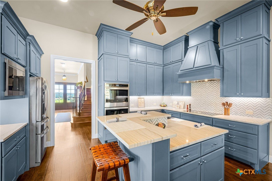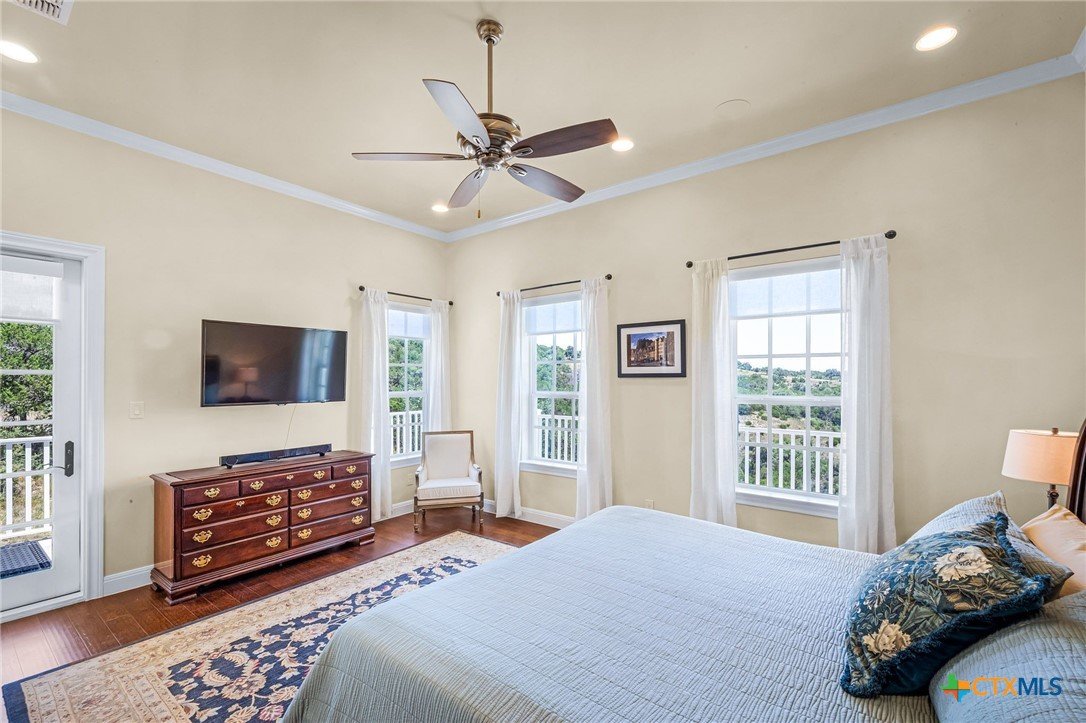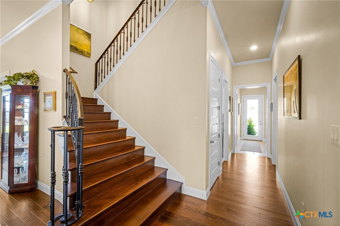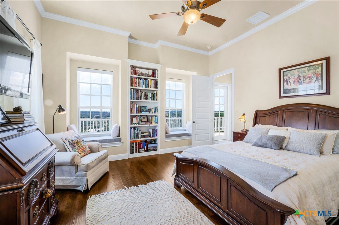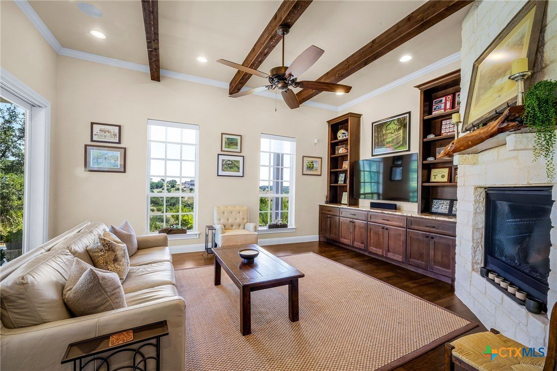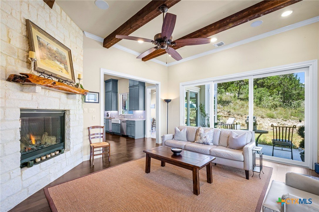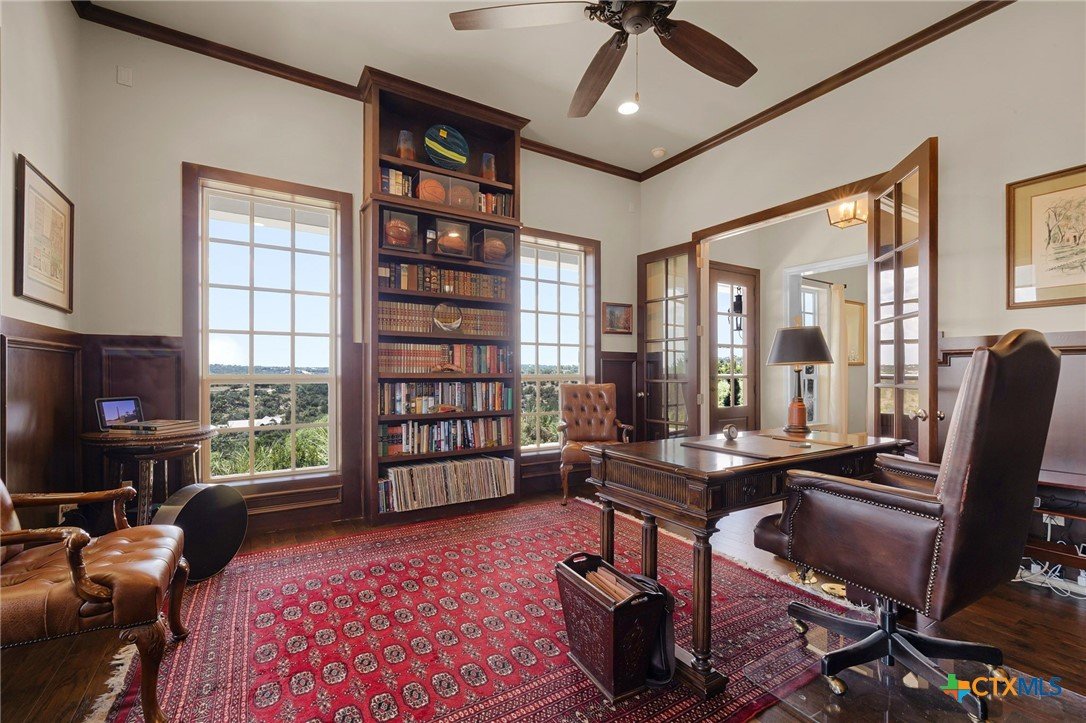 Southern Charm Meets Hill Country Luxury Privately nestled at the end of a cul-de-sac on approximately 11 acres in the exclusive gated community of Waggener Ranch—home to roaming exotic wildlife—this Southern Traditional estate captures the elegance of New Orleans architecture with a backdrop of breathtaking Hill Country views. Mahogany French doors, gas lanterns, and wraparound porches on both levels create an inviting first impression. Inside, soaring ceilings, rich hardwood floors, and custom craftsmanship set the stage for refined everyday living and effortless entertaining. The thoughtfully designed floor plan includes a gourmet kitchen with granite countertops and high-end appliances, a cozy den with a hand-carved mantel, a stunning sunroom, and a brick-accented wine room. The hall closet is pre-wired for a future elevator installation, offering the option to easily add an elevator if desired. The spacious primary suite boasts dual bathrooms, expansive closets, a coffee bar, and private balcony access. Two additional guest suites each feature en-suite baths and walk-in closets. The surrounding grounds are beautifully landscaped for both style and simplicity, with an automated irrigation system and native plantings that offer beauty without the burden—making outdoor upkeep refreshingly low-maintenance. Energy-efficient construction, custom audio system throughout the home, and smart storage solutions round out this one-of-a-kind property—where charm, comfort, and natural beauty come together seamlessly.