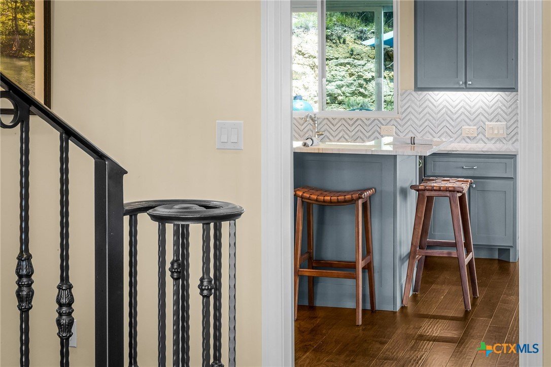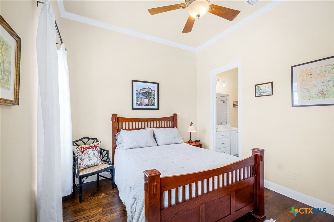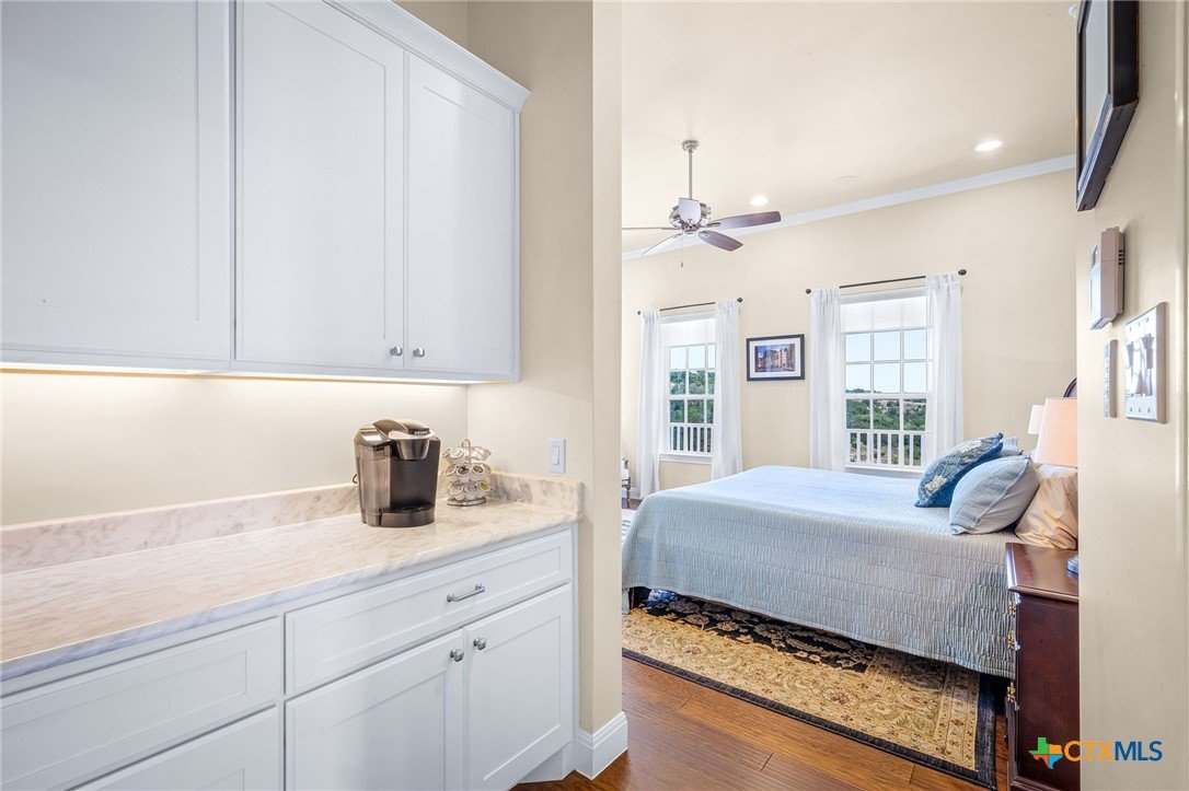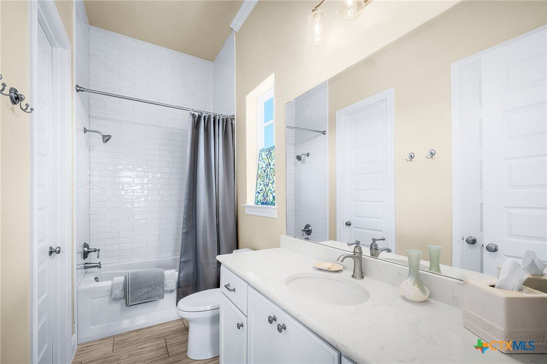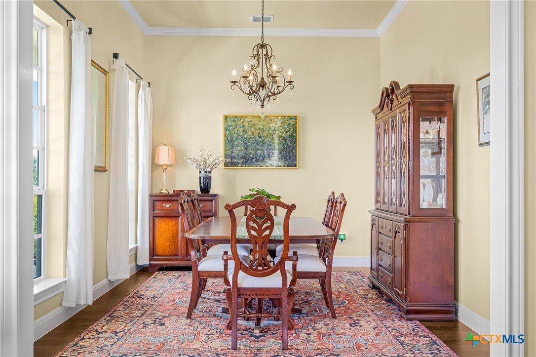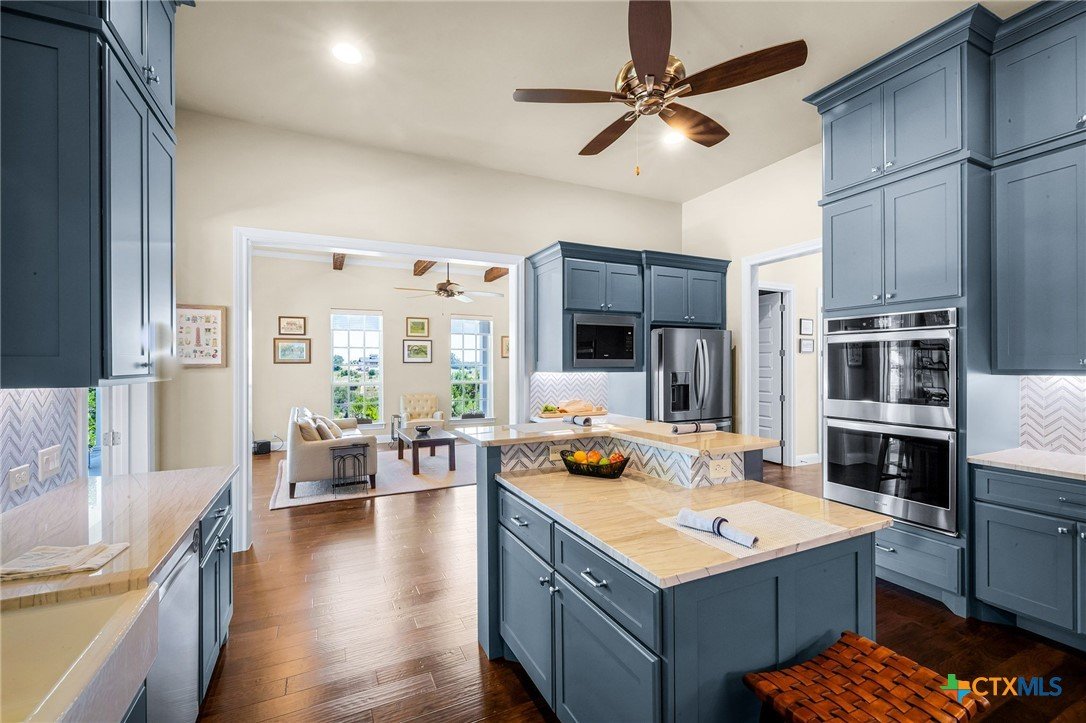 Southern Charm Meets Hill Country Luxury Privately nestled at the end of a cul-de-sac on approximately 11 acres in the exclusive gated community of Waggener Ranch—home to roaming exotic wildlife—this Southern Traditional estate captures the elegance of New Orleans architecture with a backdrop of breathtaking Hill Country views. Mahogany French doors, gas lanterns, and wraparound porches on both levels create an inviting first impression. Inside, soaring ceilings, rich hardwood floors, and custom craftsmanship set the stage for refined everyday living and effortless entertaining. The thoughtfully designed floor plan includes a gourmet kitchen with granite countertops and high-end appliances, a cozy den with a hand-carved mantel, a stunning sunroom, and a brick-accented wine room. The hall closet is pre-wired for a future elevator installation, offering the option to easily add an elevator if desired. The spacious primary suite boasts dual bathrooms, expansive closets, a coffee bar, and private balcony access. Two additional guest suites each feature en-suite baths and walk-in closets. The surrounding grounds are beautifully landscaped for both style and simplicity, with an automated irrigation system and native plantings that offer beauty without the burden—making outdoor upkeep refreshingly low-maintenance. Energy-efficient construction, custom audio system throughout the home, and smart storage solutions round out this one-of-a-kind property—where charm, comfort, and natural beauty come together seamlessly.