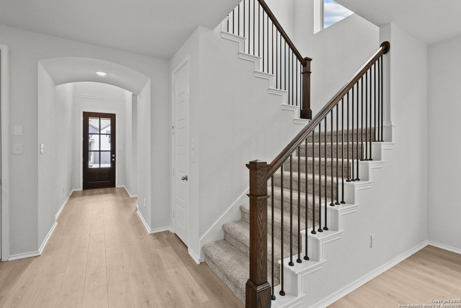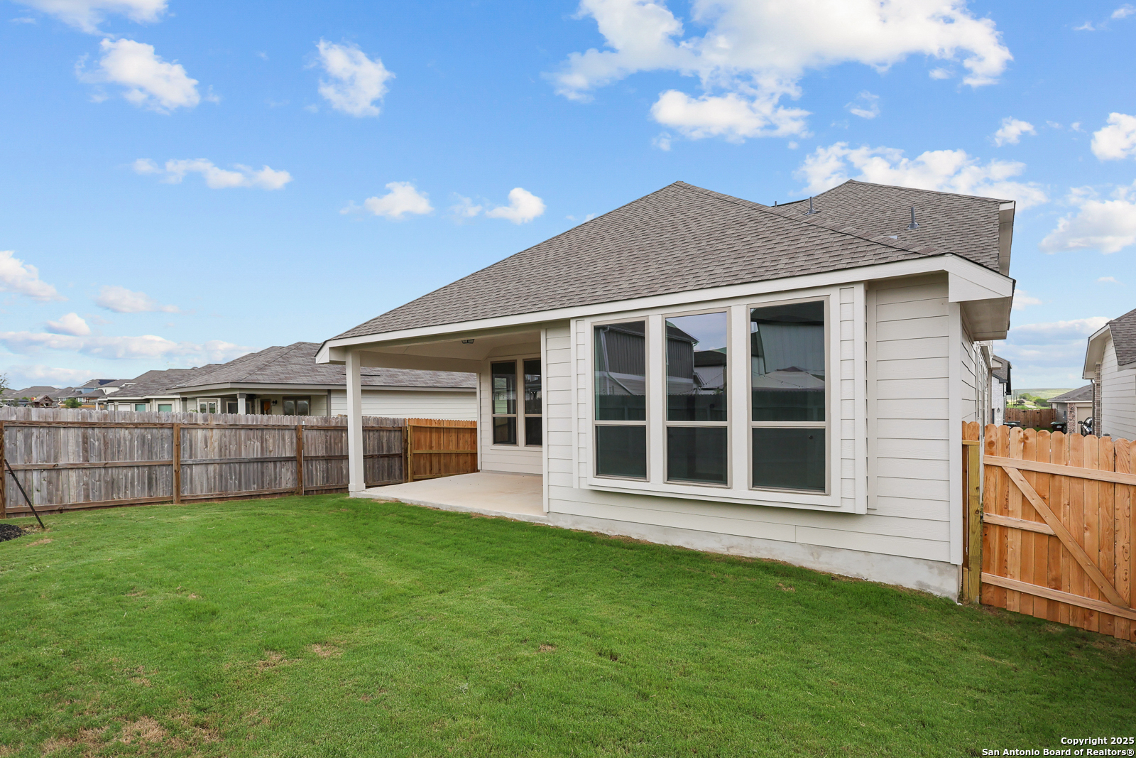This elegant two-story Milano floorplan boasts a grand entrance, separate dining and living areas, and a spacious 2nd floor game room. The open-concept great room seamlessly connects to a gourmet kitchen featuring omega stone countertops, a spacious island, 42-inch cabinets, and built-in Whirlpool appliances. The master is on the main floor and has double walk-in closets. A conveniently located secondary bedroom sits at the front, while the Texas-sized covered patio provides the perfect setting for outdoor gatherings. Plus, enjoy easy access to the community pool. Schedule your visit today! This home is now 100% complete and move-in ready!