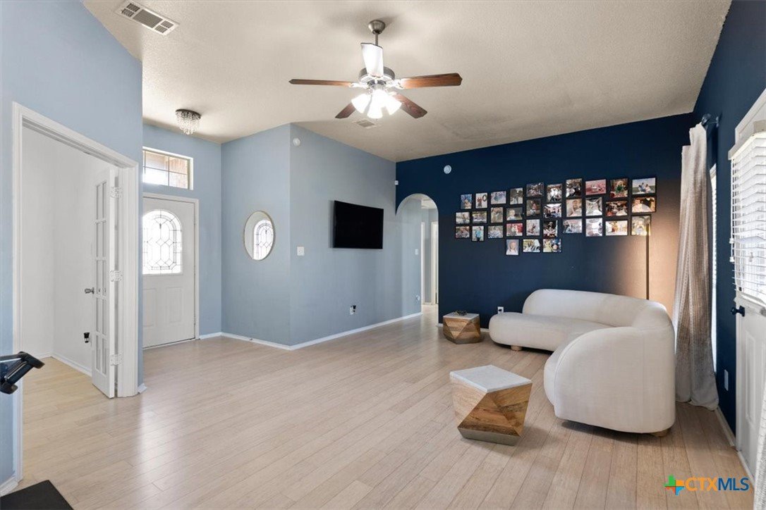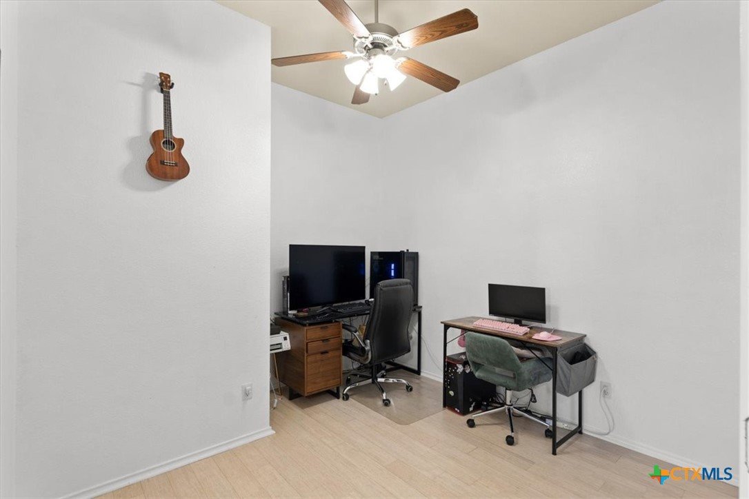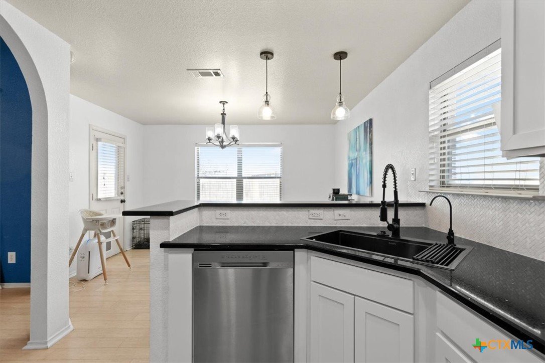 This beautiful home features 3 bedrooms plus a study, 2 full bathrooms and located on a quiet cul de sac! Enjoy the outdoors with an oversized backyard and covered back patio. This home has been thoughtfully updated with its trendy kitchen featuring black granite countertops, engineered hardwood throughout the main areas, and a very stylish new master bathroom!! All appliances convey with this gorgeous home, making your move in super easy! You have the option to assume this VA assumable loan with a 2.875% rate!! Asking listing agent for details!