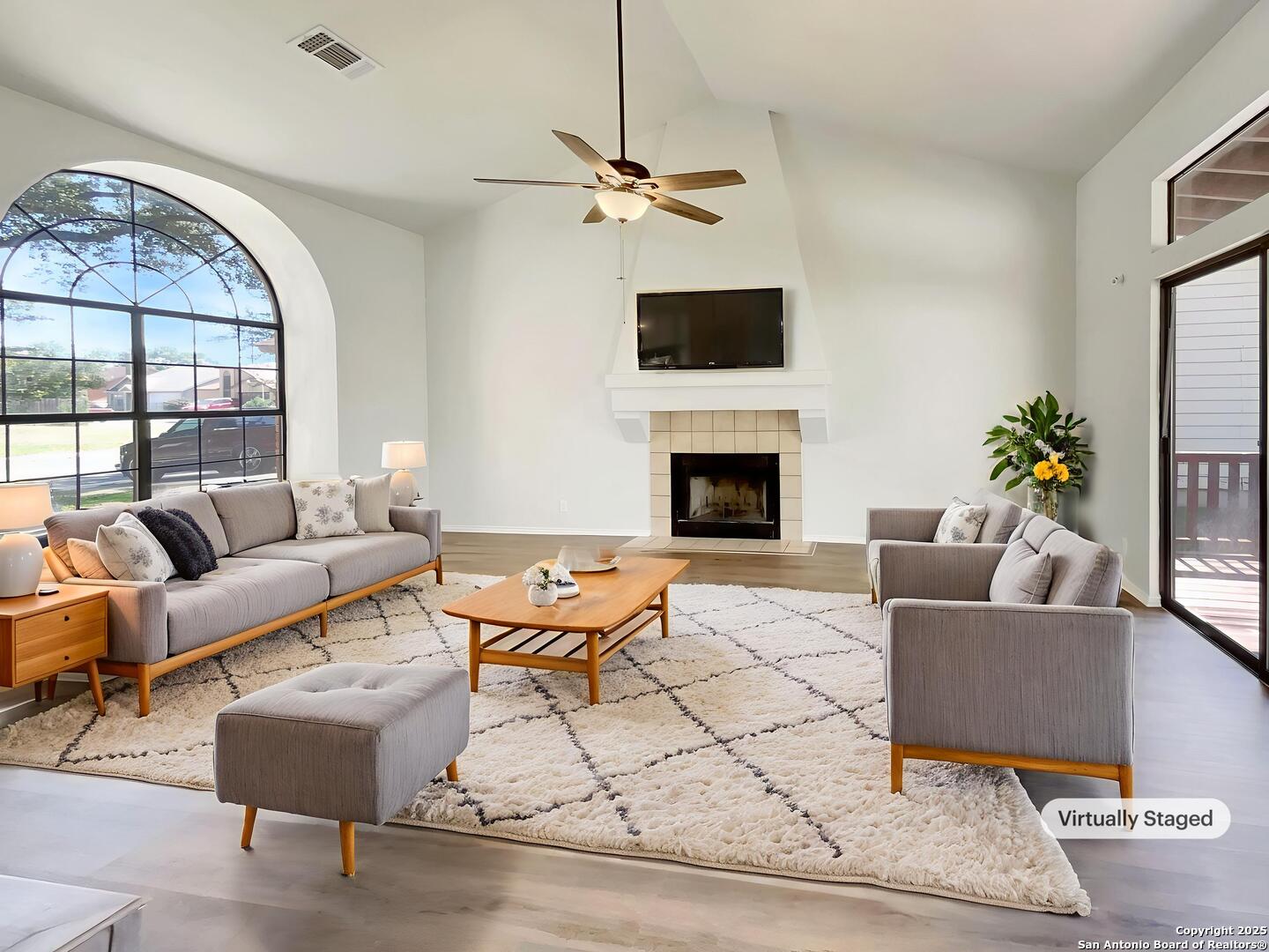 Your dream home is waiting for you! This home has Fresh Interior Paint, New flooring throughout the home. A fireplace and a soft neutral color palette create a solid blank canvas for the living area. Relax in your primary suite with a walk in closet included. The primary bathroom features plenty of under sink storage waiting for your home organization needs. Take it easy in the fenced in back yard. The covered sitting area makes it great for BBQs! A must see! This home has been virtually staged to illustrate its potential. 100-Day Home Warranty coverage available at closing
