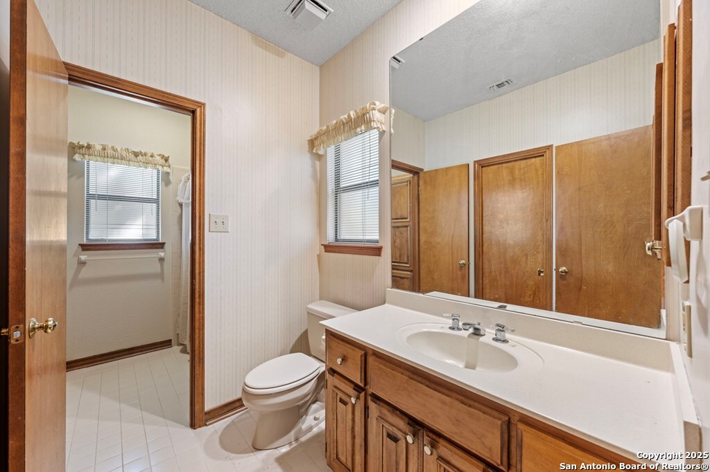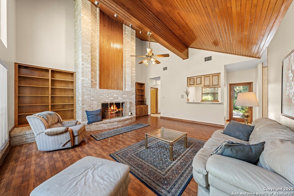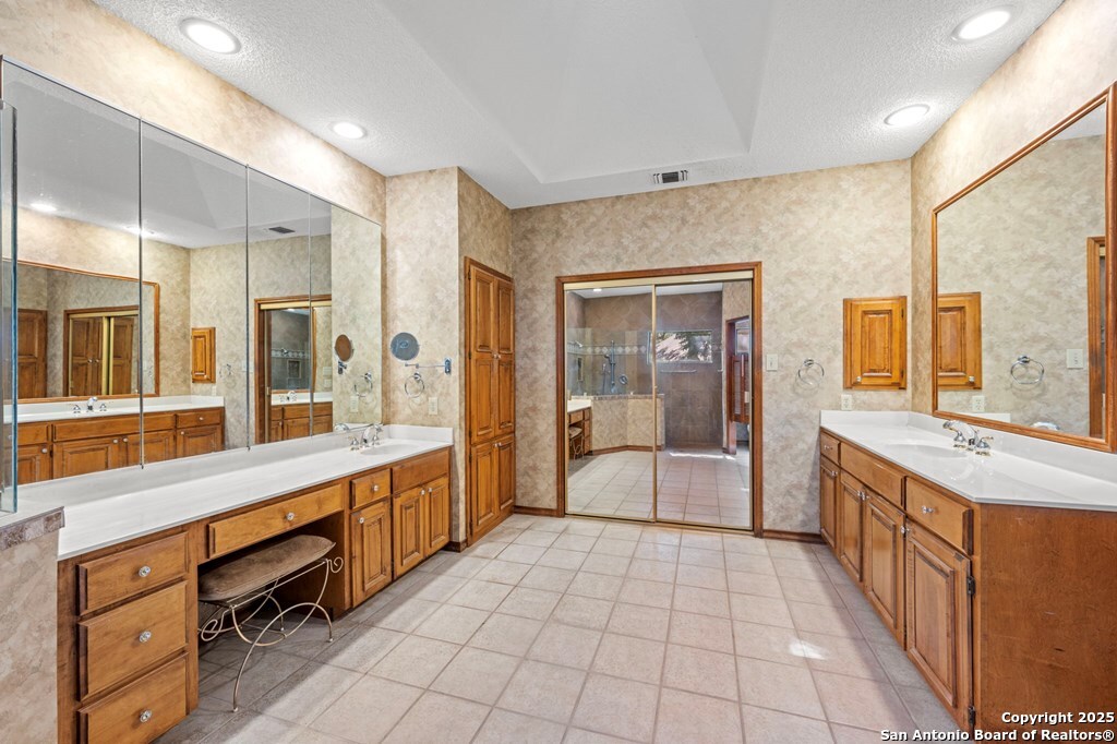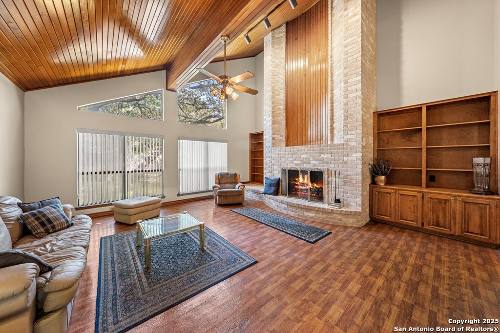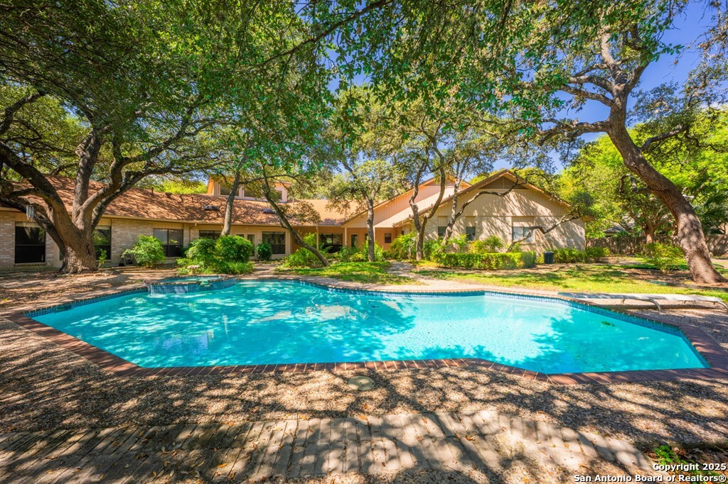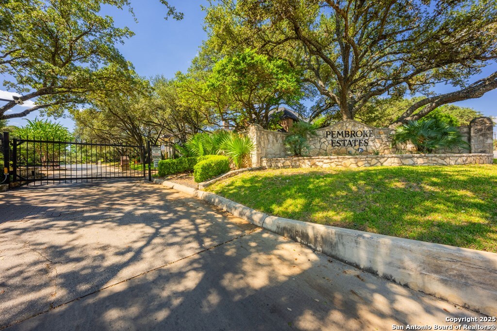 Beautifully appointed 4-bedroom, 3.5 bath residence located in the highly desirable & gated Pembroke Estates off Babcock Rd. Nestled on a quiet cul-de-sac, this home offers exceptional privacy on a mature oak tree-filled lot with a manicured lawn. The lovely entry opens to an elegant foyer, a spacious formal living room with soaring ceilings & a fireplace, along with a formal dining area. An added plus is the large sunroom off the living room. Expansive kitchen & breakfast area flows into a second living area, featuring a stunning floor-to-ceiling fireplace, custom built-ins, & a wet bar. A conveniently located half bath & laundry room sit just off the den. The primary suite & study with built-ins & desk are thoughtfully separated from the other bedrooms for privacy. The primary suite boasts a huge walk-in closet, a luxurious bath with separate vanities, & large walk-in shower. Additional highlights include a 3-car garage, covered back porch & the beautifully landscaped backyard retreat, complete with an in-ground pool/hot tub-perfect for relaxing or entertaining. This exceptional property is ready to welcome its new owners, so come & take a look. Schedule your private tour today.