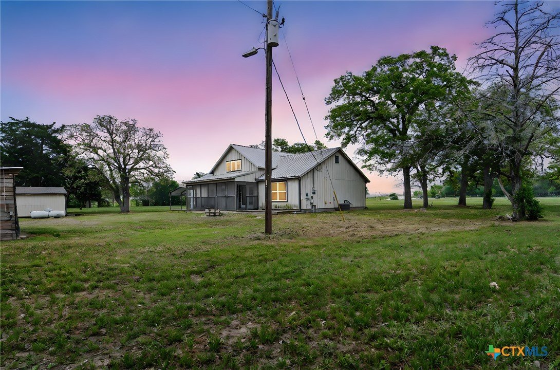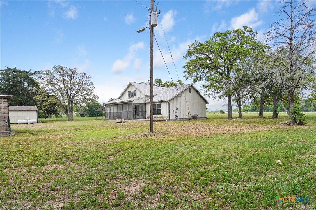Only 1 mile from Giddings High School is this custom built farmhouse offering 3 bedrooms, 2 bathrooms and an open concept kitchen, living and dining area with vaulted ceilings and a double sided, gas-log fireplace. This home is situated in the back corner of a 2.493 acre lot with the possibility to purchase the adjoining 2.493 acres for a total of 5 acres. The split floor plan offers privacy for the master bedroom and features a gas-log fireplace, vaulted ceiling, en-suite bathroom, expansive walk-in closet and a separate entrance. New owners will appreciate the functionality of the utility room, the 2-car carport, 2 outbuildings and a screened-in back patio. The scattered hardwood trees and circular driveway are an added benefit to this close-to-town country retreat!