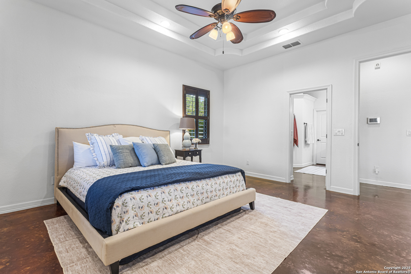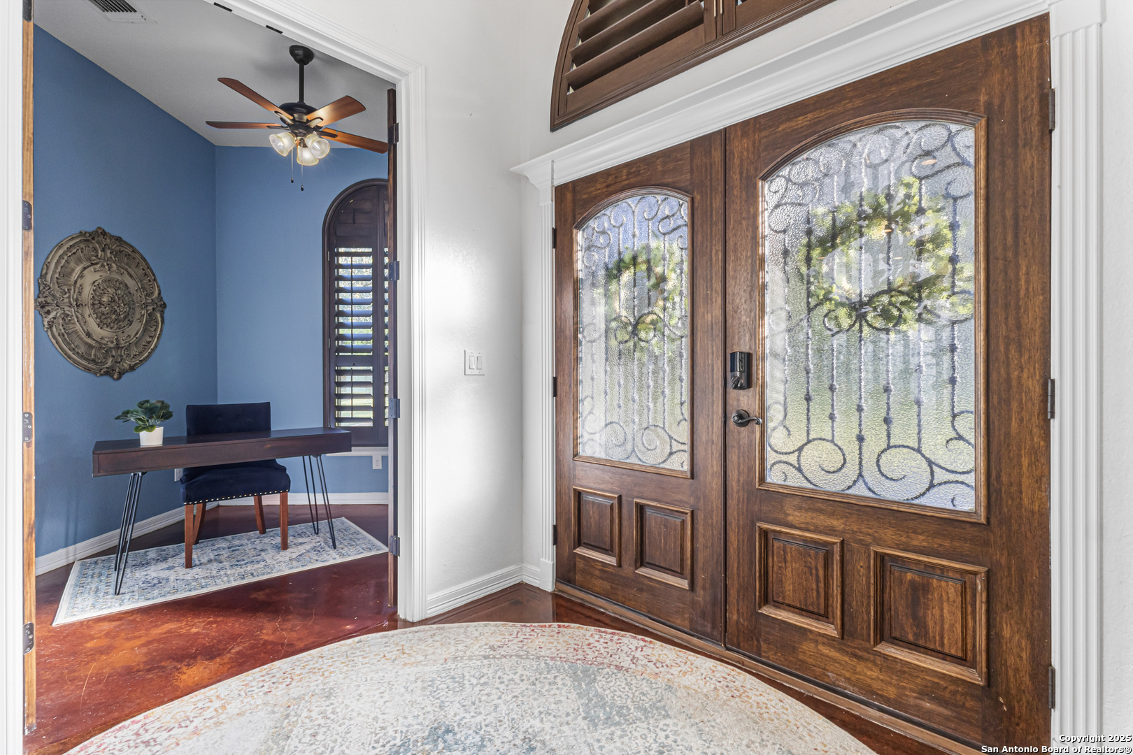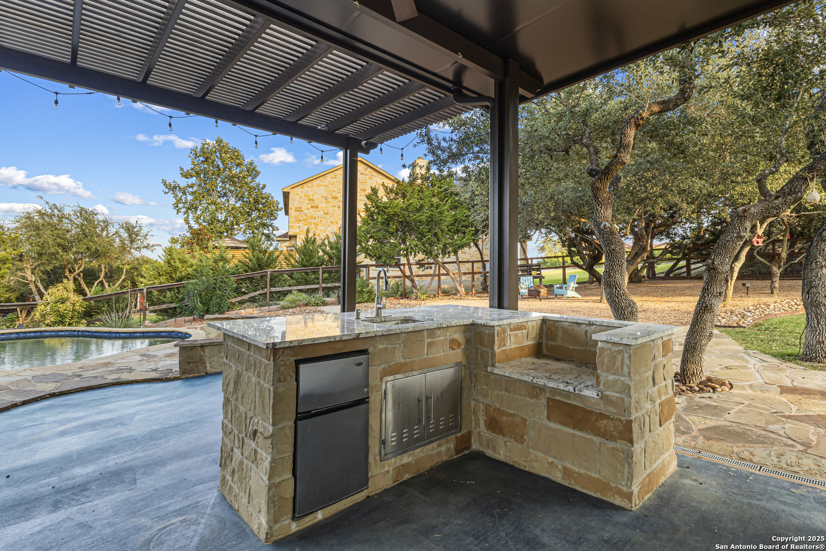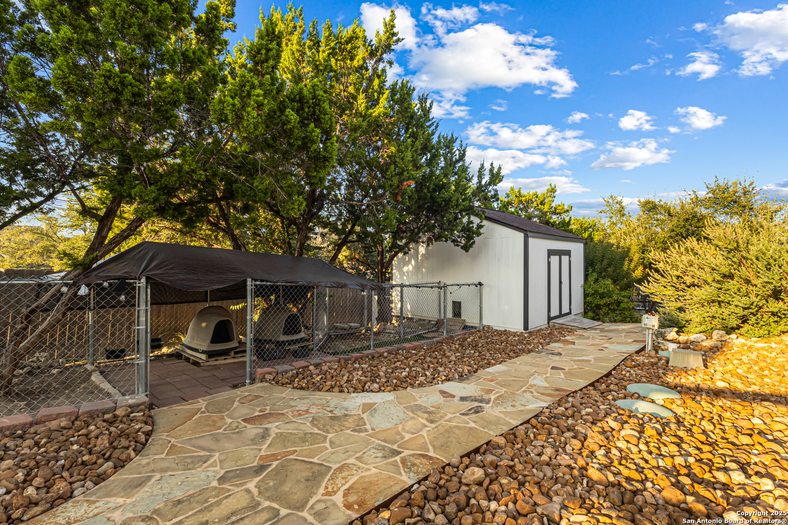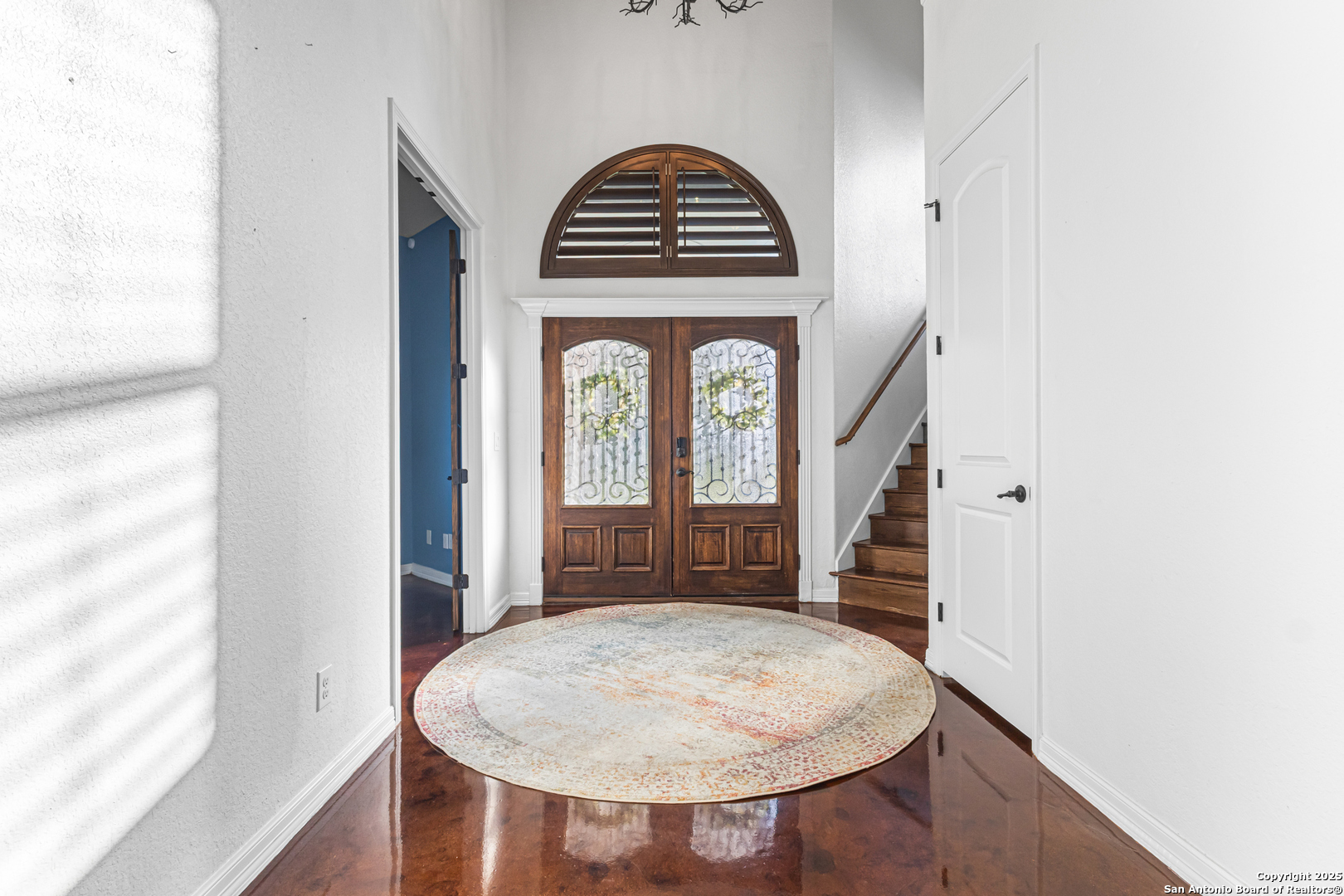 **OPEN TODAY 1-3 pm! 3 Homes open in Timberwood Park and 3 drawings for prizes! See host for details!** Step inside this beautifully designed home where style meets functionality at every turn. Stained concrete floors flow seamlessly throughout the downstairs, offering a modern aesthetic and effortless, low-maintenance living that extends into the thoughtfully xeriscaped outdoor spaces. The main level features a serene primary suite complete with a private bathroom boasting double vanities, a walk-in shower, and a spacious closet. Upstairs, you'll find three additional bedrooms, a full bathroom, a game room, and a convenient built-in desk perfect for work or study. Designed for both comfort and entertainment, the home's inviting atmosphere continues outdoors, where a 40x30 covered patio overlooks a sparkling Keith Zars swimming pool with a mesmerizing waterfall feature. The ability to hear the pool allows for year round enjoyment! The outdoor kitchen makes hosting gatherings a dream, while the versatile storage shed complete with a chandelier can serve as a chic she shed, an upscale workshop, or a shaded retreat for pets thanks to the adjacent dog run. Even the garage is an extension of the home's thoughtful design, equipped with air conditioning via a mini-split unit, and a mounted TV for year round enjoyment. Bring your boat, RV, or car collection as there is parking for as many as seven vehicles! You need to see this home in person to appreciate all of the amenities and privacy! Schedule your private showing today to experience this stunning property in person!