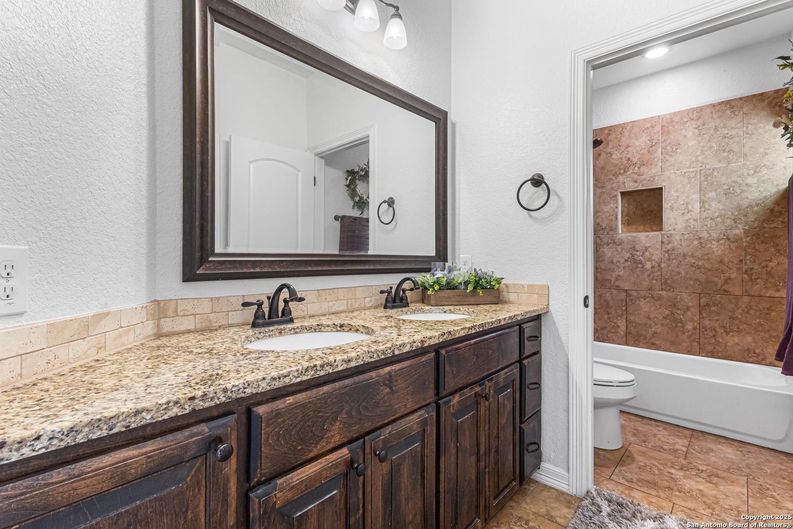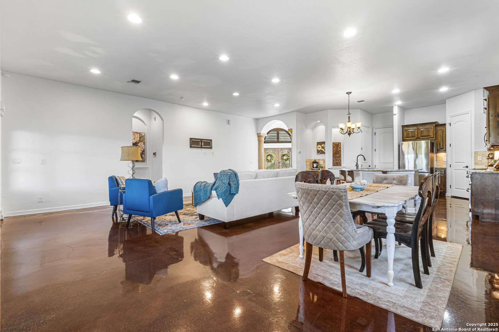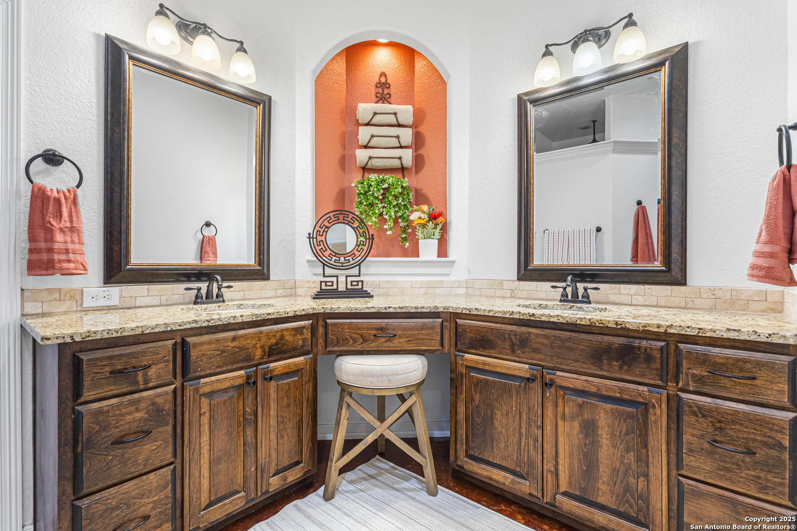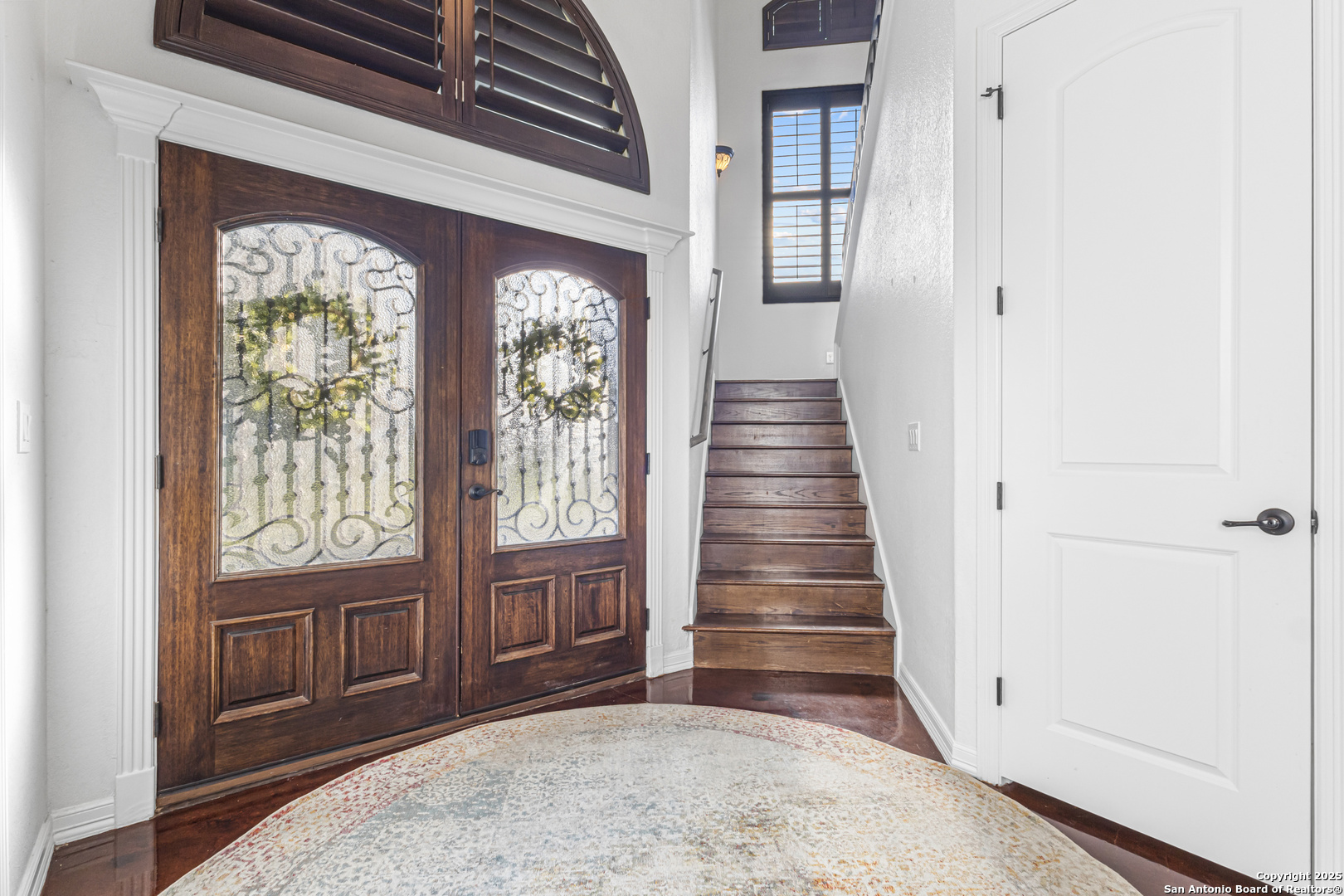**OPEN TODAY 1-3 pm! 3 Homes open in Timberwood Park and 3 drawings for prizes! See host for details!** Step inside this beautifully designed home where style meets functionality at every turn. Stained concrete floors flow seamlessly throughout the downstairs, offering a modern aesthetic and effortless, low-maintenance living that extends into the thoughtfully xeriscaped outdoor spaces. The main level features a serene primary suite complete with a private bathroom boasting double vanities, a walk-in shower, and a spacious closet. Upstairs, you'll find three additional bedrooms, a full bathroom, a game room, and a convenient built-in desk perfect for work or study. Designed for both comfort and entertainment, the home's inviting atmosphere continues outdoors, where a 40x30 covered patio overlooks a sparkling Keith Zars swimming pool with a mesmerizing waterfall feature. The ability to hear the pool allows for year round enjoyment! The outdoor kitchen makes hosting gatherings a dream, while the versatile storage shed complete with a chandelier can serve as a chic she shed, an upscale workshop, or a shaded retreat for pets thanks to the adjacent dog run. Even the garage is an extension of the home's thoughtful design, equipped with air conditioning via a mini-split unit, and a mounted TV for year round enjoyment. Bring your boat, RV, or car collection as there is parking for as many as seven vehicles! You need to see this home in person to appreciate all of the amenities and privacy! Schedule your private showing today to experience this stunning property in person!