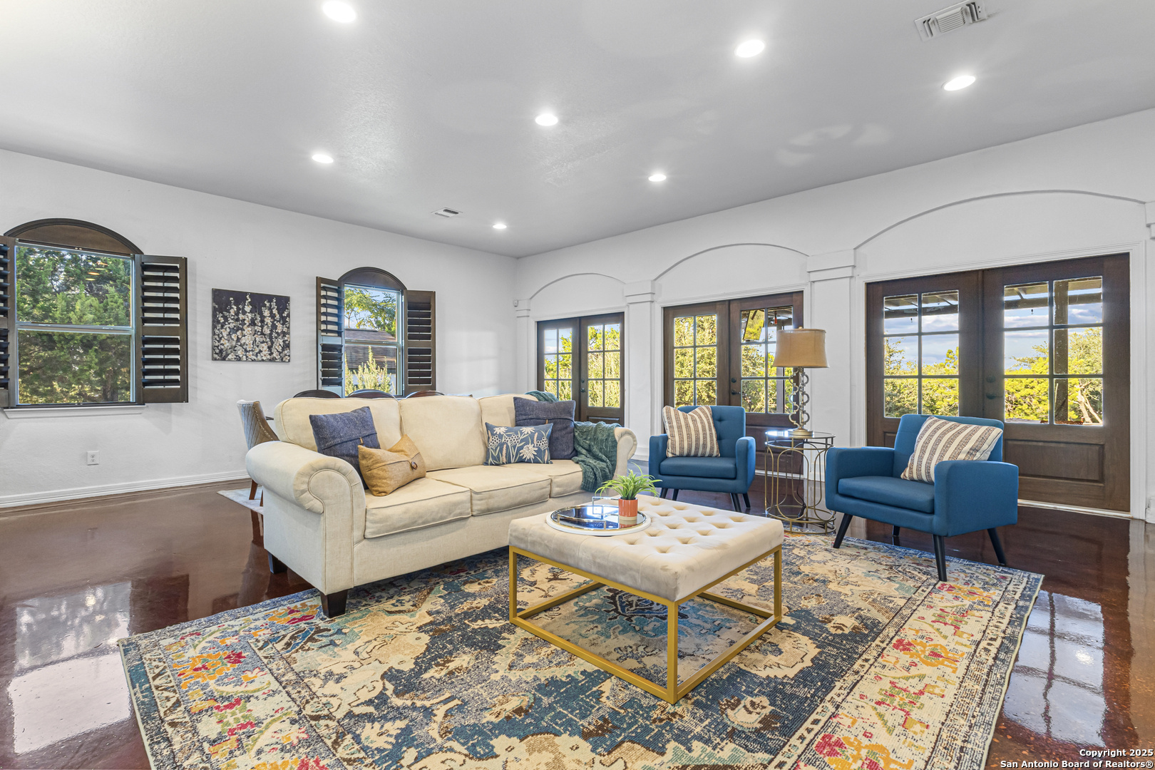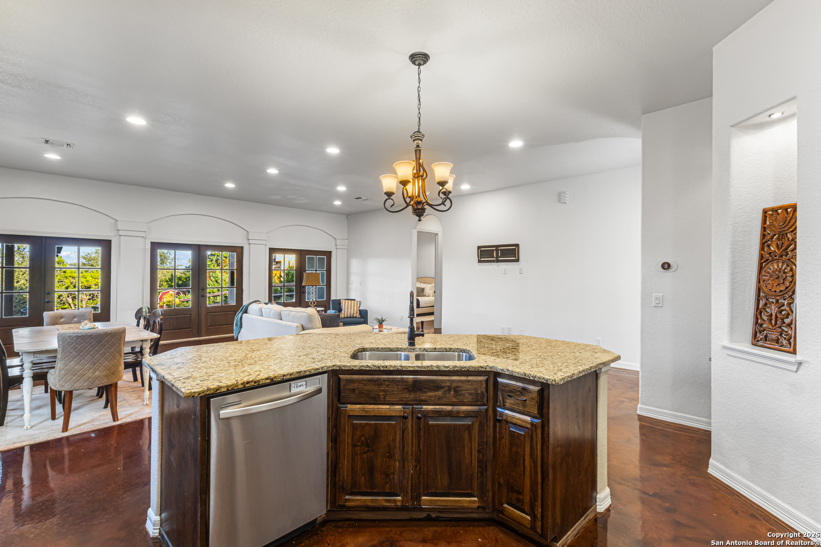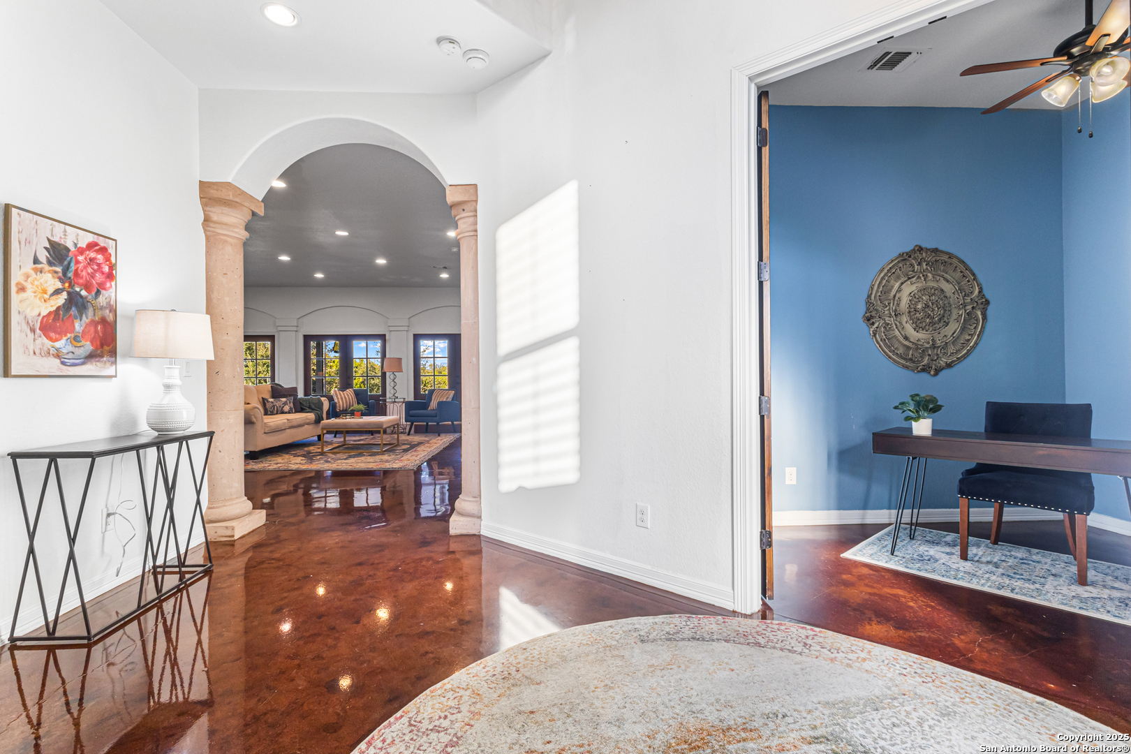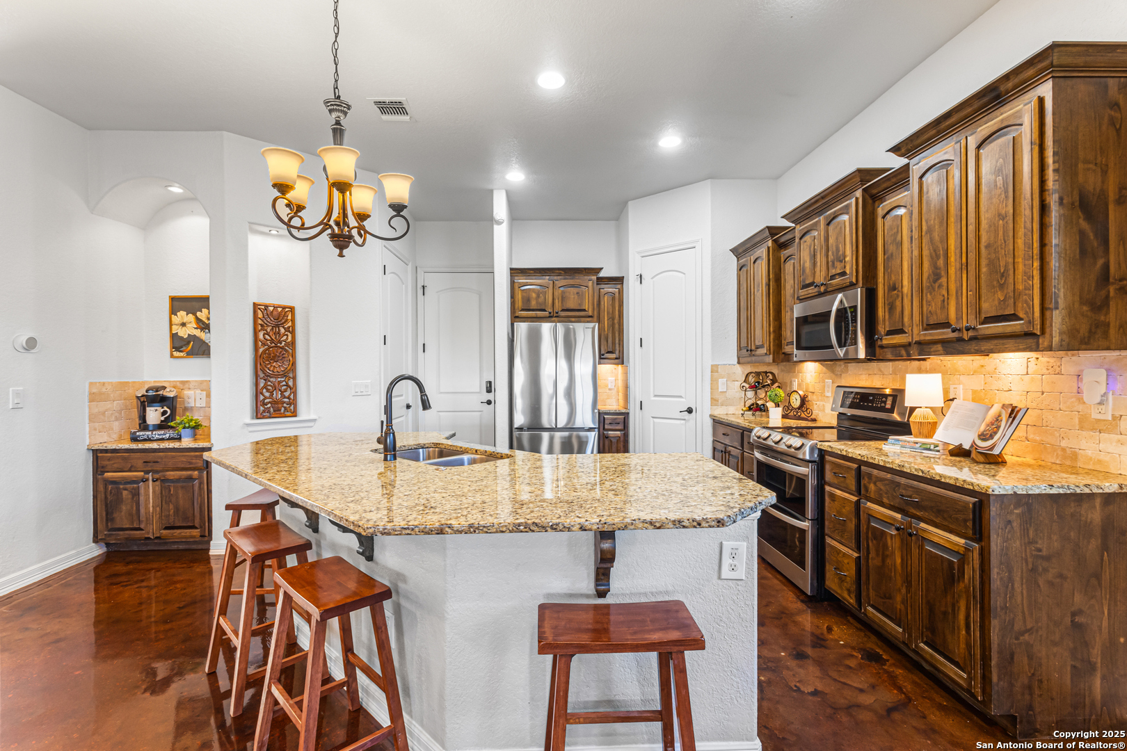 **OPEN TODAY 1-3 pm! 3 Homes open in Timberwood Park and 3 drawings for prizes! See host for details!** Step inside this beautifully designed home where style meets functionality at every turn. Stained concrete floors flow seamlessly throughout the downstairs, offering a modern aesthetic and effortless, low-maintenance living that extends into the thoughtfully xeriscaped outdoor spaces. The main level features a serene primary suite complete with a private bathroom boasting double vanities, a walk-in shower, and a spacious closet. Upstairs, you'll find three additional bedrooms, a full bathroom, a game room, and a convenient built-in desk perfect for work or study. Designed for both comfort and entertainment, the home's inviting atmosphere continues outdoors, where a 40x30 covered patio overlooks a sparkling Keith Zars swimming pool with a mesmerizing waterfall feature. The ability to hear the pool allows for year round enjoyment! The outdoor kitchen makes hosting gatherings a dream, while the versatile storage shed complete with a chandelier can serve as a chic she shed, an upscale workshop, or a shaded retreat for pets thanks to the adjacent dog run. Even the garage is an extension of the home's thoughtful design, equipped with air conditioning via a mini-split unit, and a mounted TV for year round enjoyment. Bring your boat, RV, or car collection as there is parking for as many as seven vehicles! You need to see this home in person to appreciate all of the amenities and privacy! Schedule your private showing today to experience this stunning property in person!
