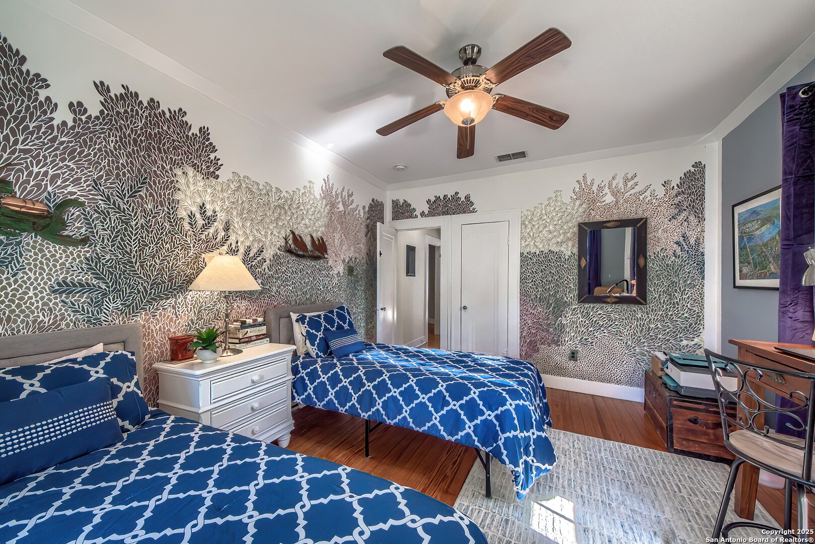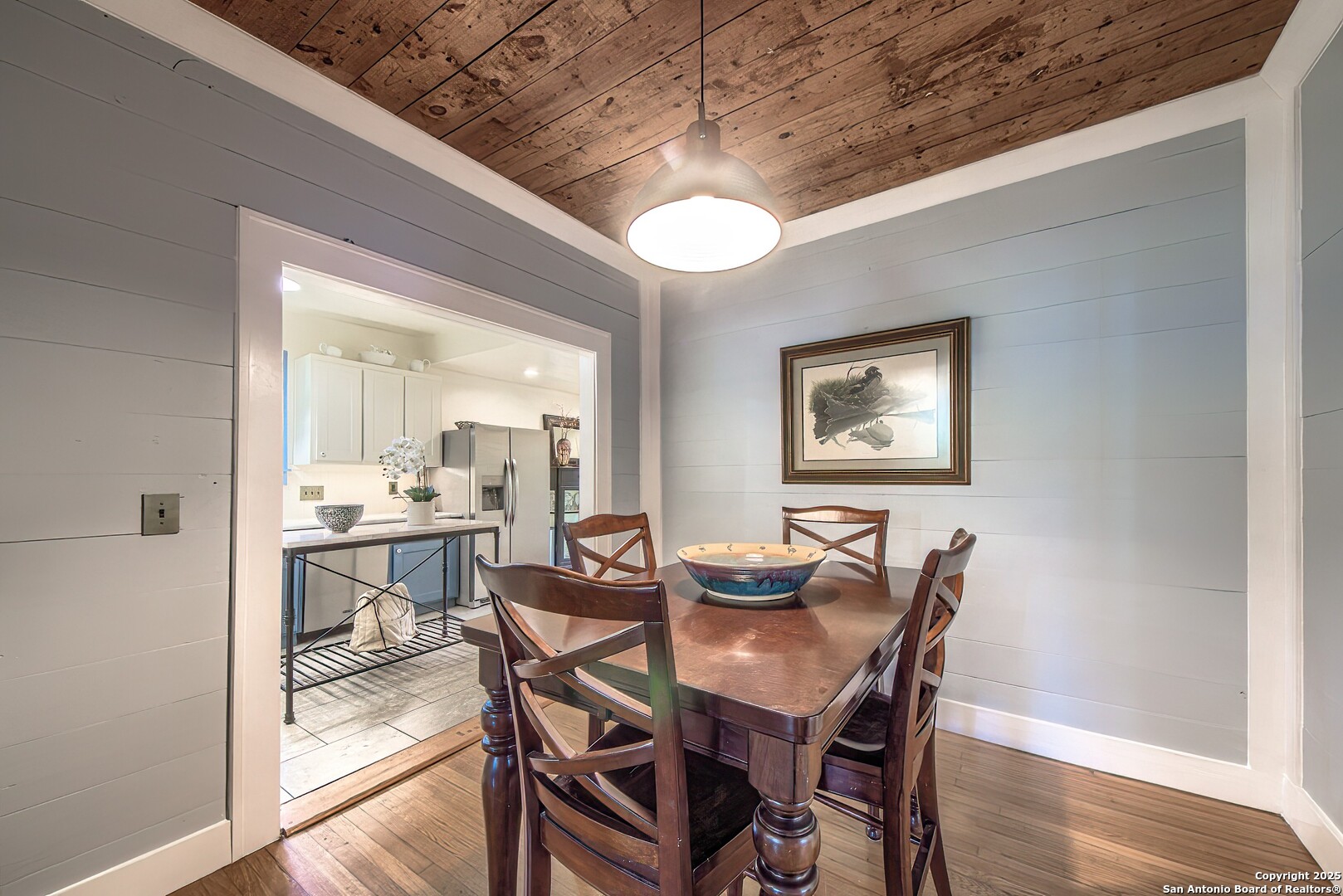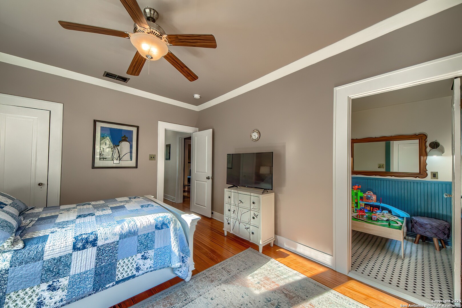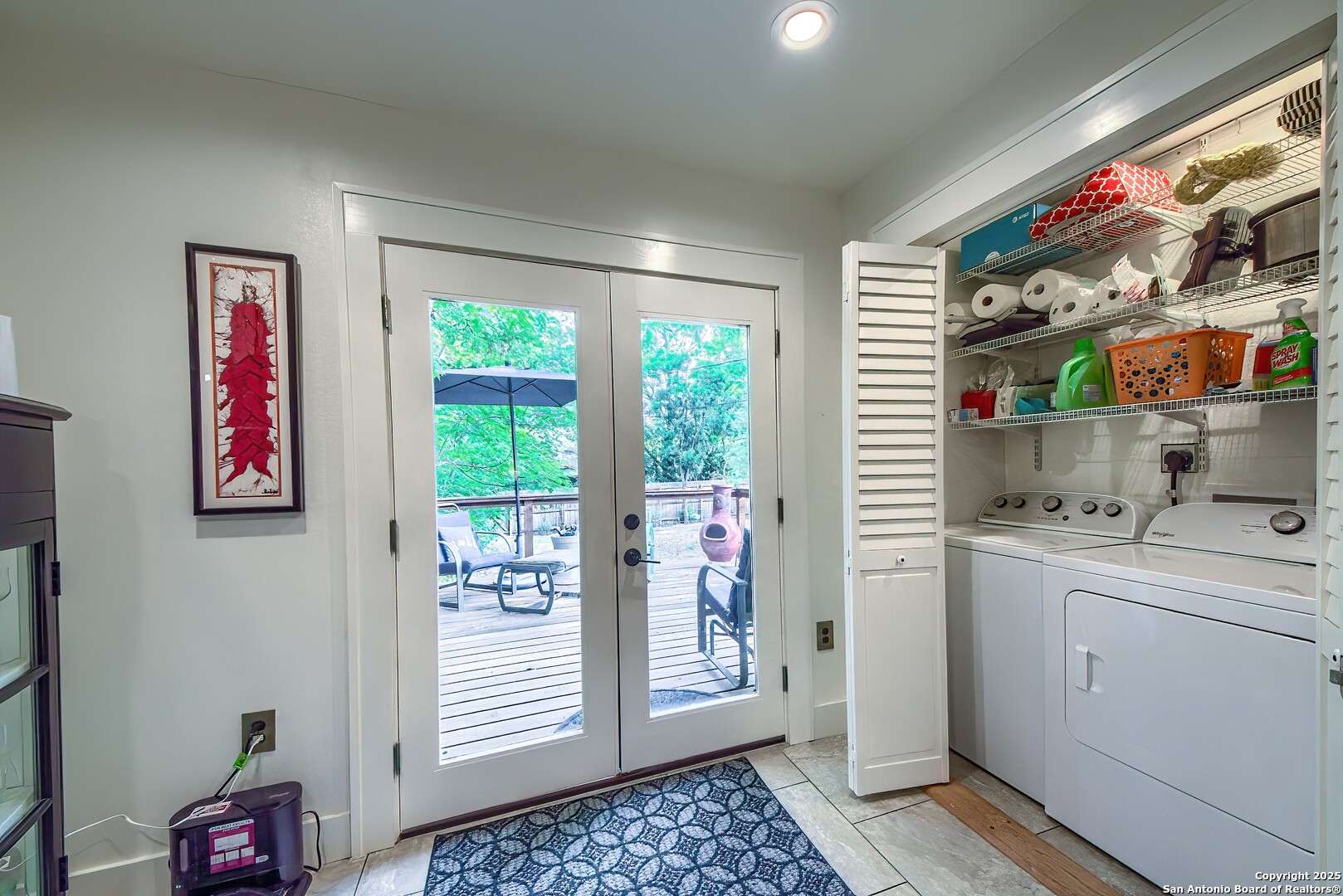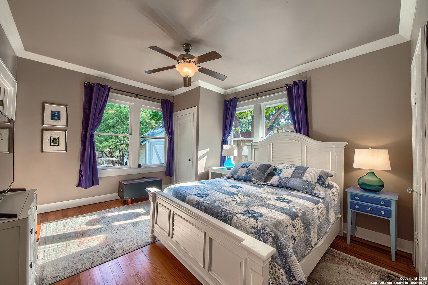 THIS IRRESISTIBLE TUDOR COTTAGE IN HISTORIC BEACON HILL WILL CHARM YOUR SOCKS OFF! Merely pulling up with give you a gasp as this doll literally calls to you from the street, so reminiscent of the peace of the English countryside and Jane Austen novels. Admire the sharply pitched roof and prominent chimney as you walk up to the adorable front porch where you can sit and watch the world go by. Step through the front door and find the past meets the present in a seamless mixture of historic elements and modern conveniences that adds up to a world full of character under high ceilings. Thick shiplap walls, painted in a soothing sage green, and natural shiplap ceilings with crown moulding resonate so that decorating them almost seems unnecessary. The fireplace sets a cozy atmosphere and large windows warm the living room with abundant natural light. Imagine long conversations with friends over dinner in the dusky blue dining room that sits strategically in the middle of the home, open to both living and the kitchen. Renovated so thoughtfully, the country kitchen invites you in with a beguiling warmth, making it the quintessential place for creativity and comfort. Light reflects off the new soft close white and blue shaker cabinetry and sleek marble countertops. Watch your favorite birds dance outside the window over the sink and cook with precision with your gas range as friends gather at the kitchen island to share a cocktail and chat. Lingering over coffee in the breakfast nook seems a given with its peaceful view of your very private backyard through french doors. The laundry closet is tucked off in a closet for convenience. On the other side of the home is the bedroom wing with the primary bedroom ready to surprise with walls of windows, two closets and an adjoining flex room with black and white mosaic tile, perfect for a classic sitting room, nursery, gym or office -- or should you want another bathroom plumbing under the home is already started to accommodate for that option. An adorable bathroom sits in the hallway another charming mix of historic and modern with bead board, chair rail accent and mosaic tile. Finally, be enchanted by the large front bedroom with its whimsical fabric wall cloth. Original hardwood floors throughout gleam with elegance and transition to ceramic tile in the kitchen. Now outside find more to love about this home -- a large deck, shaded by mature trees is elevated for a lovely view of the backyard, made even more private by a back alley. The level, fully fenced yard can be left alone as a lawn with decorative borders or get fancy add a pool, garden or playscape. A storage shed is ideal for lawn tools. The single car garage can be used for more storage, workshop or park a car, accessible through a driveway gate. Especially enjoy that the eastern fence was just replaced! Make note of the tankless water heater, water softener and stainless appliances. Now that you have found the perfect refuge, let's talk about how great this location is! Beacon Hill is one of the city's first neighborhoods and a designated Neighborhood Conservation District, which is evident as you drive the streets to admire the breadth of historical architecture and cozy neighborhood parks. Two blocks from famed restaurants and shops on Blanco and just a short walk to the mansions of Monte Vista, feel comfortably tucked into the heart of San Antonio while still being only a short bike ride or five minute drive to downtown, the Pearl, the Riverwalk, King William and Southtown. Commutes elsewhere are easy being so close to I-10 and a straight shot to 281 through neighborhoods. If you have dreamed urban living in a historic home that is still affordable, you have found it here. Bring a copy of Pride and Prejudice, sit on the porch and imagine staying forever!