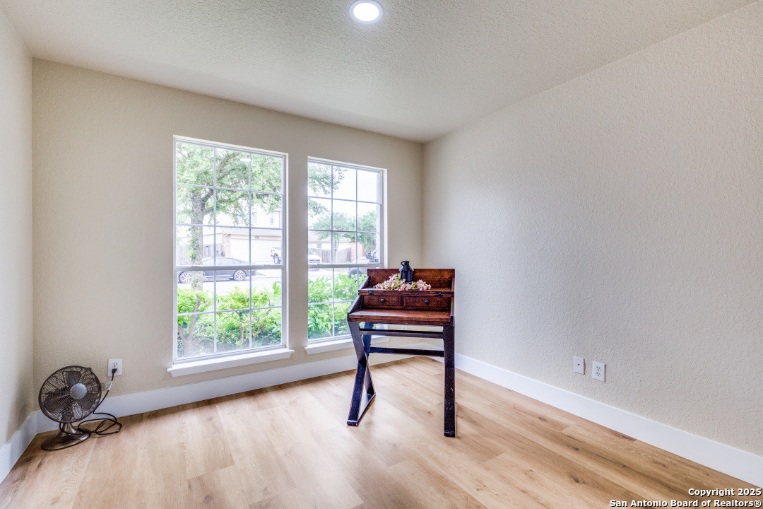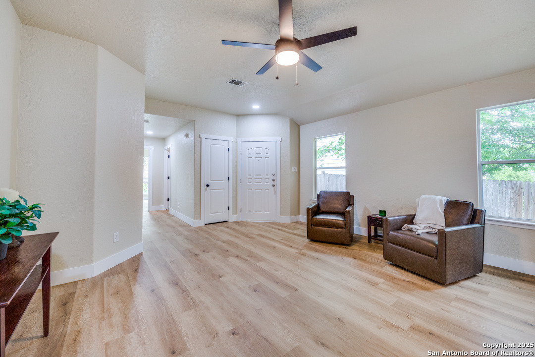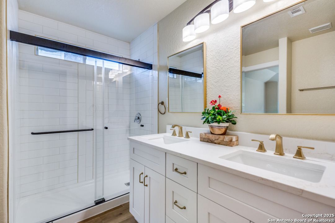 Welcome Home! Beautiful ranch style, centrally located near shopping, entertainment and major freeways. This home is renovated like new, including quartz counters, white shaker cabinets, new flooring throughout, walk in shower. Enjoy nice covered patio backing up to greenbelt which offers a peaceful backyard setting. NISD. Neighborhood has a pool, sport park, walking paths and a playground. Schedule your appointment today!
