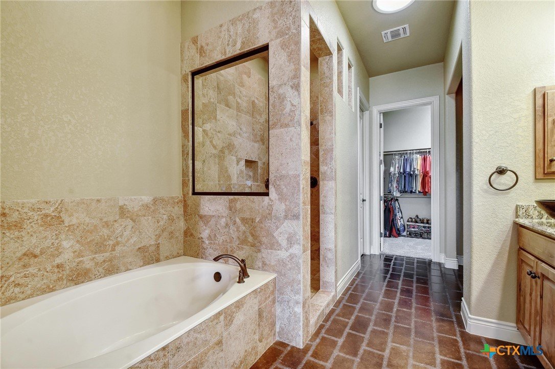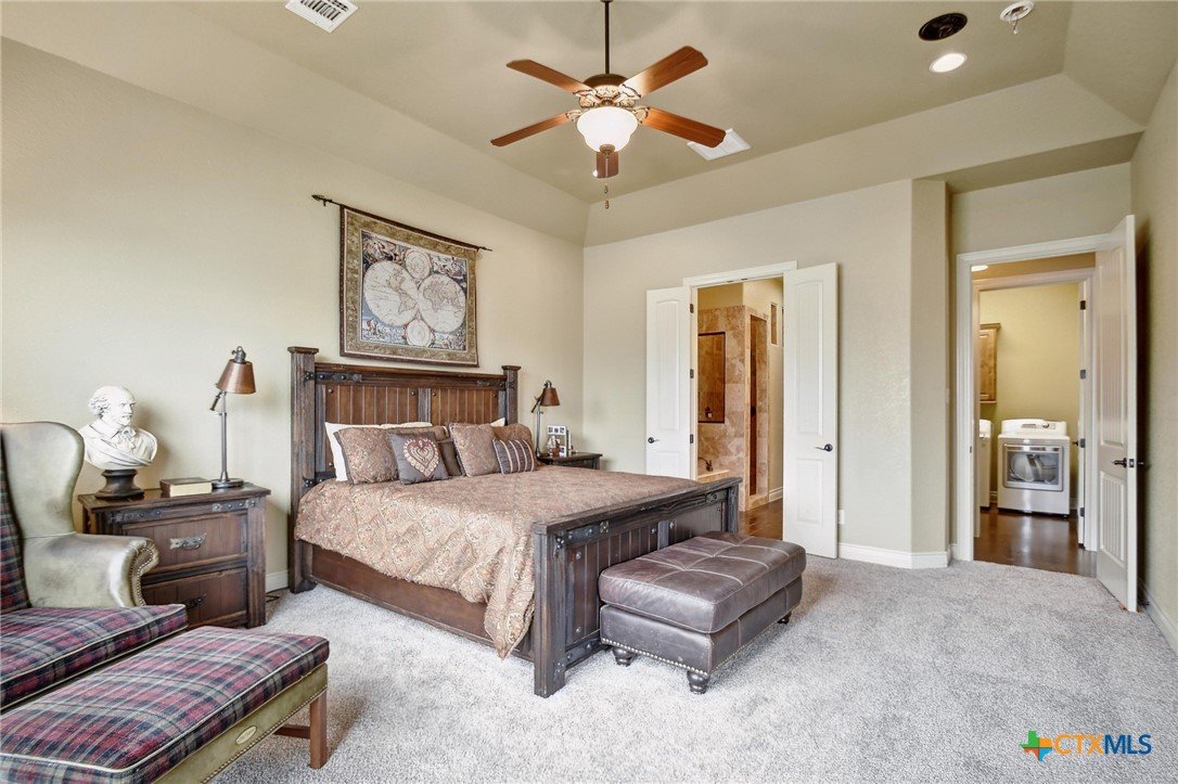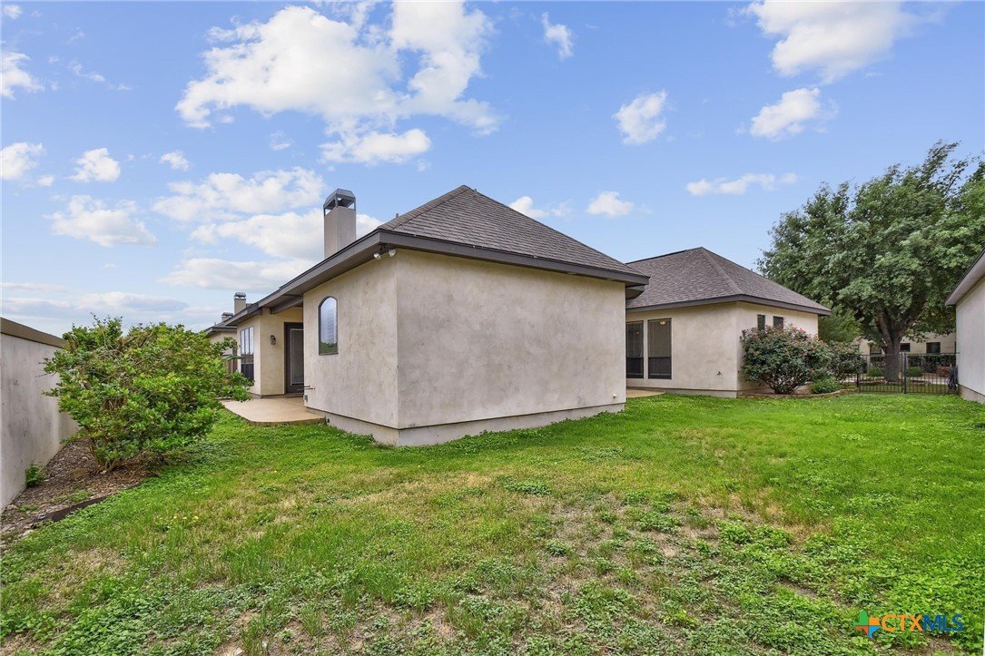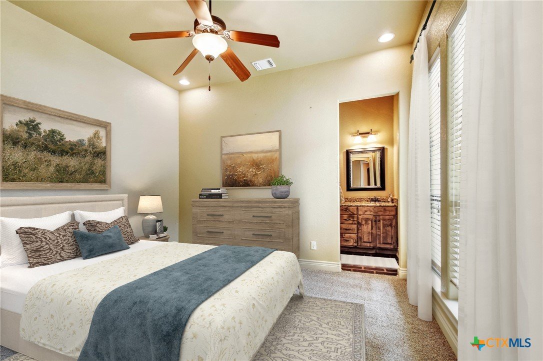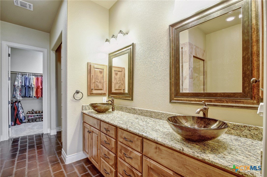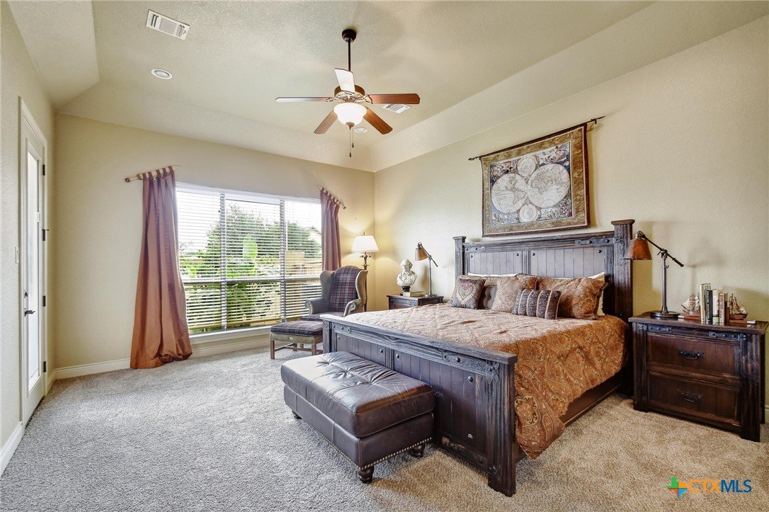 Welcome to this beautifully crafted former model home, tucked away in the charming Green Leaf Subdivision just outside historic Green. Conveniently located near local shops and restaurants, this home offers both comfort and accessibility. Designed with care and attention to detail, this 3-bedroom, 2.5-bathroom home features a thoughtful layout and numerous custom upgrades. The spacious living area boasts high ceilings, a custom library wall, a cozy gas log fireplace, and a dedicated personal office—perfect for working from home. The kitchen is a true centerpiece, open to the dining and living areas and featuring granite countertops, a center island with cooktop, breakfast bar, and a built-in coffee bar for your morning routine. The master suite is filled with natural light and includes a garden tub, double vanity, and a generous walk-in closet. A Jack-and-Jill bathroom connects the secondary bedrooms, making the space both functional and family-friendly. As part of the Green Leaf HOA, you’ll enjoy access to a private cabana area and direct access to the Guadalupe River—a rare perk in this serene neighborhood. Homes with this level of detail and history don’t come around often. Schedule your private showing today! **Parts of house have been virtually staged**