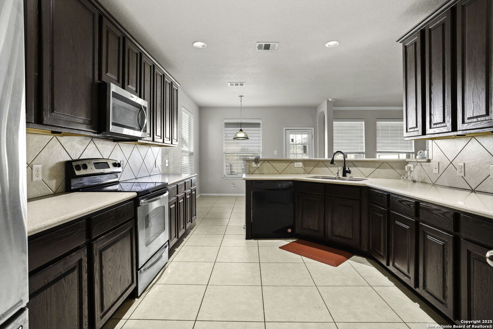 Beautiful 2 story home in the quiet subdivision of Amhurst. Spacious open floor plan, granite counter tops with 42inch cabinets with plenty of space. This gorgeous home boasts 5 bedrooms with a large game room and walk-in closets. Covered porch and closed in private fence. Great location near shopping, highways, Air Force Base and lovely views of the fireworks at Sea World. Welcome Home. Beautiful paint. Washer, dryer, and fridge onsite. Refrigerator, washing machine, and dryer included.