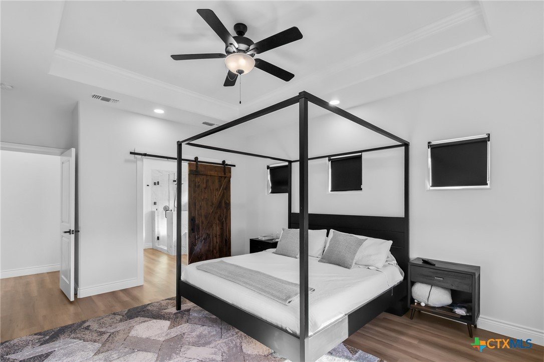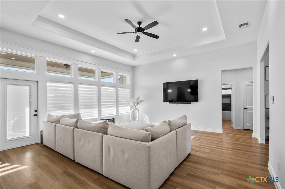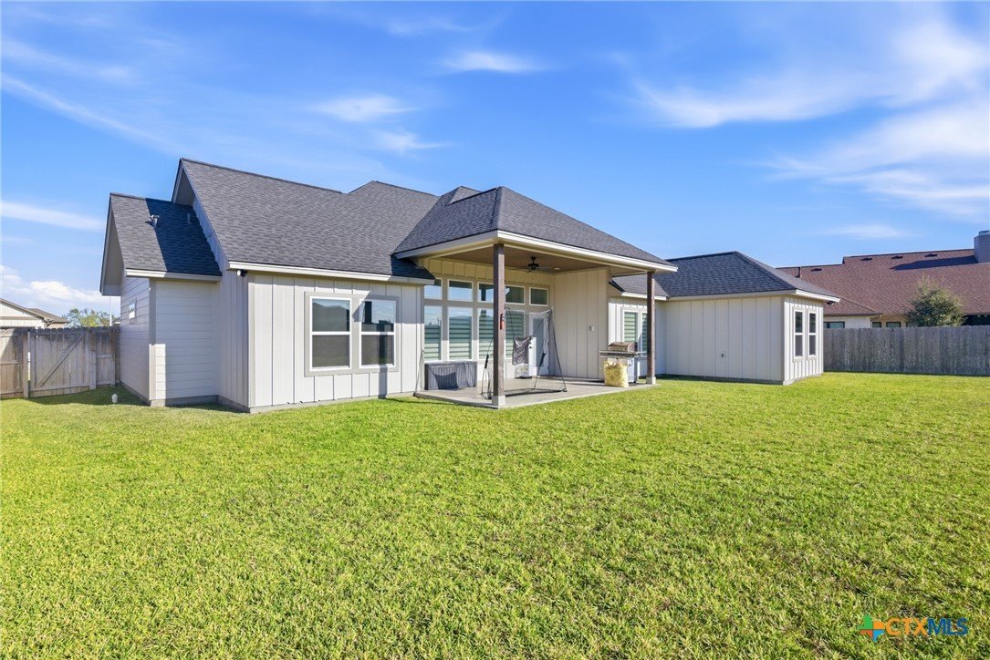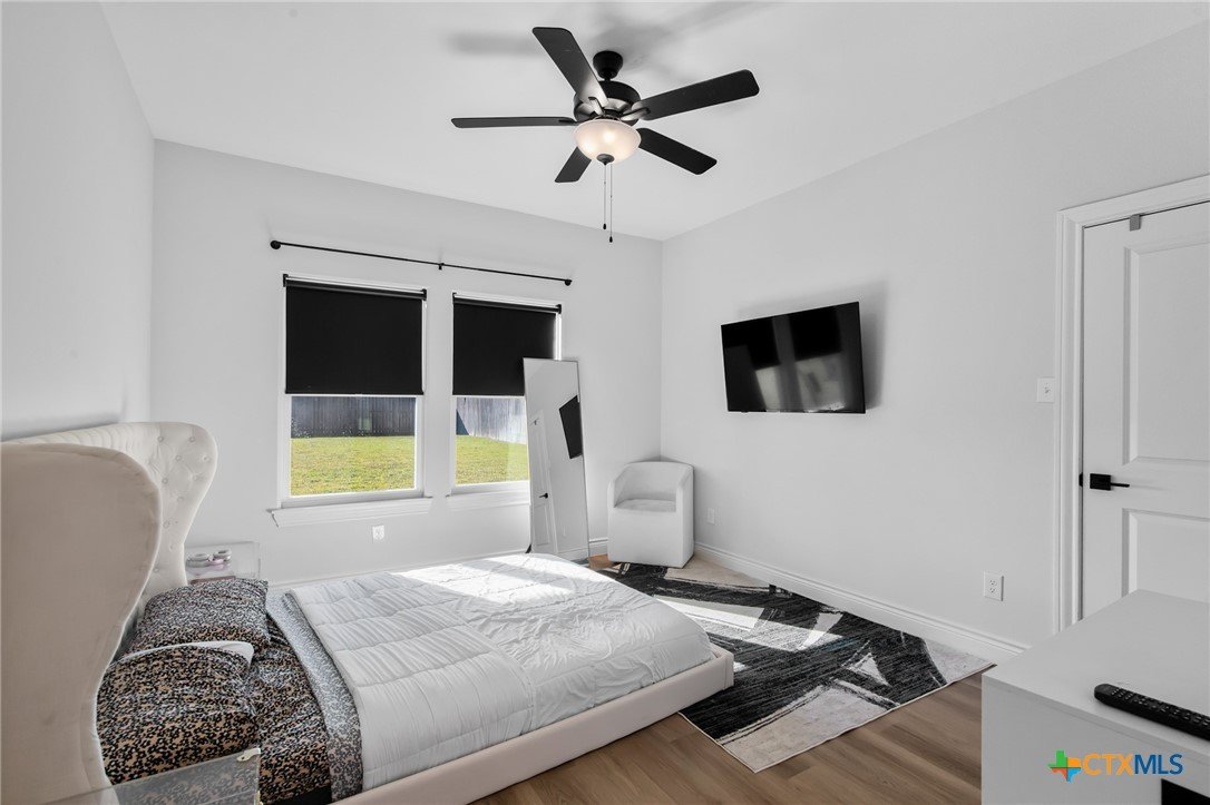 From the moment you pull up, the curb appeal of this STUNNING custom home sets the tone—elevated rooflines, mixed brick and board-and-batten siding, modern glass front door, and thoughtfully manicured landscaping give this home the look and feel of a custom build. Walking in, you are greeted with a grand entrance foyer leading to the open concept featuring a true showpiece kitchen where stunning, high-end quartz countertops steal the spotlight—wrapping a massive island with seating, stretching across abundant workspace, and paired with rich cabinetry, sleek hardware, designer pendants, and a herringbone backsplash. This open layout flows effortlessly into a bright living room framed by a full wall of windows and a tray ceiling, creating an upscale yet comfortable space that’s perfect for hosting or relaxing. A private flex room off the entry is ideal for a home office, gym, playroom, or whatever suits your needs. The primary suite feels like a boutique hotel with its dramatic ceiling, generous size, and spa-worthy bath featuring a walk-in marble-look shower, soaking tub, dual vanities, and high-style finishes. Secondary bedrooms are spacious and well appointed, served by an upgraded bath with custom tile finishes and a large vanity. Outside, an enormous, fully fenced backyard offers endless room for a future pool, outdoor kitchen, or play space—few lots in the neighborhood compare. With its refined selections, elevated design, and a price point that’s hard to match for this level of quality, this home delivers true high-end living without the high-end price tag. Go and meet your dream home today!