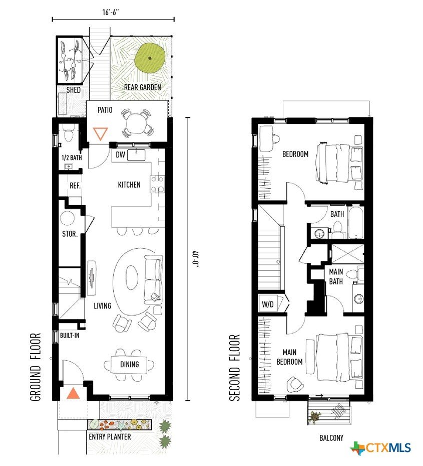 Reach out to walk through a furnished unit with us today! Finished interior photos coming soon. Lively Lane is a pocket neighborhood of contemporary townhomes located in the heart of San Marcos. Its convenient location makes it possible to own a new home in town and not miles away from the city center. High quality standard specifications and professionally managed condominium association support lock-and-leave convenience for a modern lifestyle. New homes completed in 2025 at Lively Lane are Energy Star®, EPA Indoor AirPlus, and Department of Energy Zero Energy Home Ready (ZERH) rated. The neighborhood is near a multitude of walkable services and even more essential destinations by bike. That means that sustainability comes standard, and - for those that want to do more - add-ons are available including solar packages, solar carport, and electric vehicle chargers. Other standard features include interior finishes like hardwood flooring, quartz kitchen and bath countertops, vaulted top floor ceilings, Daikin Smart Thermostats, GE and GE Profile appliances with induction range included, heat-pump air conditioning and water heaters, Pella casement windows, advanced framing techniques, native landscaping, a permeable paver system, and so much more. Lively Lane has also partnered with a neighborhood exclusive carshare service, available to residents and guests. The Classic Townhome is a flexible home.. The open-plan ground floor provides ample space for dining, living, and kitchen activities with a half-bath for convenience or guests. On the second floor, comfortable sleeping quarters feature vaulted ceilings and the main bedroom benefits from its own balcony and larger ensuite bath with walk-in shower. A welcoming entry planter and a private, fenced rear garden create opportunities to test your green thumb or relax outdoors, and the custom-designed storage/bike shed helps keep everything in its right place. A Classic never goes out of style.