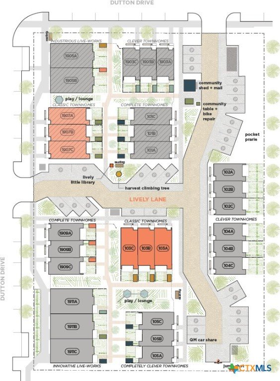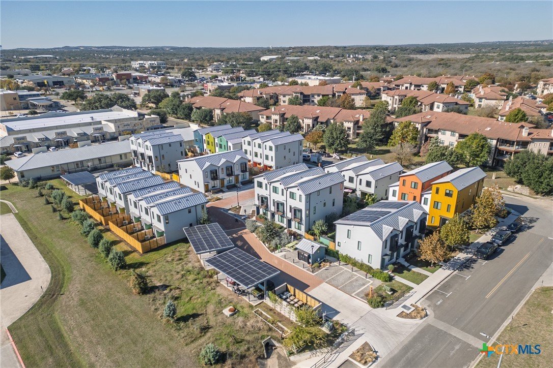 Reach out to walk through a furnished unit with us today! Finished interior photos coming soon. Lively Lane is a pocket neighborhood of contemporary townhomes located in the heart of San Marcos. Its convenient location makes it possible to own a new home in town and not miles away from the city center. High quality standard specifications and professionally managed condominium association support lock-and-leave convenience for a modern lifestyle. New homes completed in 2025 at Lively Lane are Energy Star®, EPA Indoor AirPlus, and Department of Energy Zero Energy Home Ready (ZERH) rated. The neighborhood is near a multitude of walkable services and even more essential destinations by bike. That means that sustainability comes standard, and - for those that want to do more - add-ons are available including solar packages, solar carport, and electric vehicle chargers. Other standard features include interior finishes like hardwood flooring, quartz kitchen and bath countertops, vaulted top floor ceilings, Daikin Smart Thermostats, GE and GE Profile appliances with induction range included, heat-pump air conditioning and water heaters, Pella casement windows, advanced framing techniques, native landscaping, a permeable paver system, and so much more. Lively Lane has also partnered with a neighborhood exclusive carshare service, available to residents and guests. The Classic Townhome is a flexible home.. The open-plan ground floor provides ample space for dining, living, and kitchen activities with a half-bath for convenience or guests. On the second floor, comfortable sleeping quarters feature vaulted ceilings and the main bedroom benefits from its own balcony and larger ensuite bath with walk-in shower. A welcoming entry planter and a private, fenced rear garden create opportunities to test your green thumb or relax outdoors, and the custom-designed storage/bike shed helps keep everything in its right place. A Classic never goes out of style.