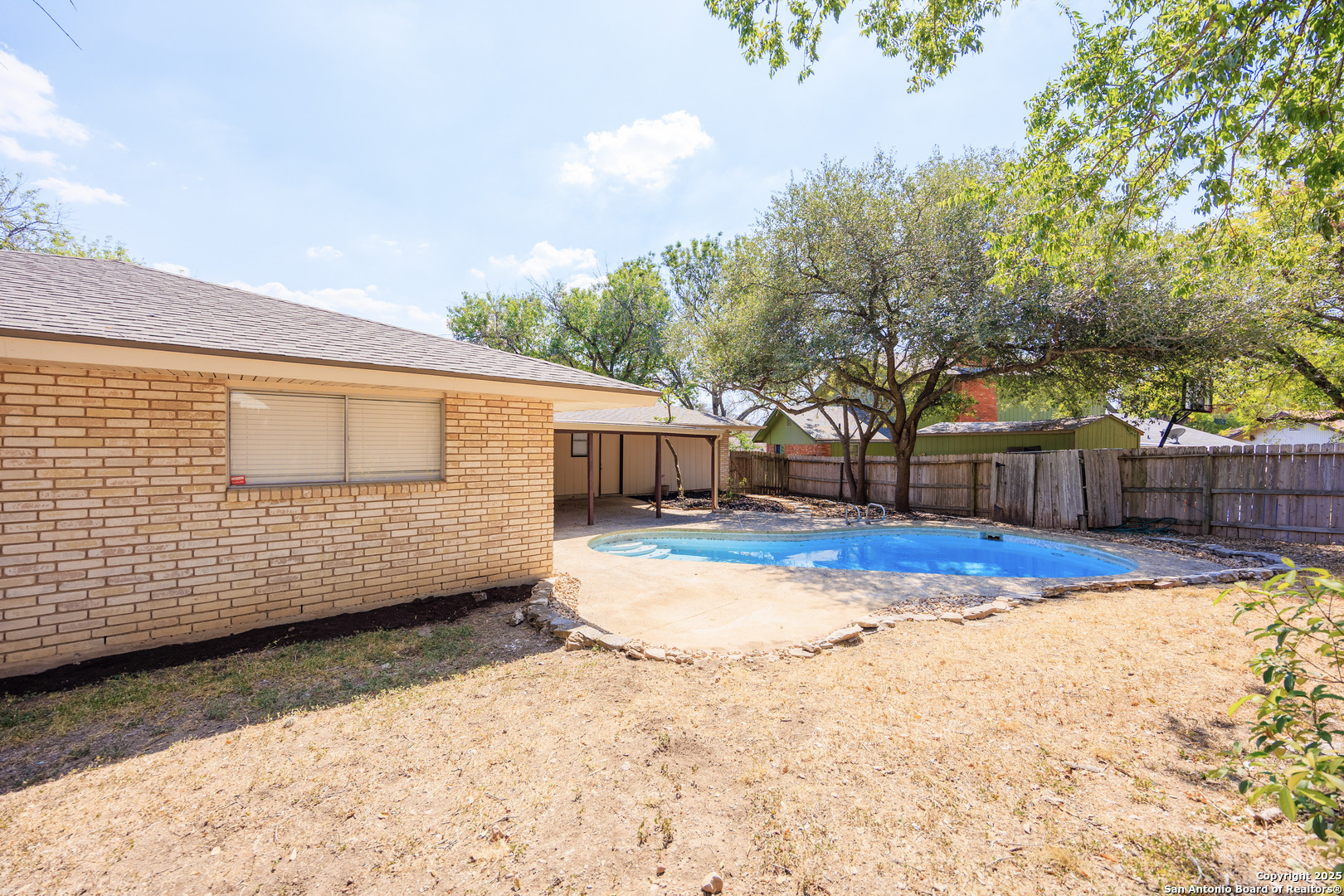 BEAUTIFUL, 3 SIDES BRICK ONE STORY CORNER HOME W/ POOL READY FOR MOVE IN. THIS HOME HAS IT ALL. SEPARATE DINING, BEAUTIFUL KITCHEN WITH RECESSED LIGHTS AND LOTS OF CABINETS, BREAKFAST BAR THAT OPENS INTO FAMILY ROOM WITH VAULTED CEILINGS AND A NICE SKYLIGHT WITH AN ALL BRICK FIREPLACE. NEW INTERIOR PAINT, ALL NEW FLOORING THROUGHOUT (NO CARPET), NEW PLUMBING AND ELECTRICAL FIXTURES, BLINDS THROUGHOUT THE HOME. ADDITIONAL SEPARATE LARGE FAMILY ROOM. 3 LARGE BEDROOMS WITH MASTER HAVING A NEW SHOWER, GRANITE COUNTERTOP AND TOILET. SLIDING DOORS IN FAMILY ROOM THAT LEAD TO A COVER PATIO WITH AN IN GROUND POOL THAT WAS JUST REPLASTERED IN A LARGE BACKYARD WITH A PRIVACY FENCE ALL AROUND. ALSO HAS A LARGE SHED OUT BACK. THIS HOME IS GREAT FOR ENTERTAINING AND IS READY FOR MOVE IN.