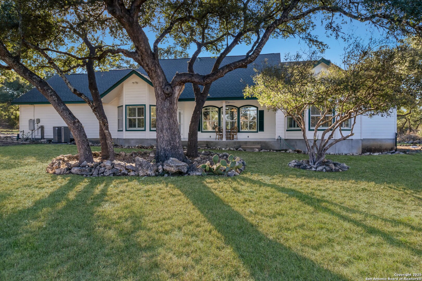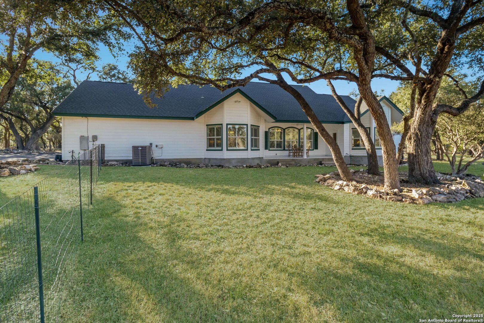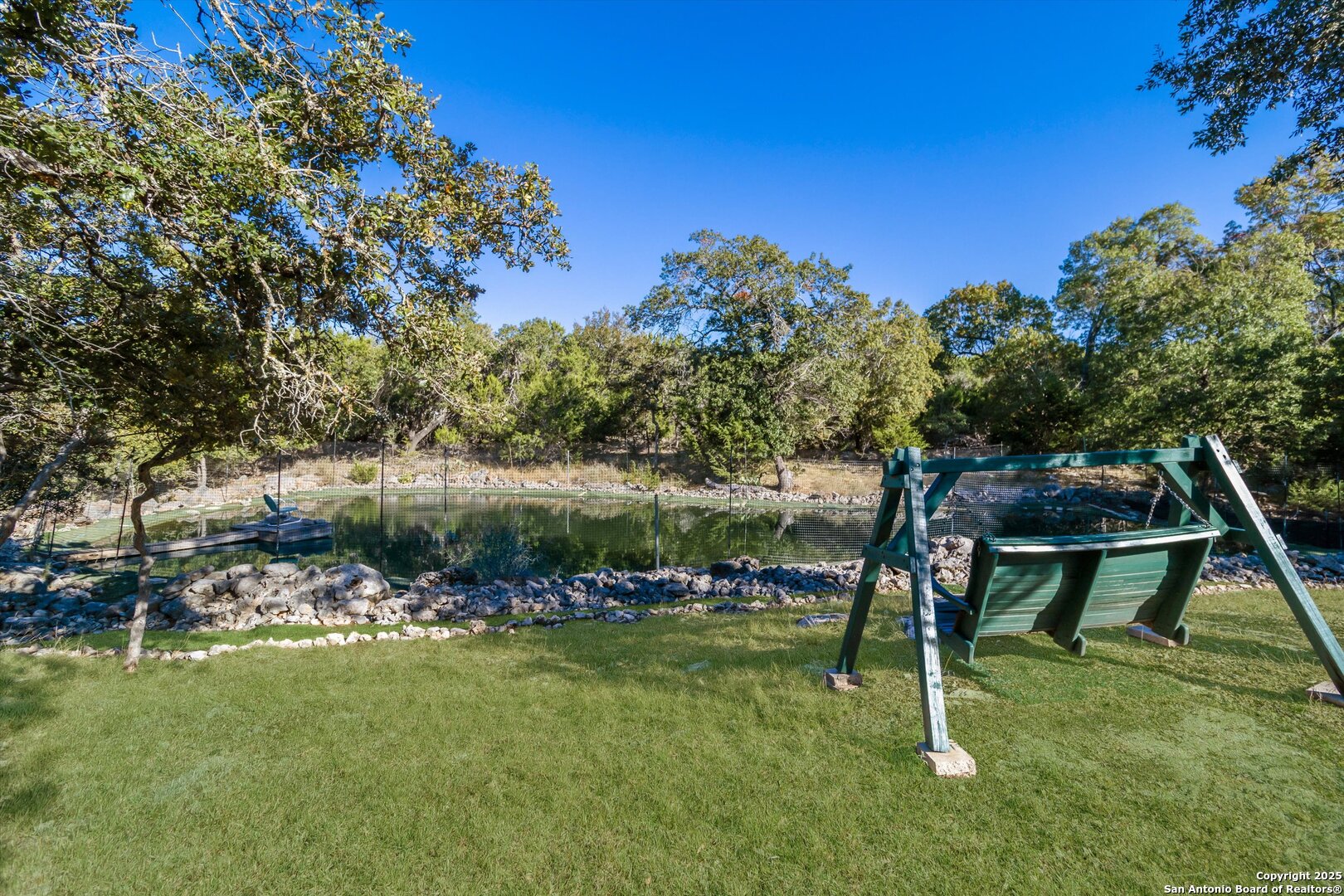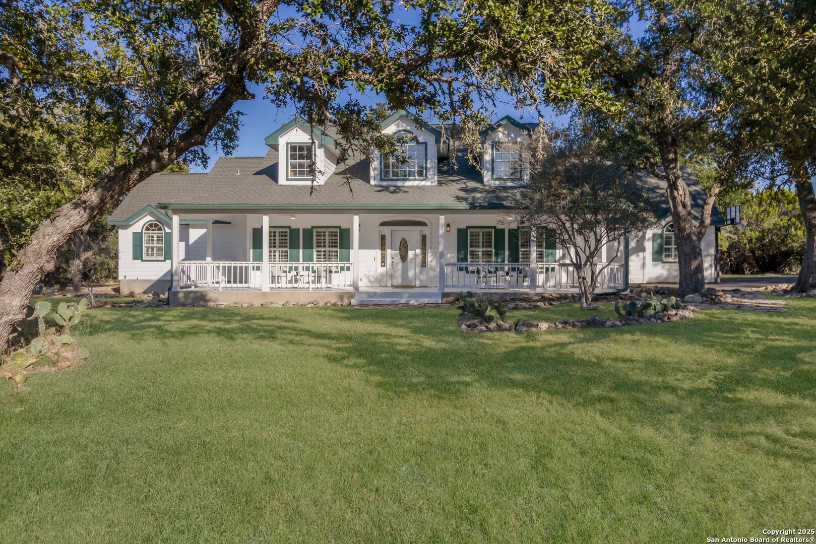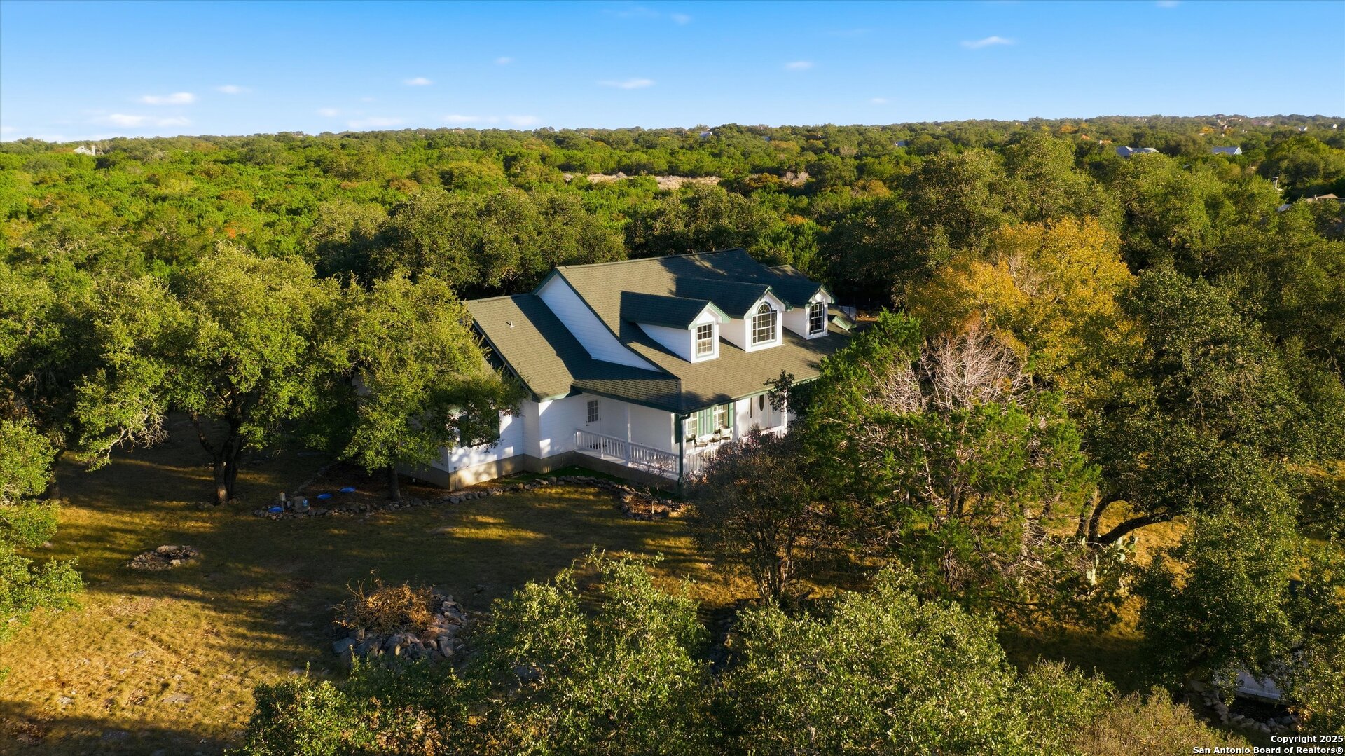 Welcome to 103 Mallard Drive, a beautiful 3-bedroom, 2-bath farmhouse nestled on 5.26 acres in the coveted River Mountain Ranch community-offering the best of Boerne ISD schools and peaceful country living. This charming home features a wrap-around porch perfect for morning coffee, evening sunsets, and relaxing under the Hill Country sky. Recent updates include a new asphalt driveway, fresh interior and exterior paint, an updated HVAC system, and elegant plantation shutters that enhance the home's light-filled living spaces and timeless farmhouse appeal. The property offers a private pond stocked with fish, and high-speed fiber internet-so you can enjoy wide-open space without sacrificing modern convenience. Inside, you'll find warm farmhouse character and an easy-flow layout ideal for gatherings and everyday comfort. Residents of River Mountain Ranch enjoy private Guadalupe River park access-perfect for kayaking, swimming, and riverside picnics-all within minutes of Boerne's historic Main Street. Experience the perfect blend of acreage, charm, and connectivity at 103 Mallard Drive-your Hill Country retreat awaits.
