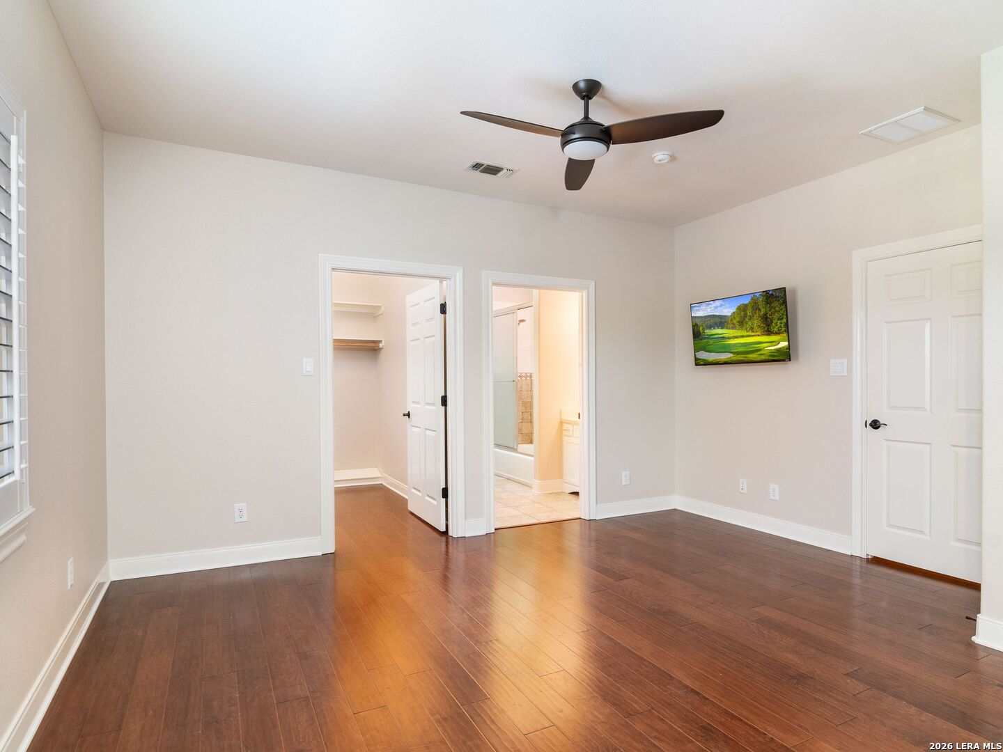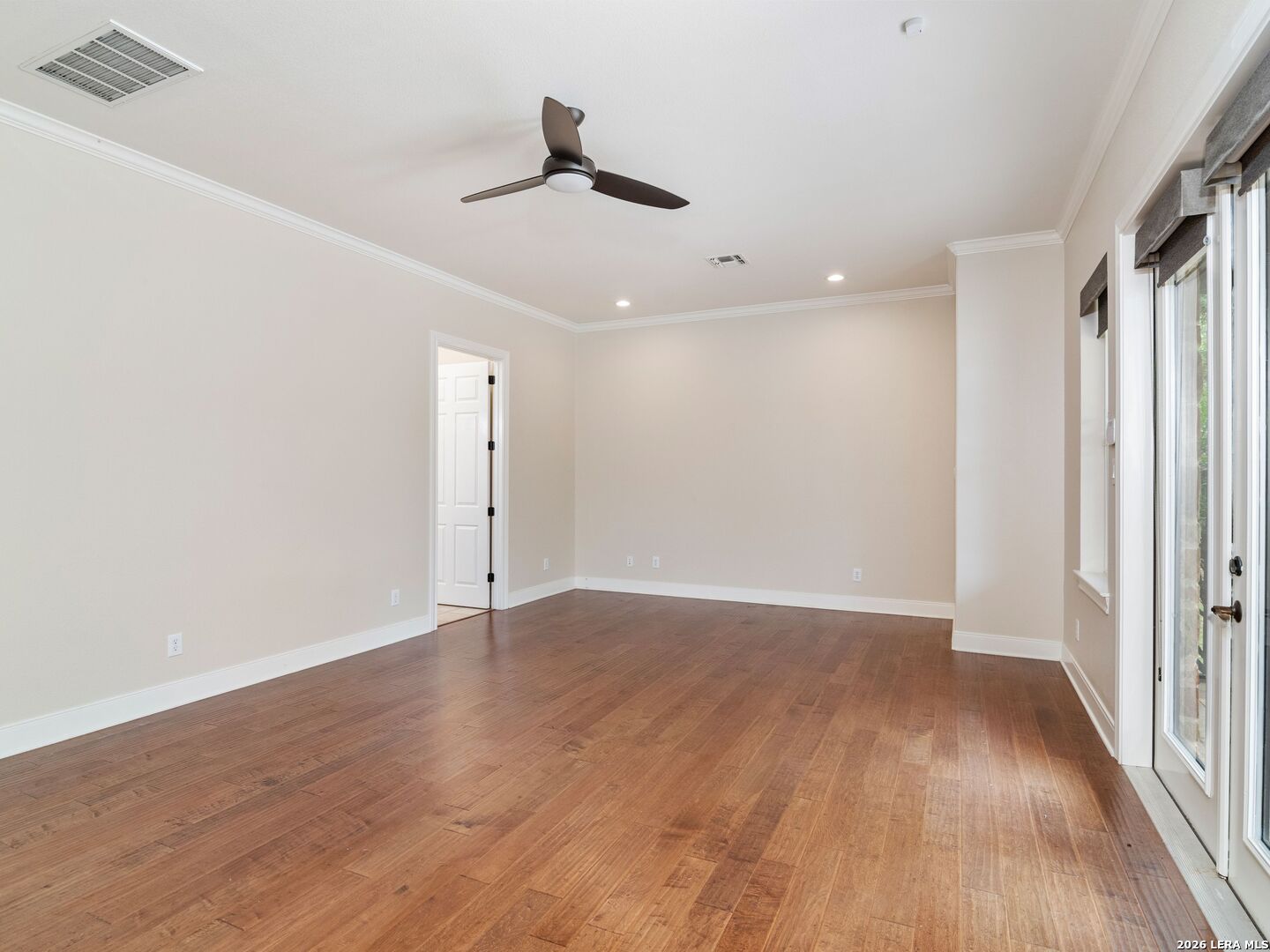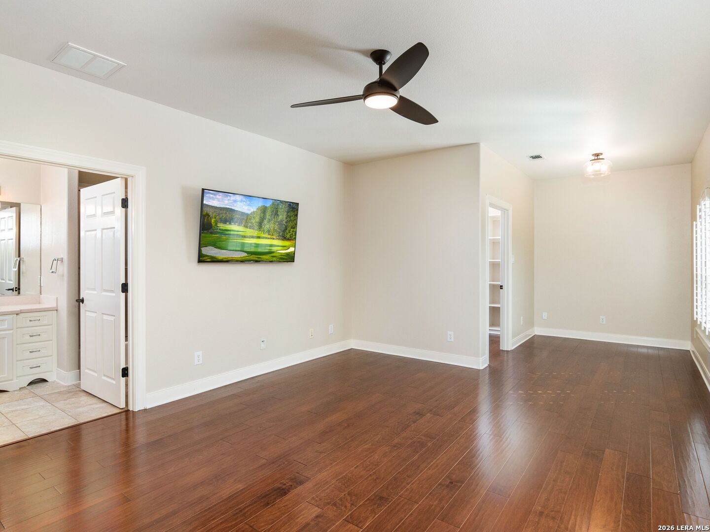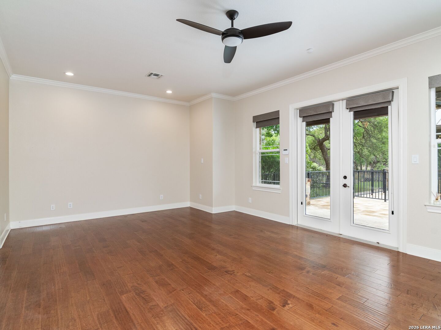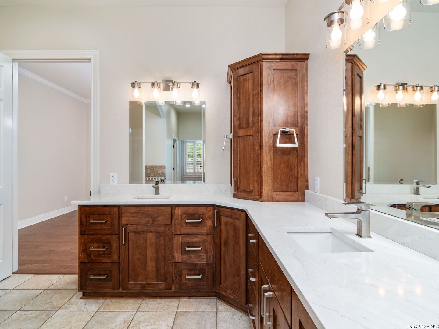 Set behind a gated entry on 5.02 manicured acres, this Hill Country estate offers privacy, scale, and a highly functional layout designed for both everyday living and larger scale entertaining. Mature trees frame the property, giving the home a quiet setting with strong curb appeal, generous outdoor space, and a true sense of arrival. Inside, the home opens with a welcoming foyer accented by distressed hardwood flooring, wraparound windows, and a stately arched stone wall that brings warmth and character to the main living areas. The floor plan is spacious without feeling disconnected, with a great room centered around a stone fireplace and large windows that draw natural light across the interior. The kitchen is designed for both daily use and entertaining, featuring a large island, stainless steel appliances, gas cooking, extensive workspace, and easy connection to dual dining areas. The main level includes a dedicated study, downstairs guest suite, and a privately positioned primary suite with direct access to the pool area. The primary bath offers separate vanities, a Jacuzzi soaking tub, walk in shower, and dual wardrobe closets. The entry from the attached garages has been thoughtfully updated with a custom coffee bar, additional storage, and a separate bank of custom cabinetry finished with granite that ties into the updated kitchen counters. The space includes closet hanging storage for coats or off season clothing, along with extra deep drawers designed for kitchen necessities and daily function. Upstairs, a spacious game room anchors the secondary living area, joined by guest bedrooms and an additional primary style suite with its own sitting area and spa inspired bath. The layout provides flexibility for guests, extended stays, or separate living needs without sacrificing comfort. The outdoor living is a major part of the property. A covered patio overlooks the grounds, while the cabana is built for entertaining with a full outdoor kitchen, Twin Eagles grill, ice maker, refrigerator, fireplace, and bar seating for eight. The resort style pool includes a spillway waterfall and sun lounging deck, creating a private setting for relaxing or hosting. Adjacent to the pool, the former detached garage space was converted in 2021 into a 2 bedroom, 2 bath guesthouse with a full kitchen, custom cabinetry, appliances, and washer and dryer. Another major improvement is the custom timber frame barn by Texas Timber Frames, offering a cement floor, lofted space, 220 amp electricity, and roughed in plumbing for a full bathroom. The barn's main level measures 60 x 48, with a 60 x 24 loft, bringing the total barn square footage to approximately 4,320 square feet. Just minutes from downtown Boerne, this estate delivers acreage, privacy, outdoor living, guest accommodations, and meaningful improvements in one complete setting.